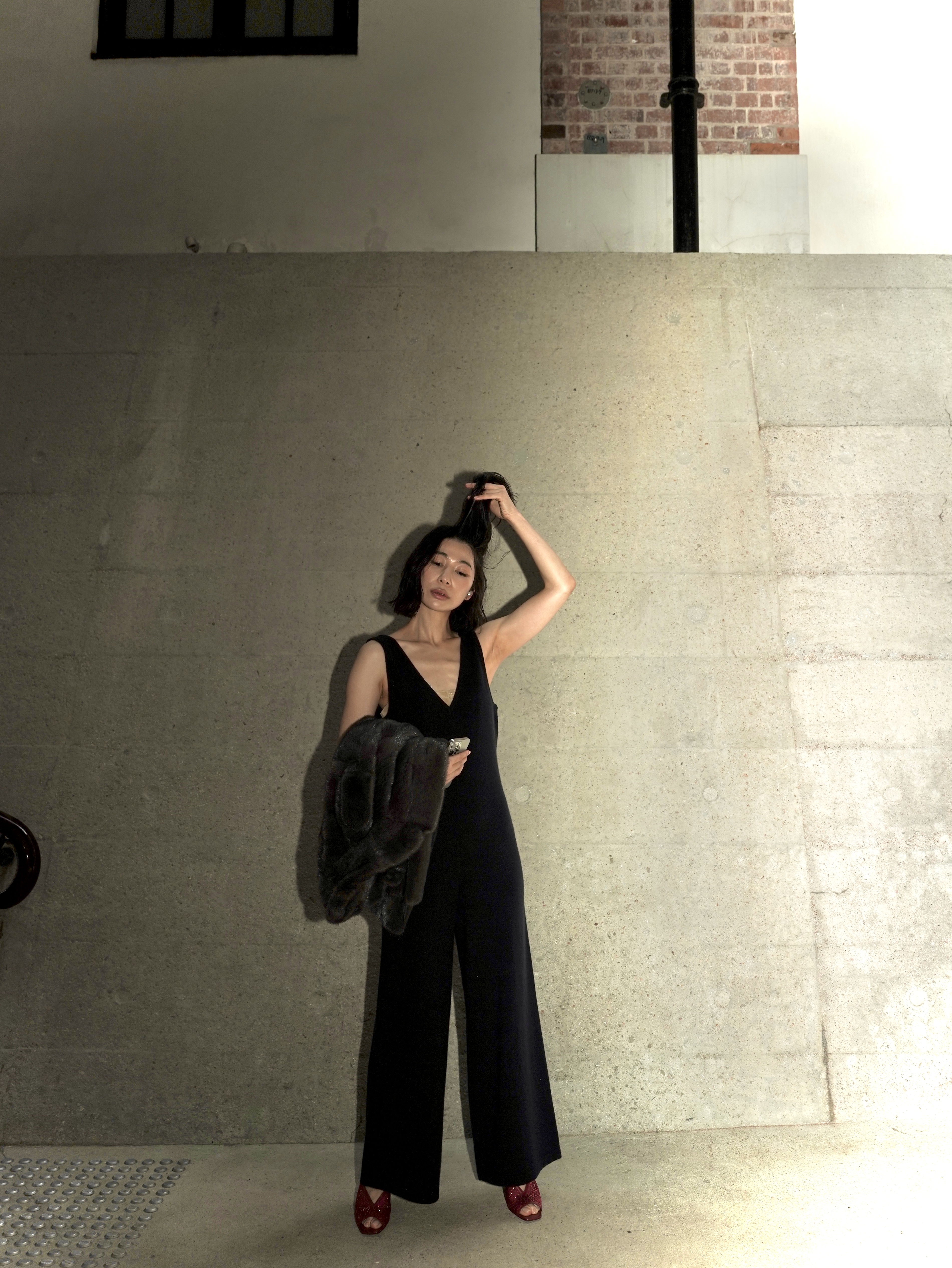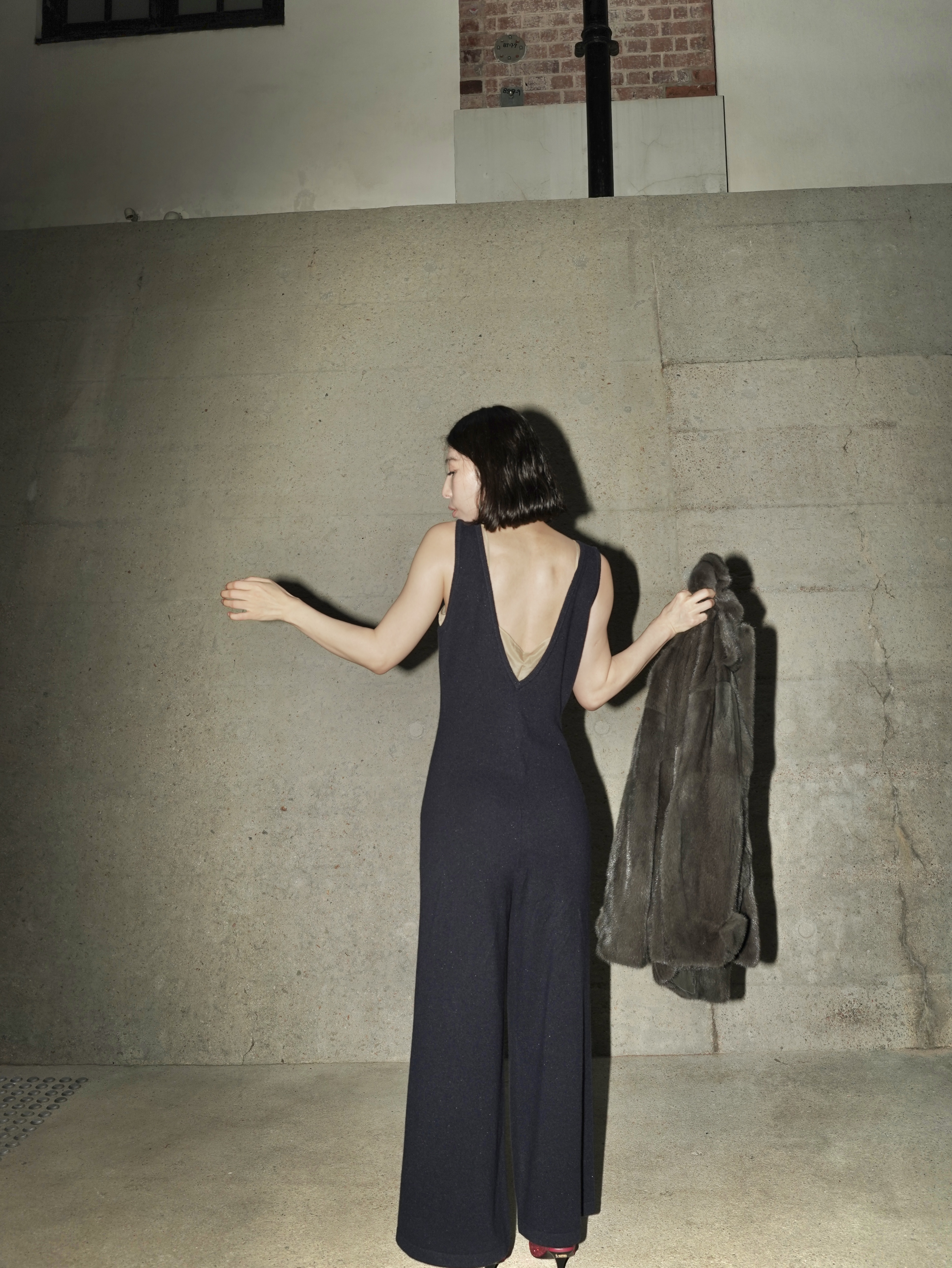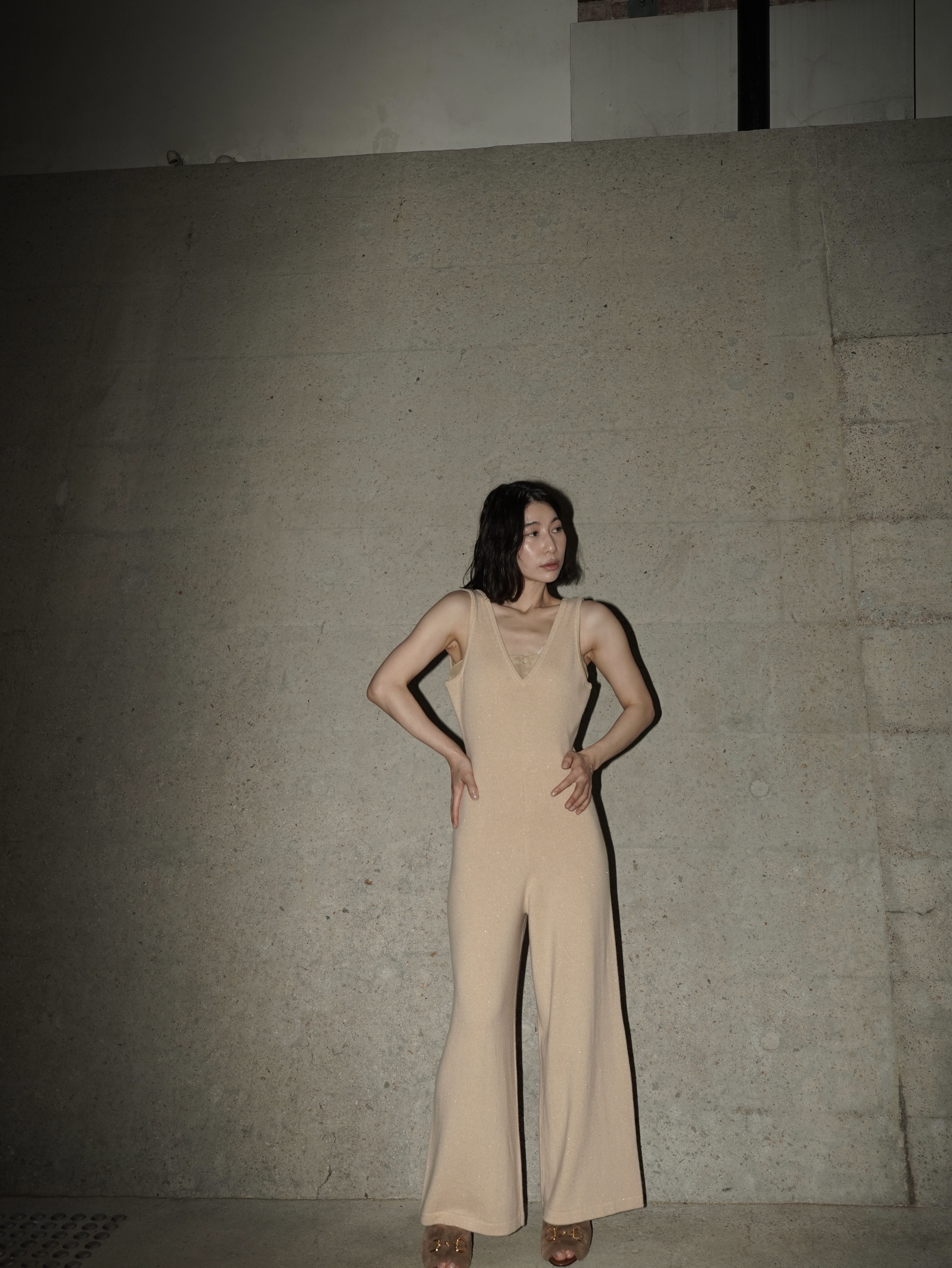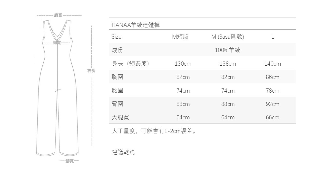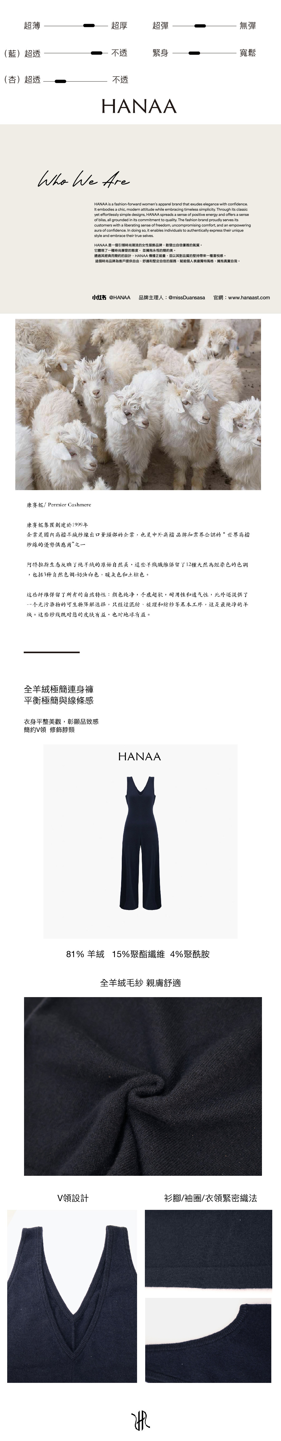 HANAA 秋冬新款純康賽尼羊絨珠片細閃V領無袖連體褲
