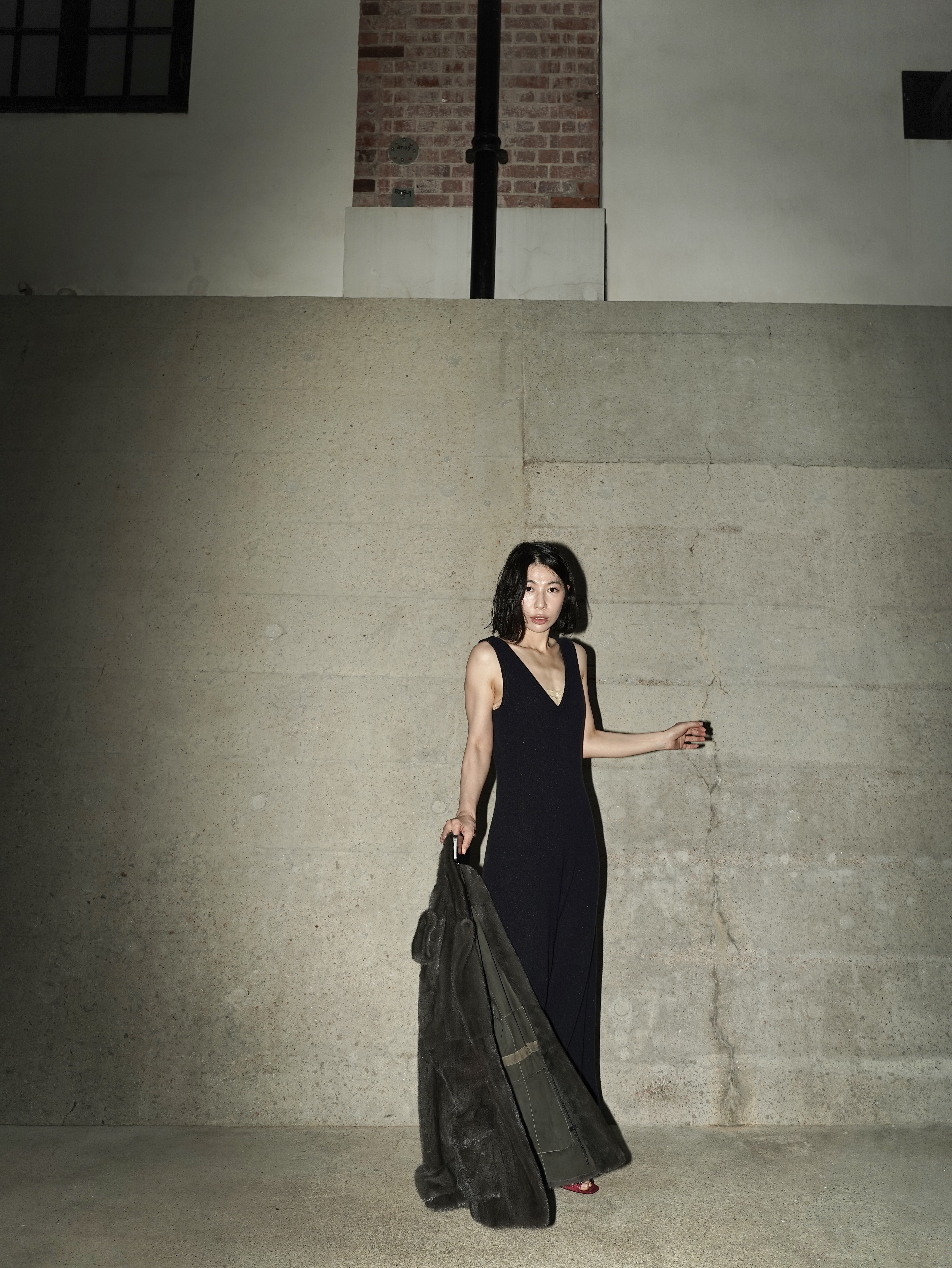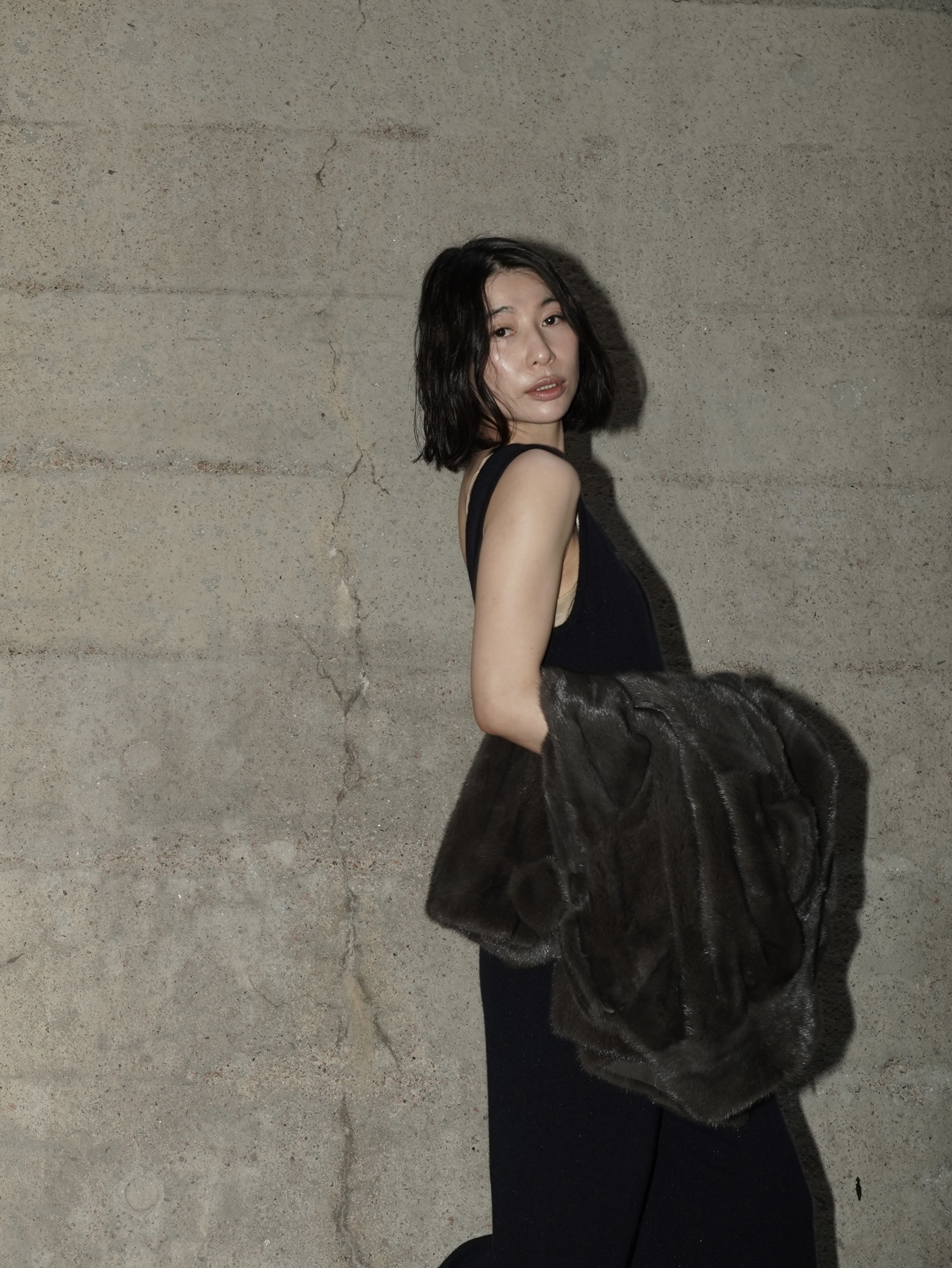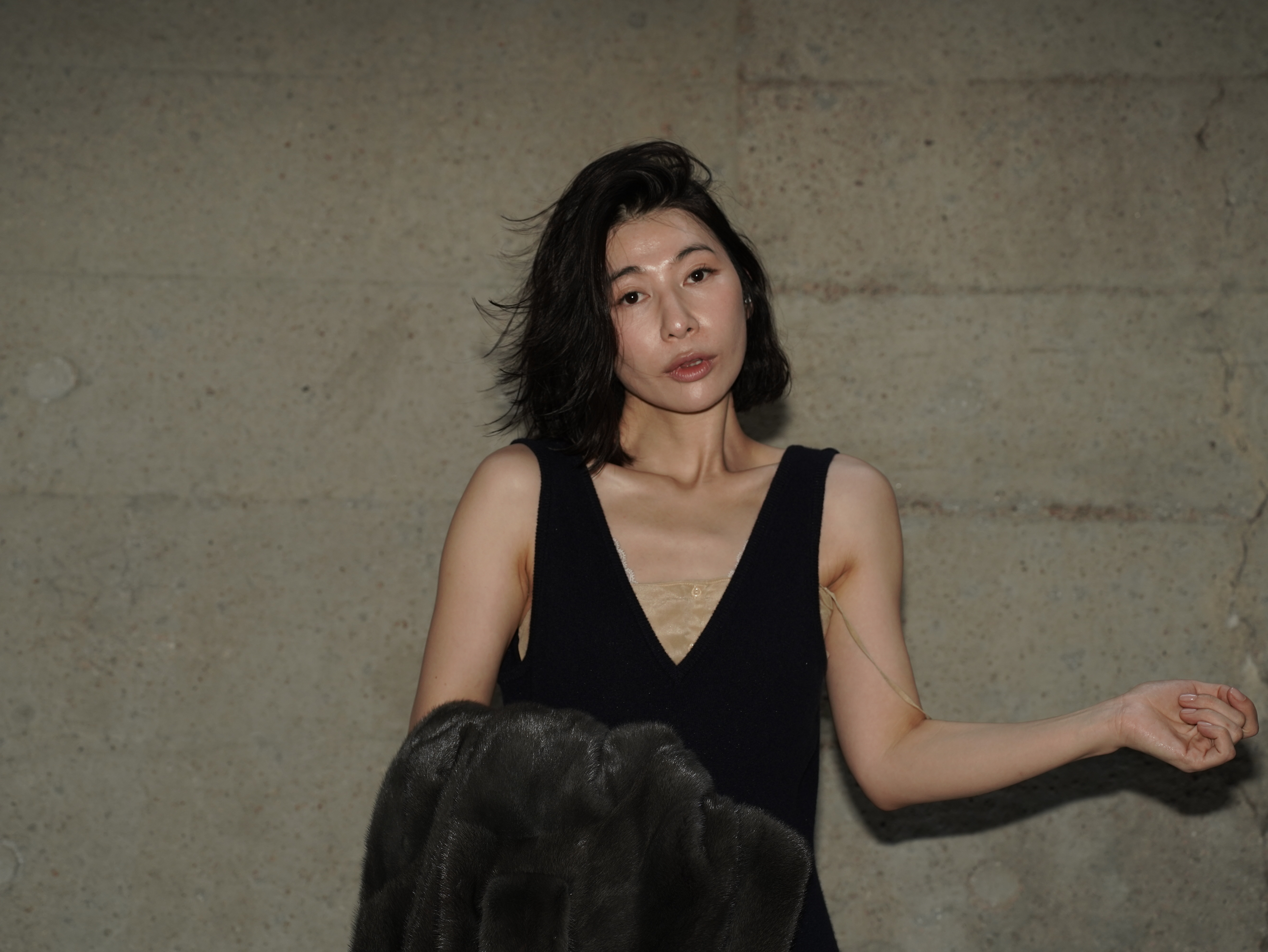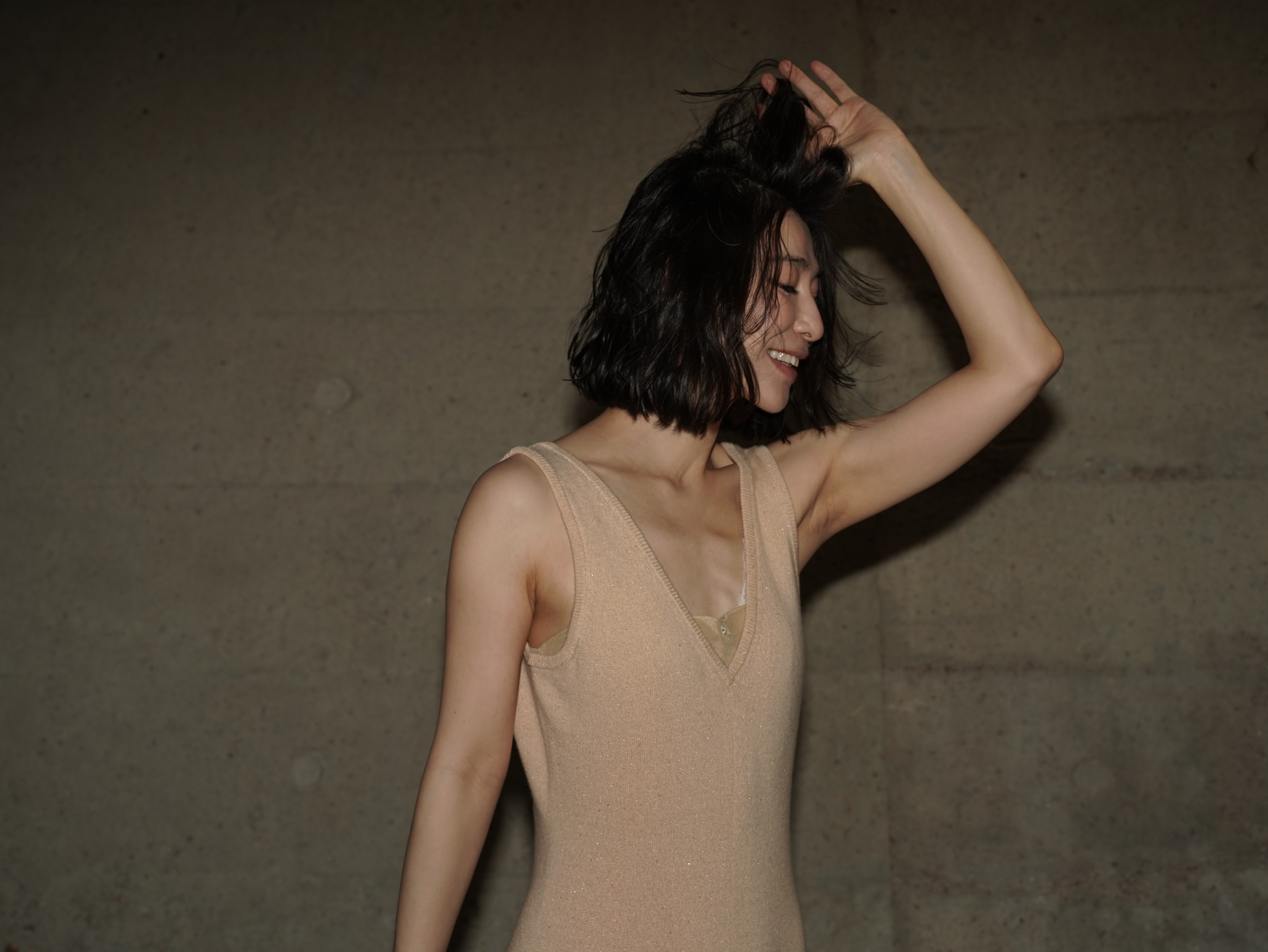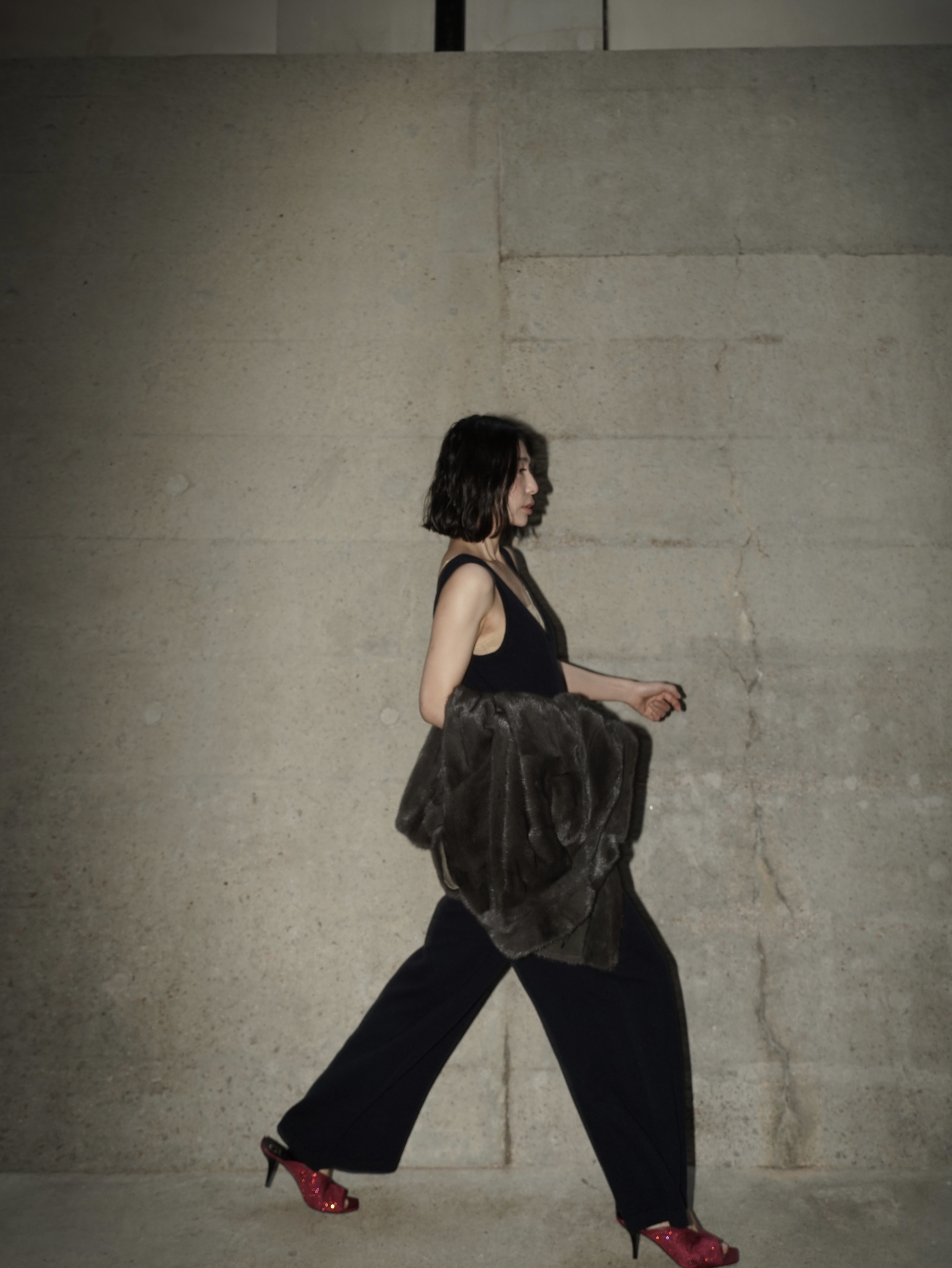 HANAA 秋冬新款純康賽尼羊絨珠片細閃V領無袖連體褲