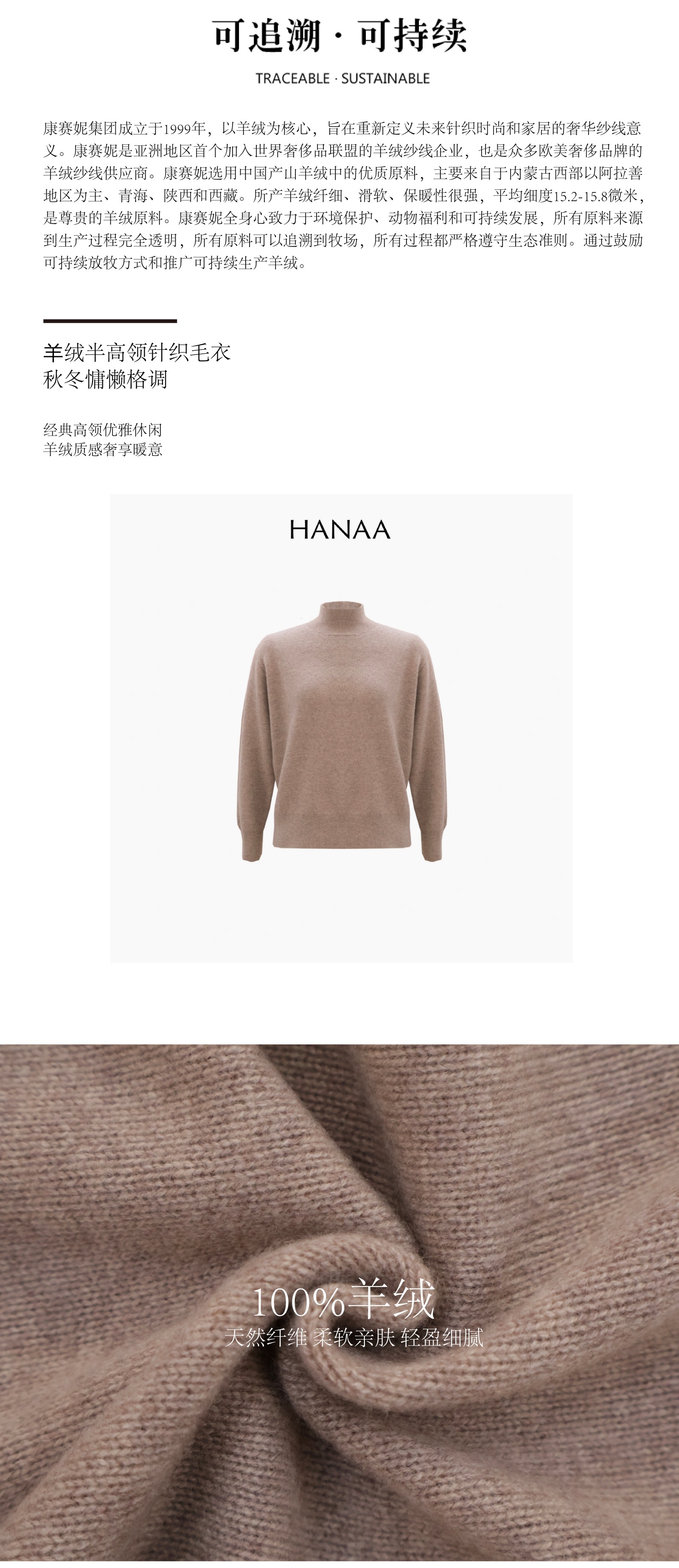 HANAA 新款100%康賽妮羊絨高領針織毛衣