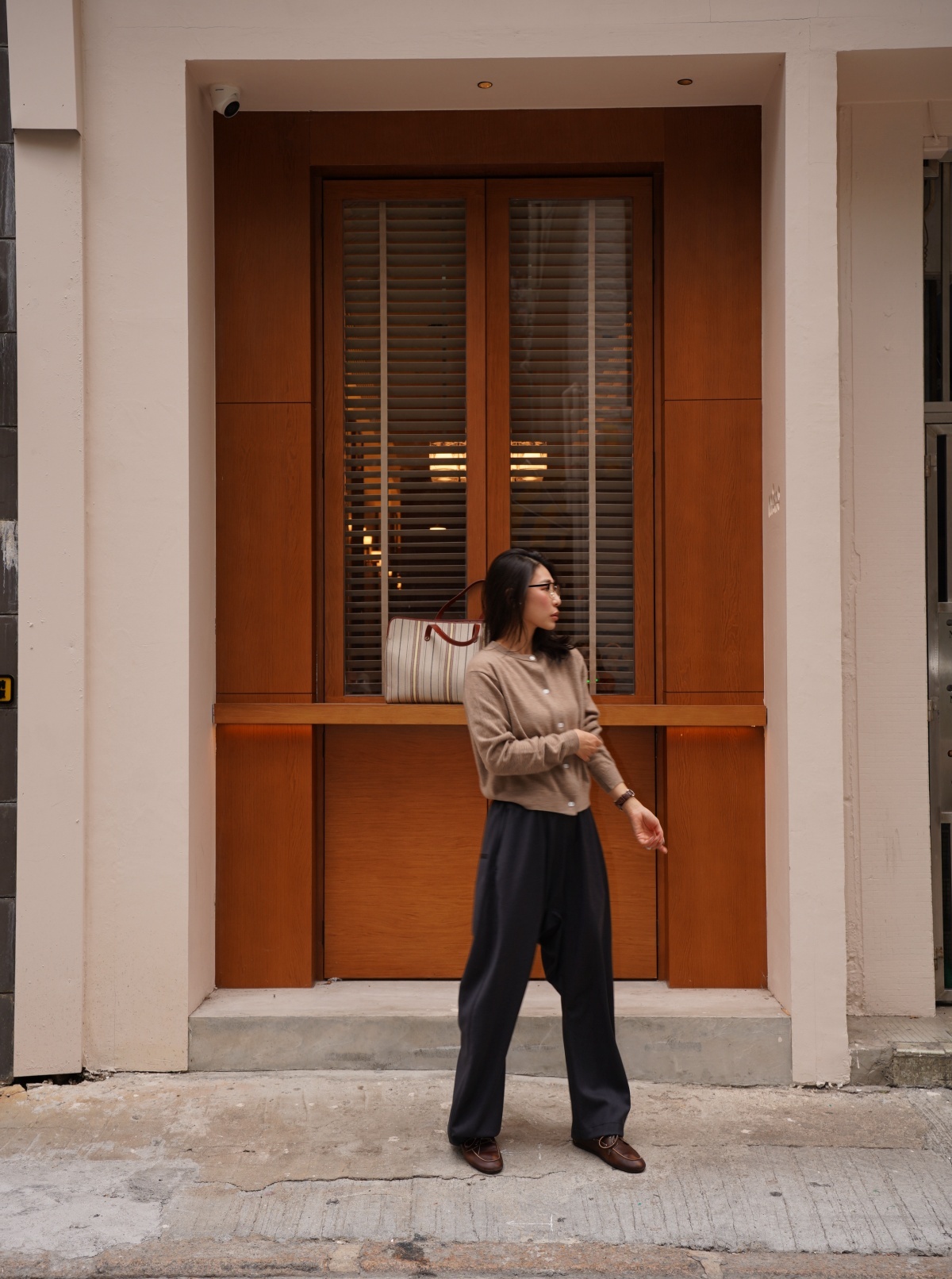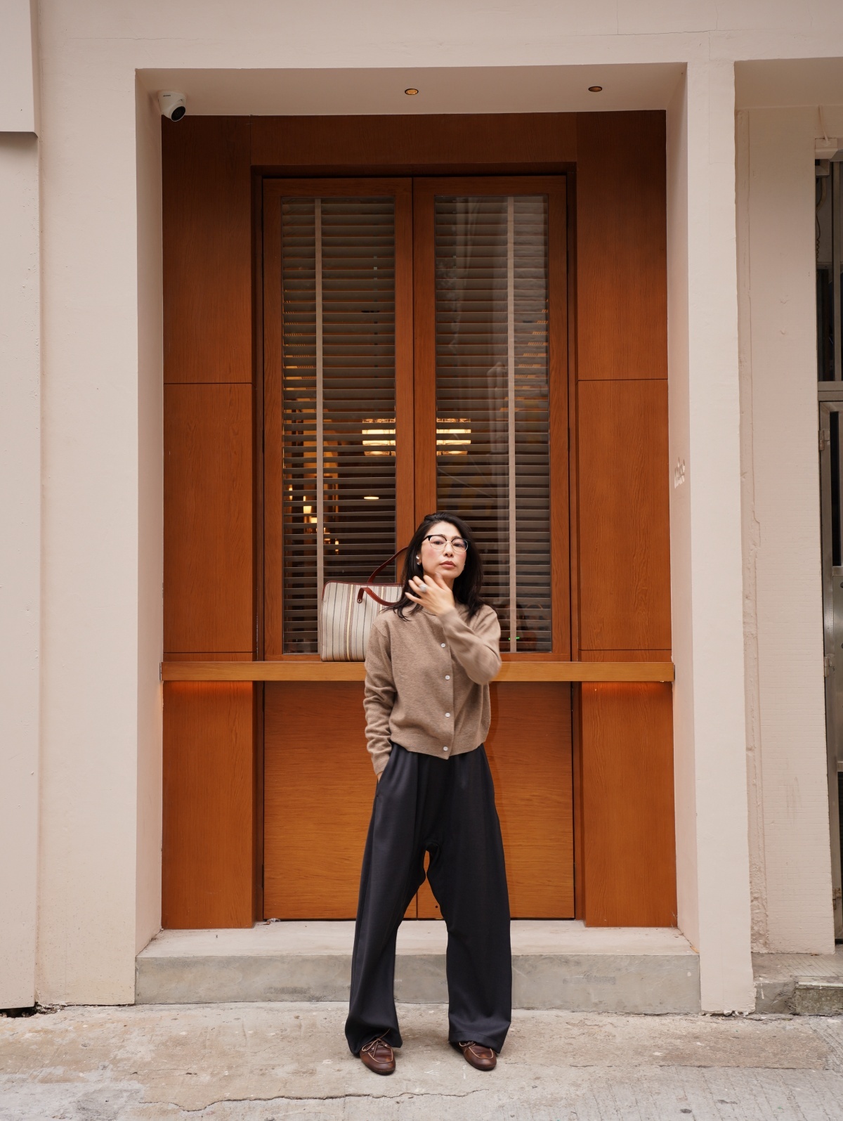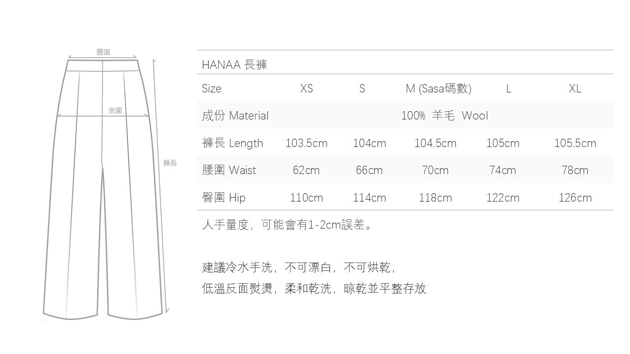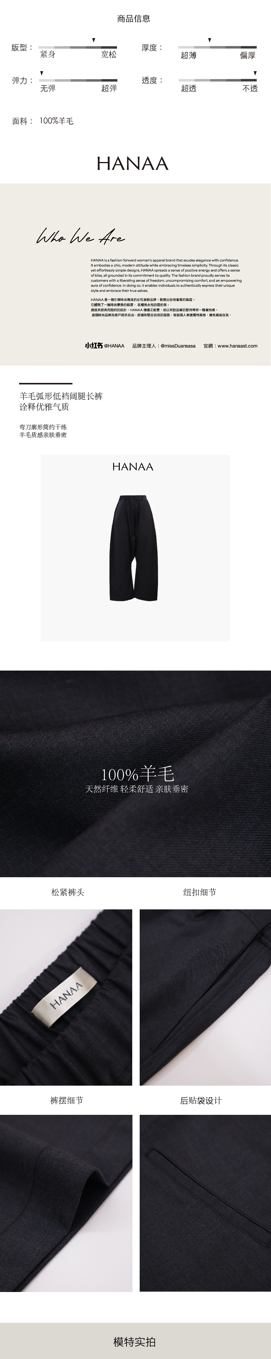 【預售】 HANAA 新款純羊毛深藍色弧形低裆寬腿垂感長褲 (11月28日前發)