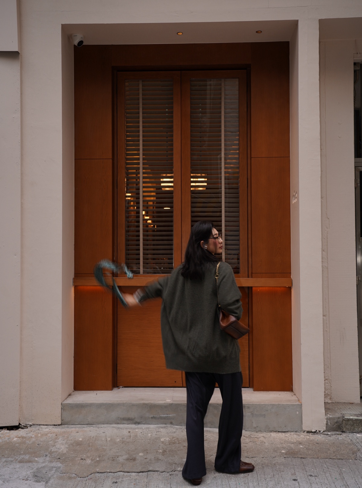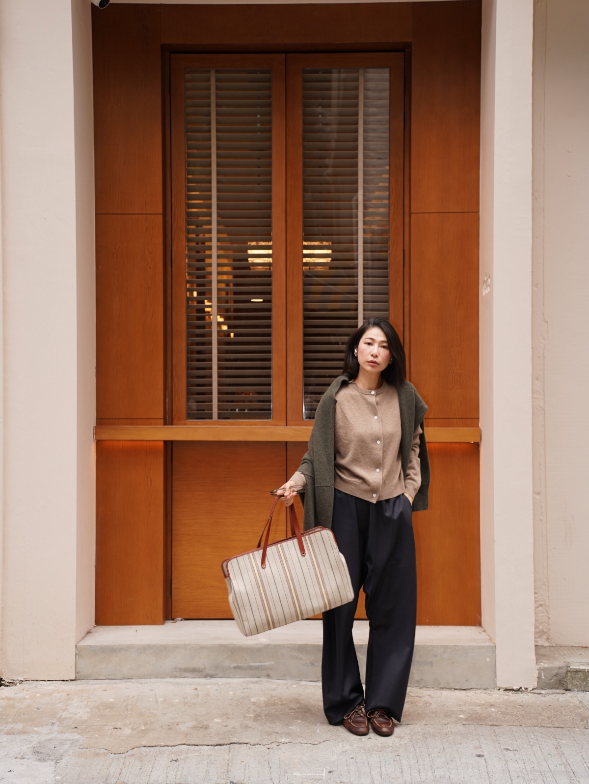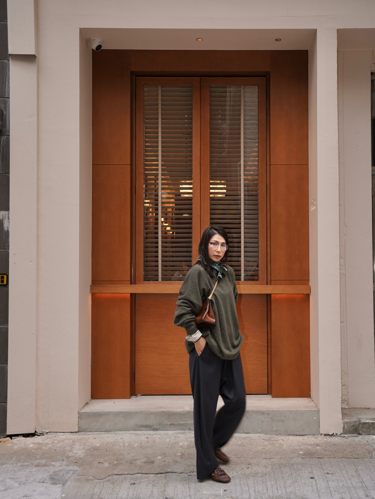 【預售】 HANAA 新款純羊毛深藍色弧形低裆寬腿垂感長褲 (11月28日前發)