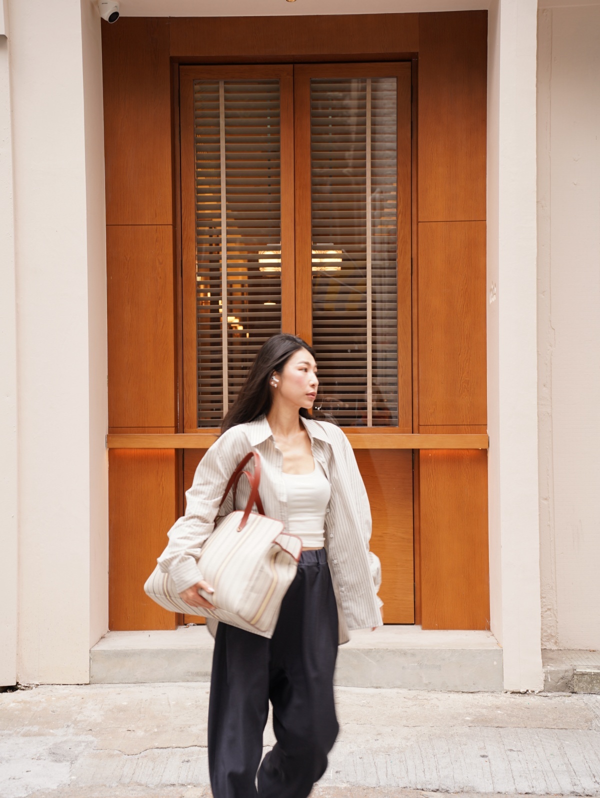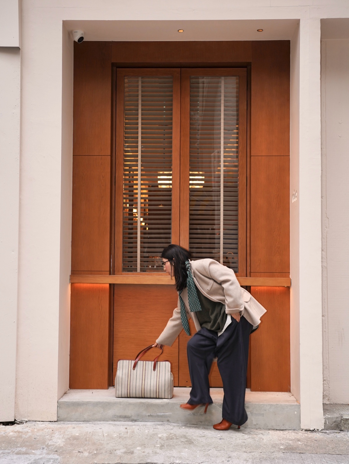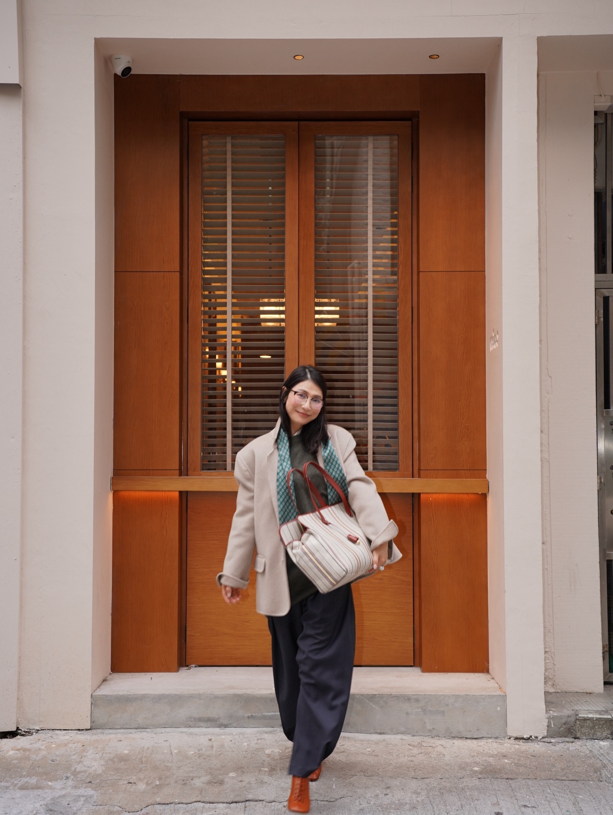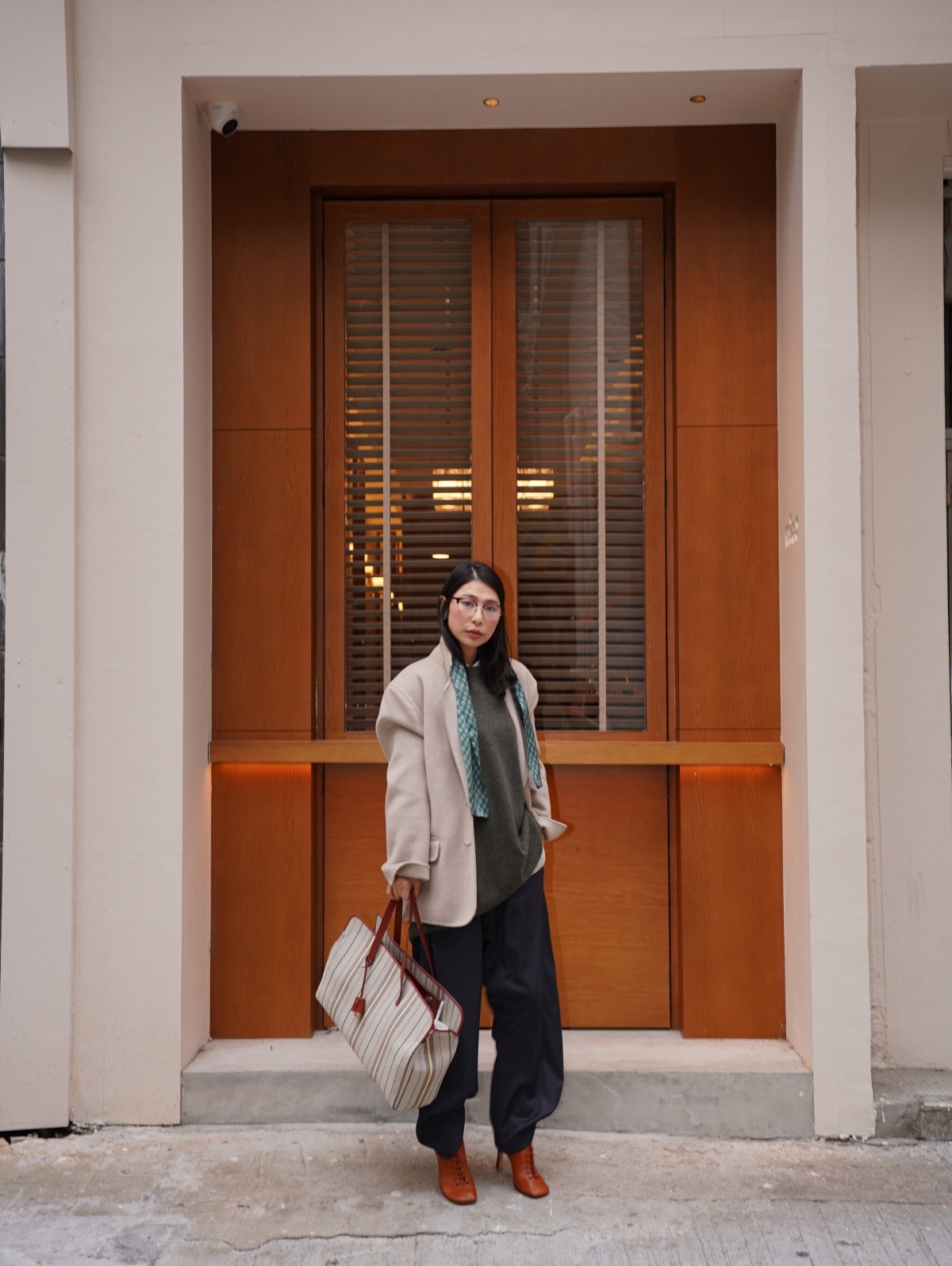 【預售】 HANAA 新款純羊毛深藍色弧形低裆寬腿垂感長褲 (11月28日前發)