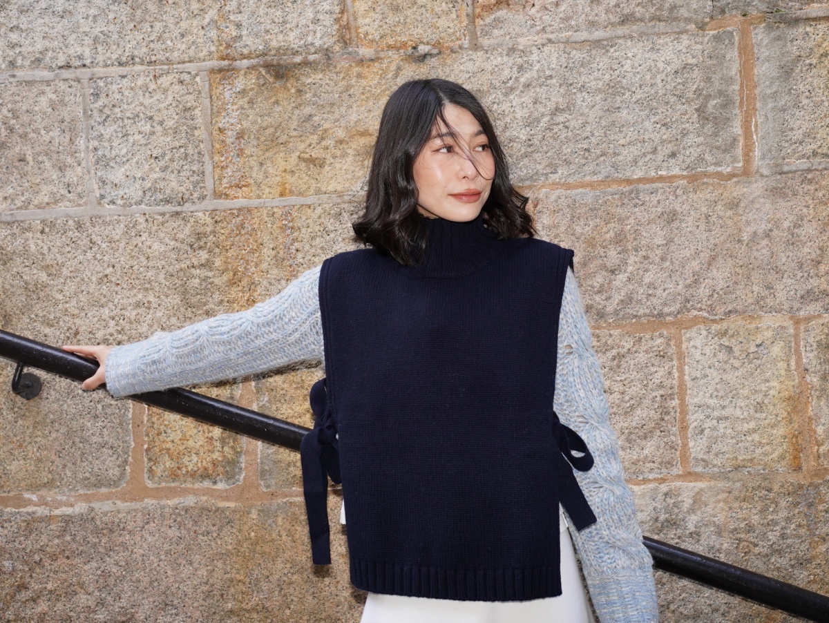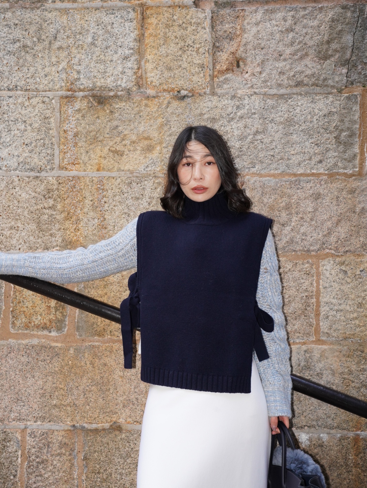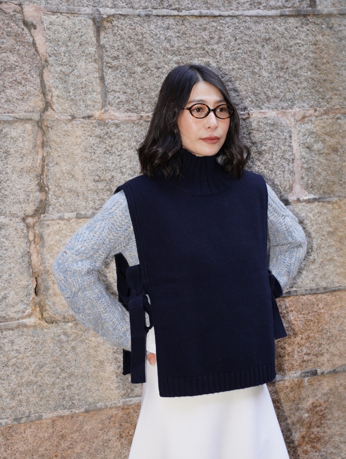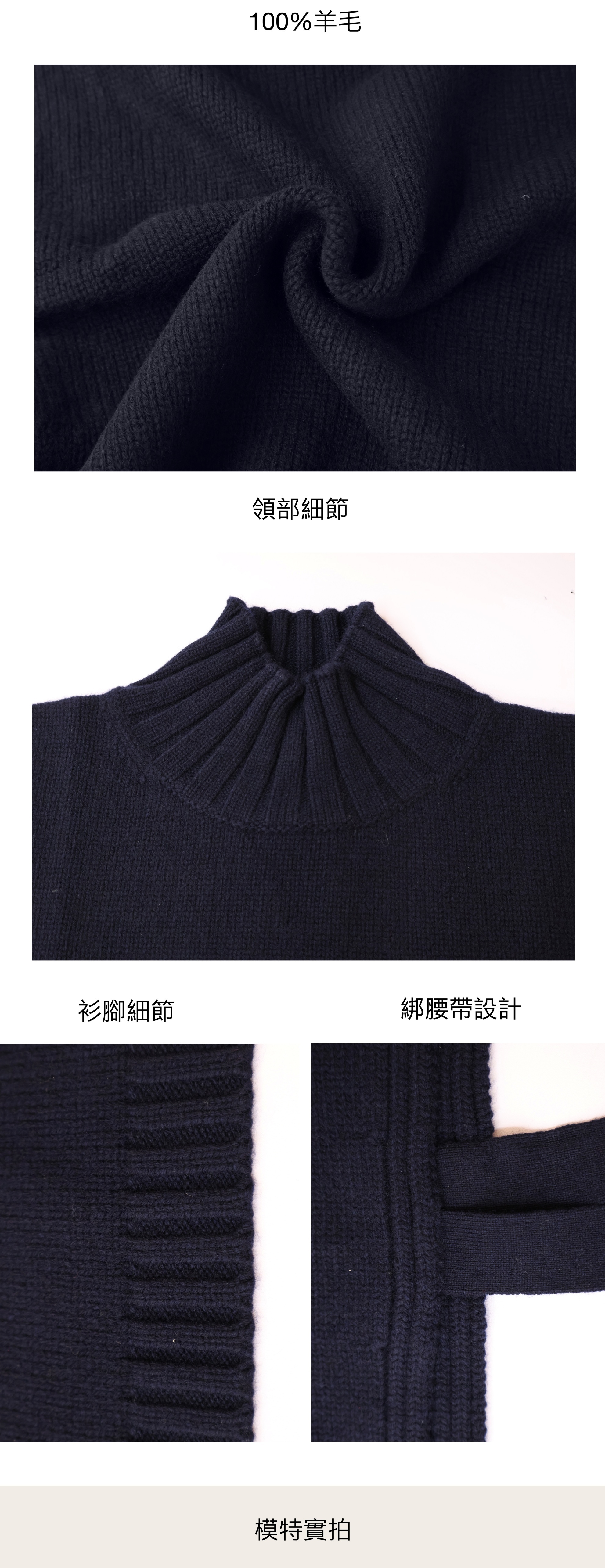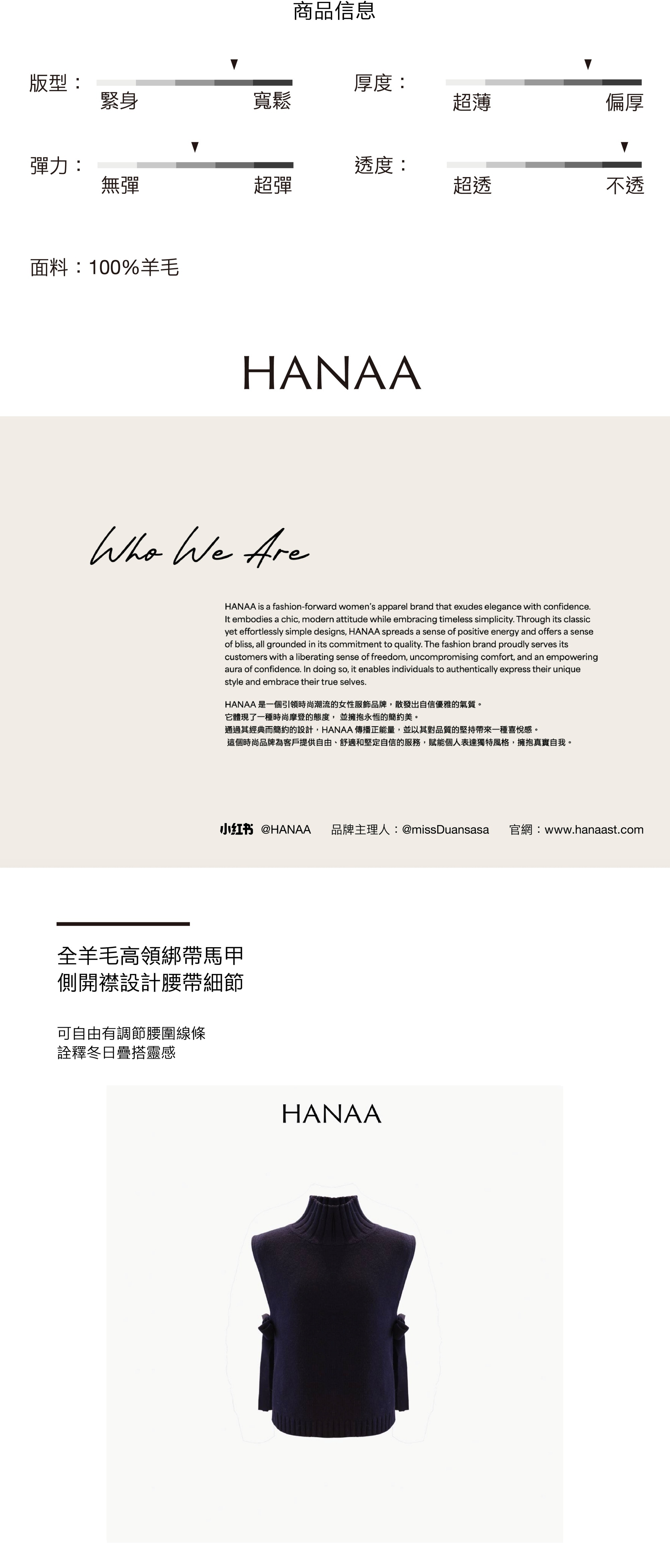 HANAA 新款全羊毛高領無袖繫帶針織背心馬甲