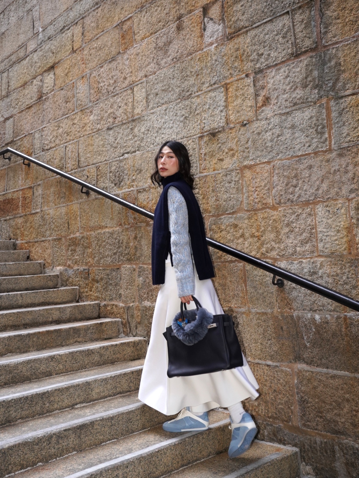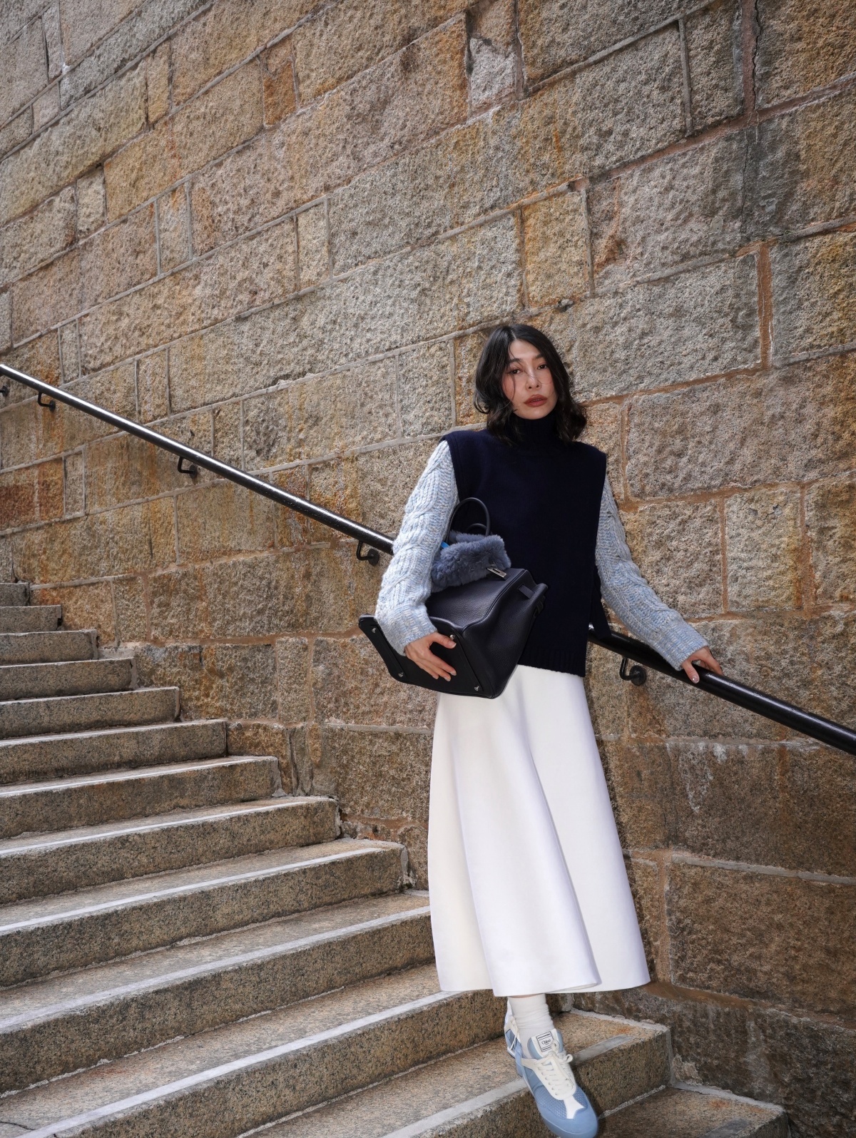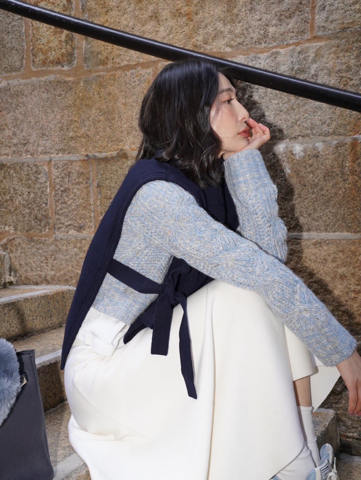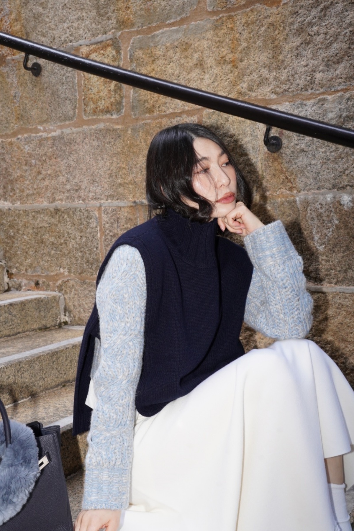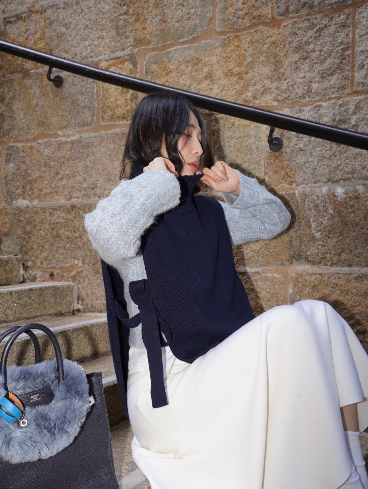 HANAA 新款全羊毛高領無袖繫帶針織背心馬甲