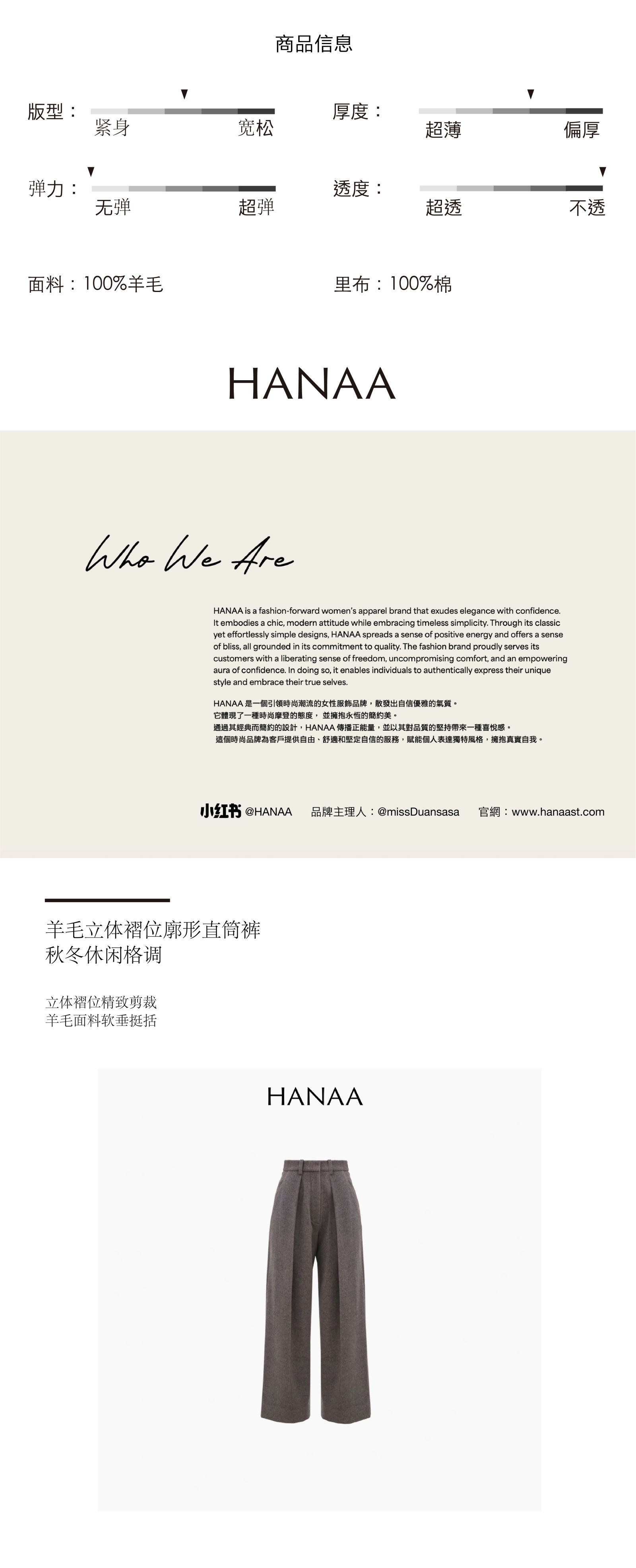 HANAA 100% Wool Structured Pleated Oversized Straight-Leg Trousers