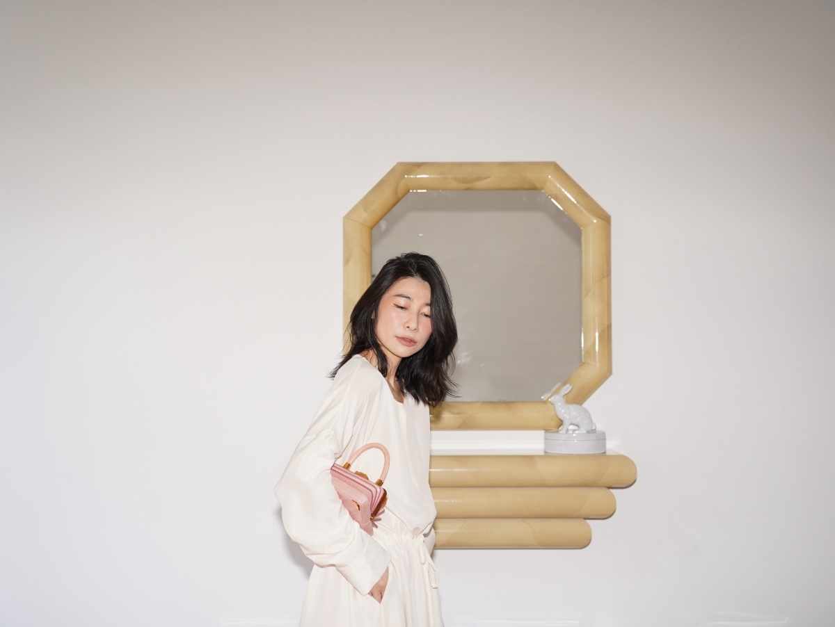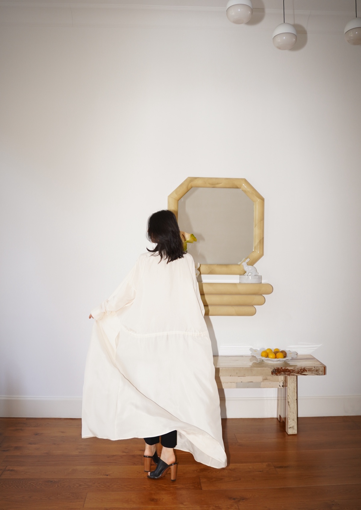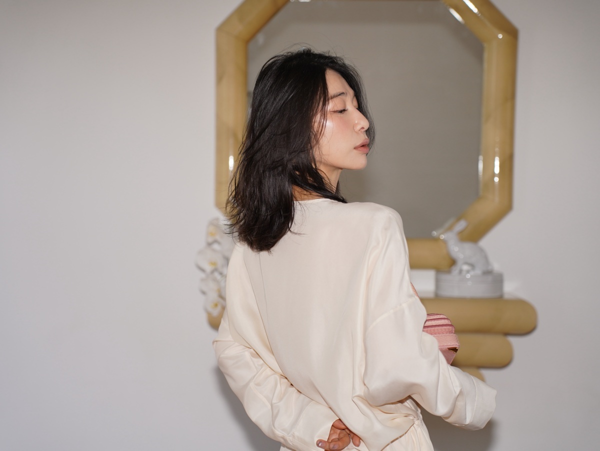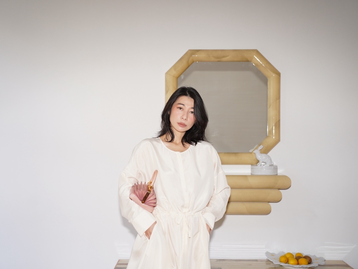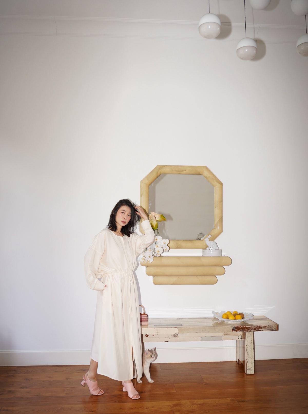 HANAA 新款淡黃色16MM真絲電力紡抽繩廓形連衣裙