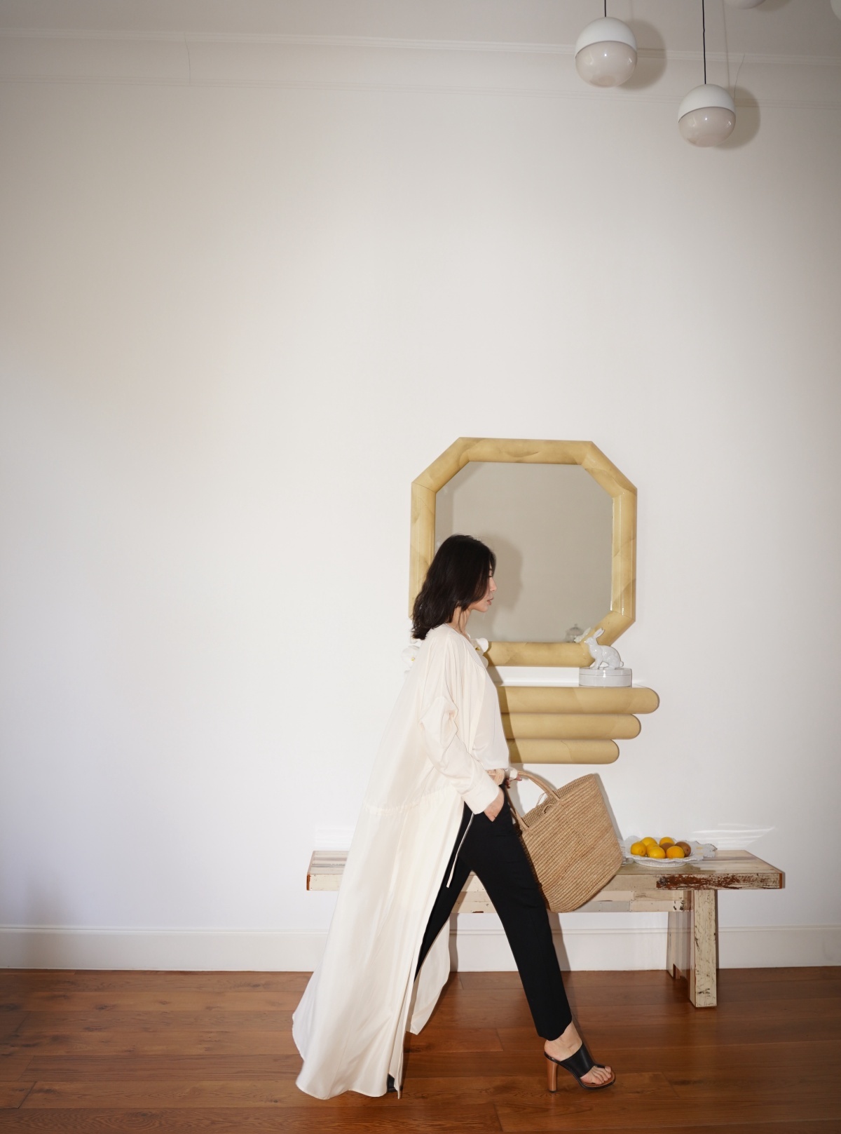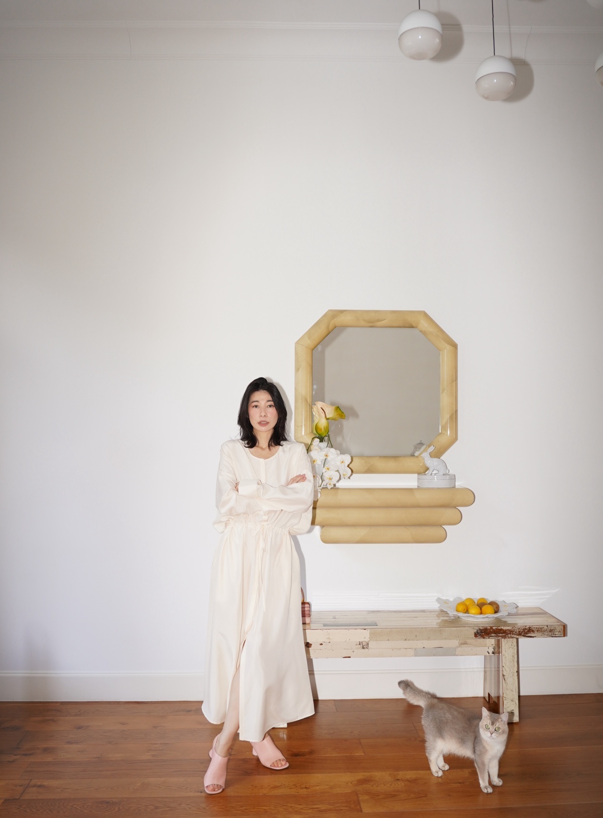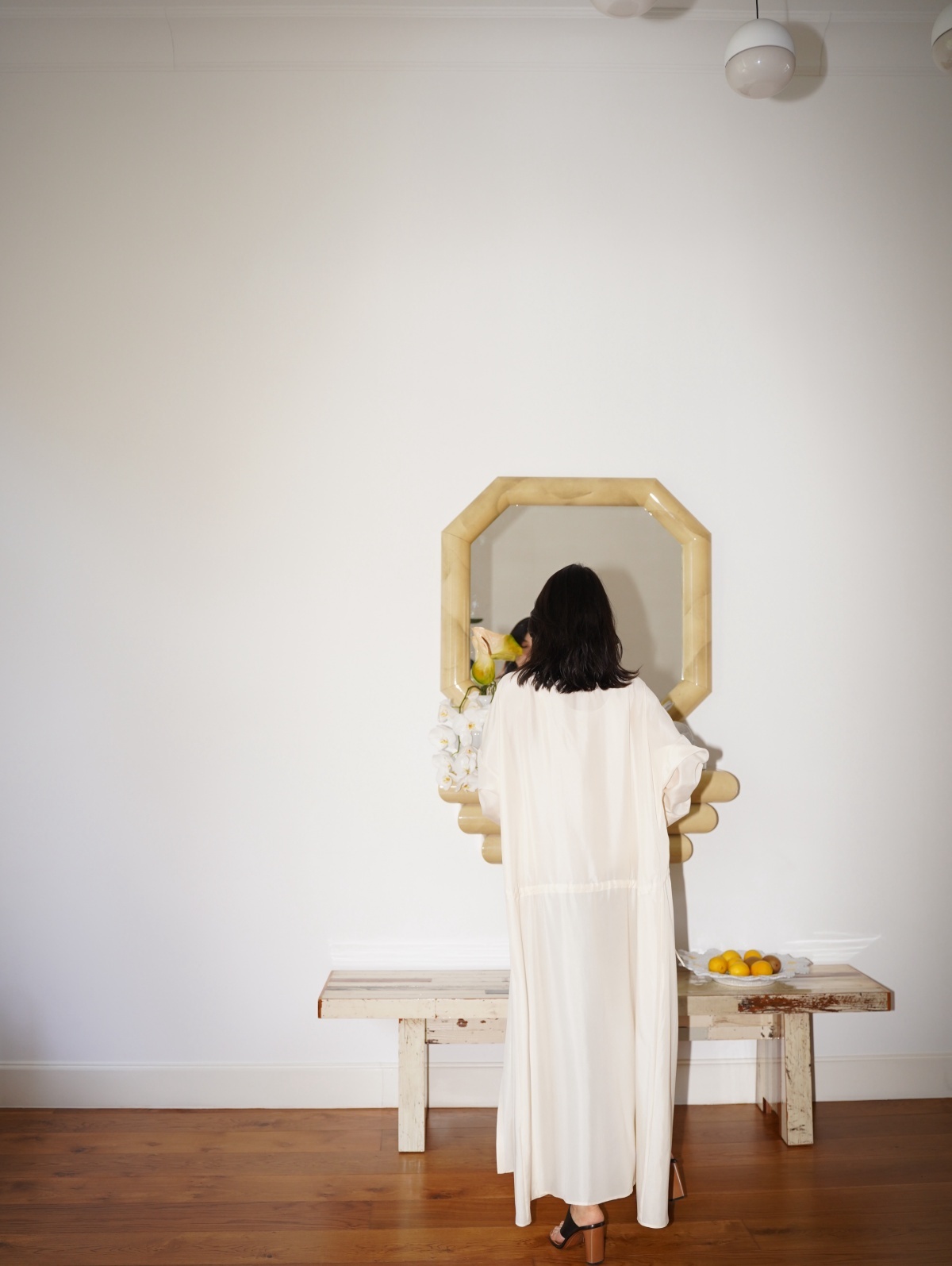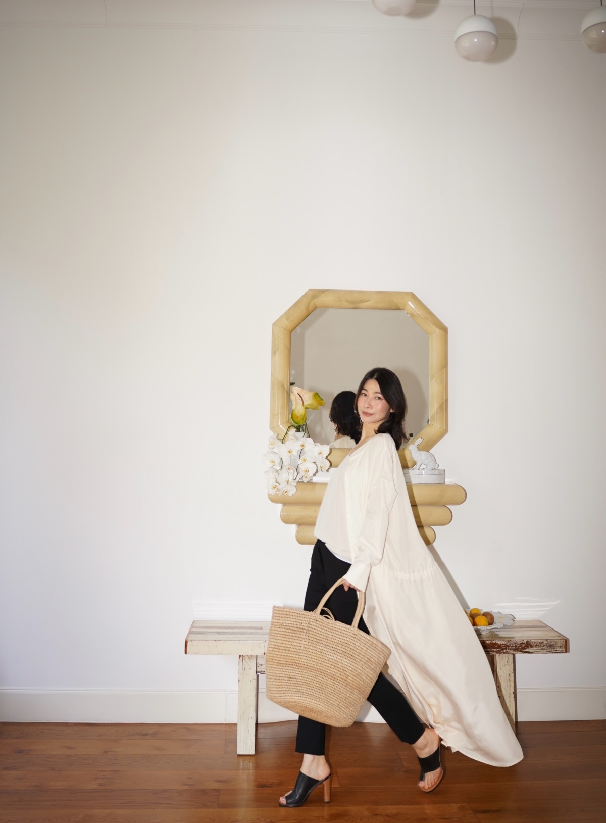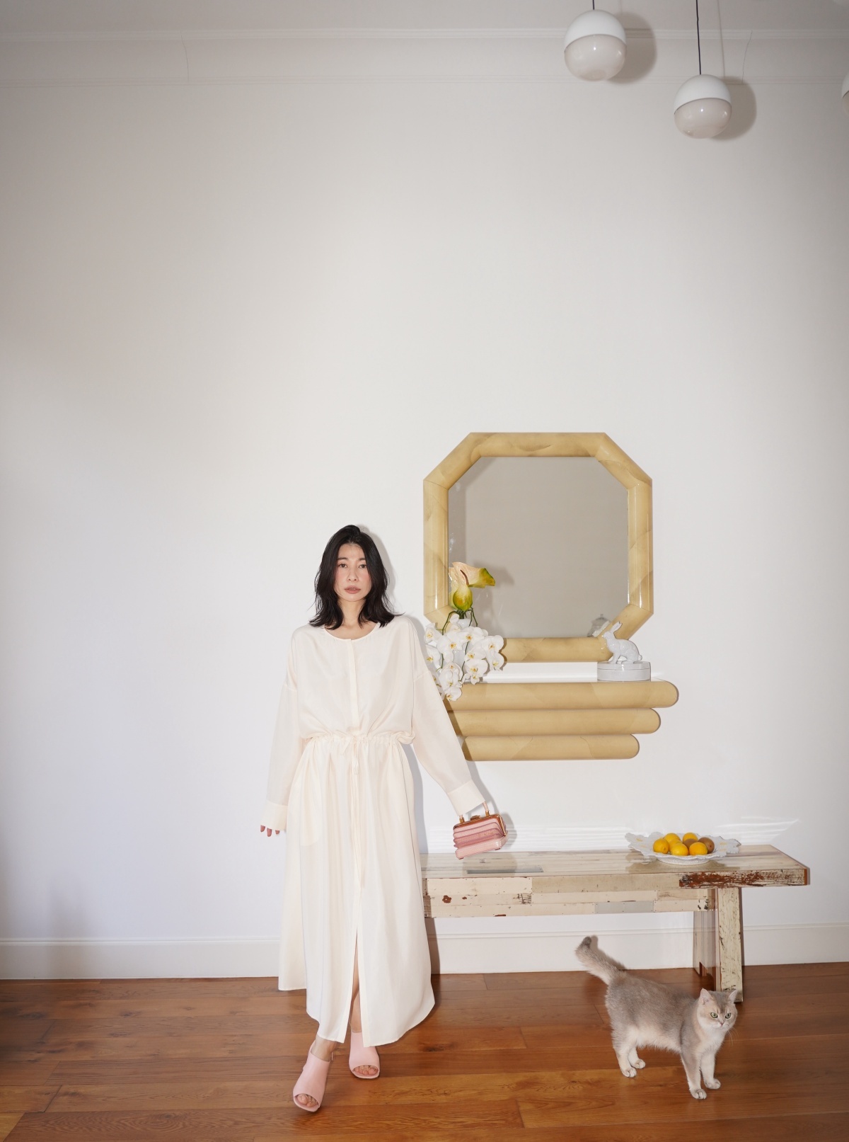 HANAA 新款淡黃色16MM真絲電力紡抽繩廓形連衣裙