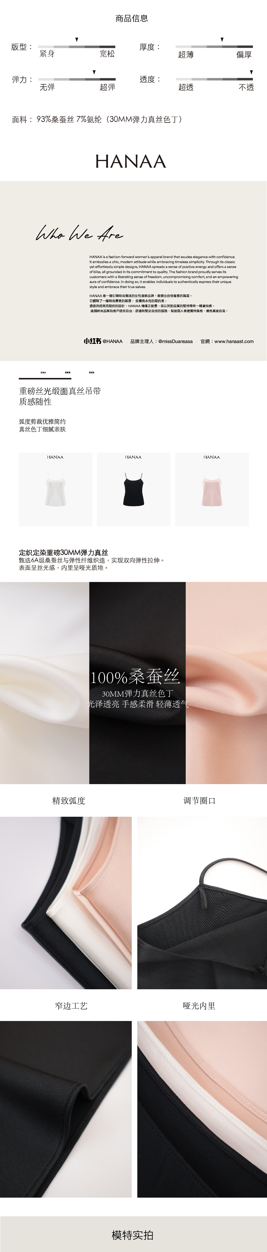 HANAA 新款重磅30MM絲光緞面真絲吊帶