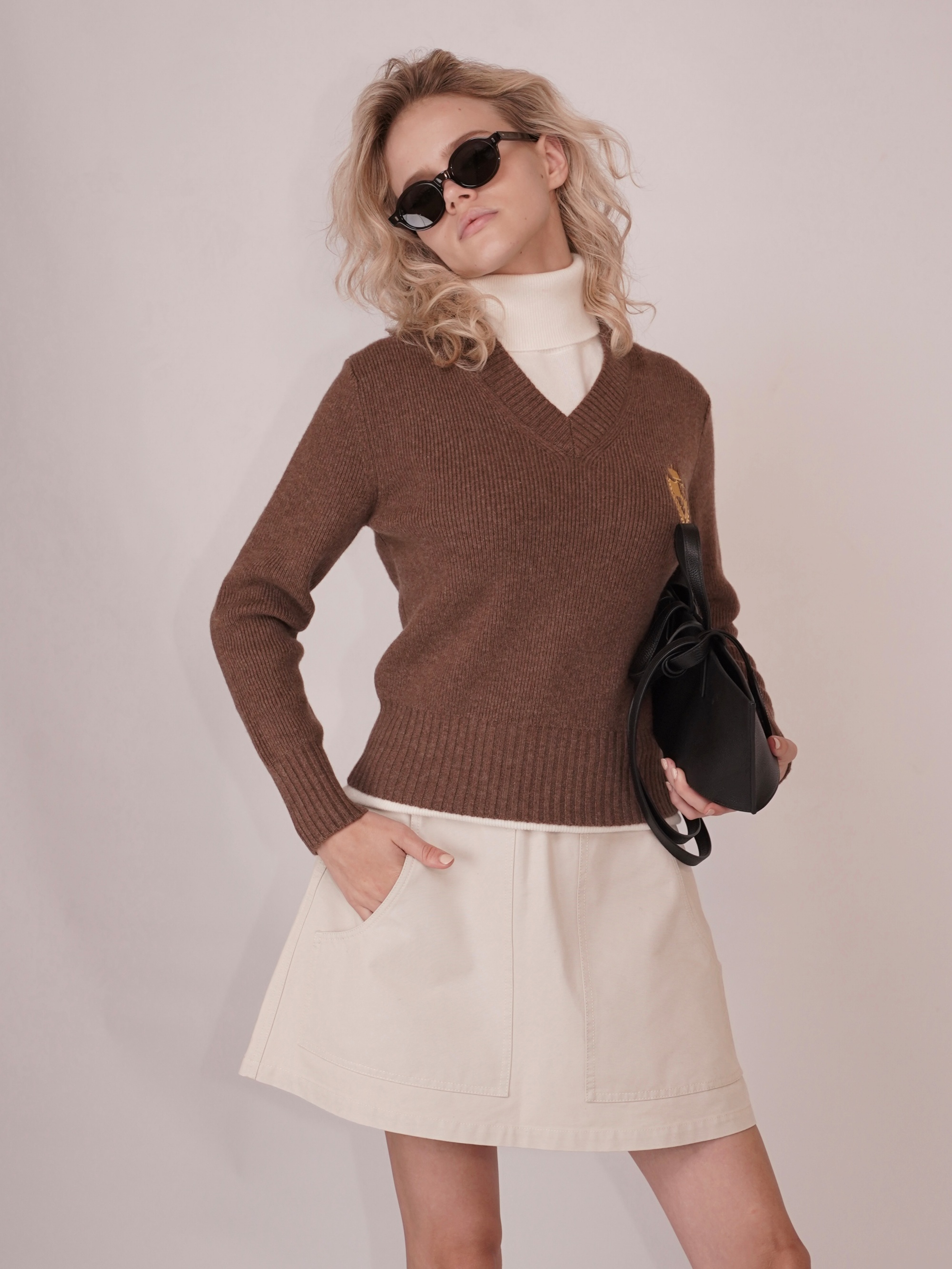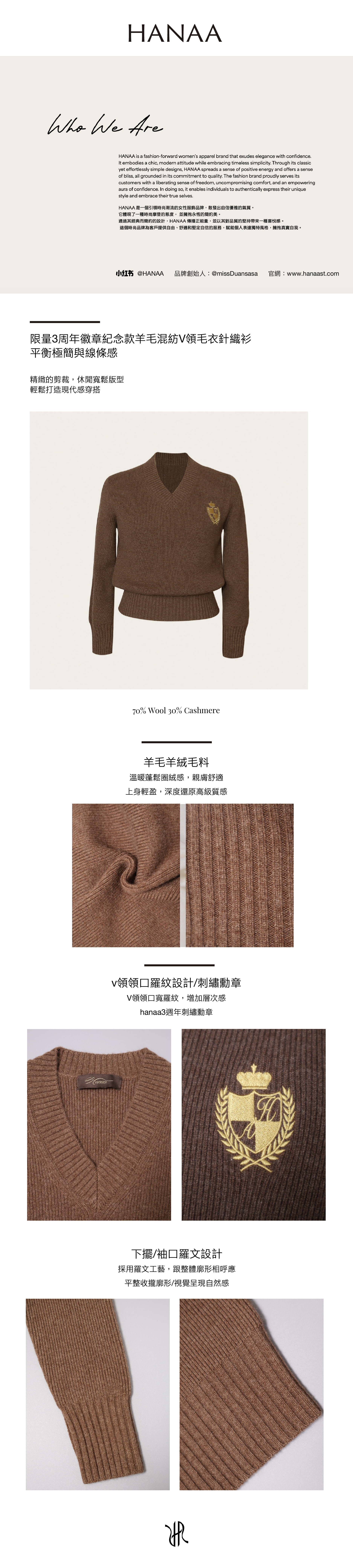 HANAA 新款限量3周年徽章紀念款羊毛羊絨V領毛衣針織衫