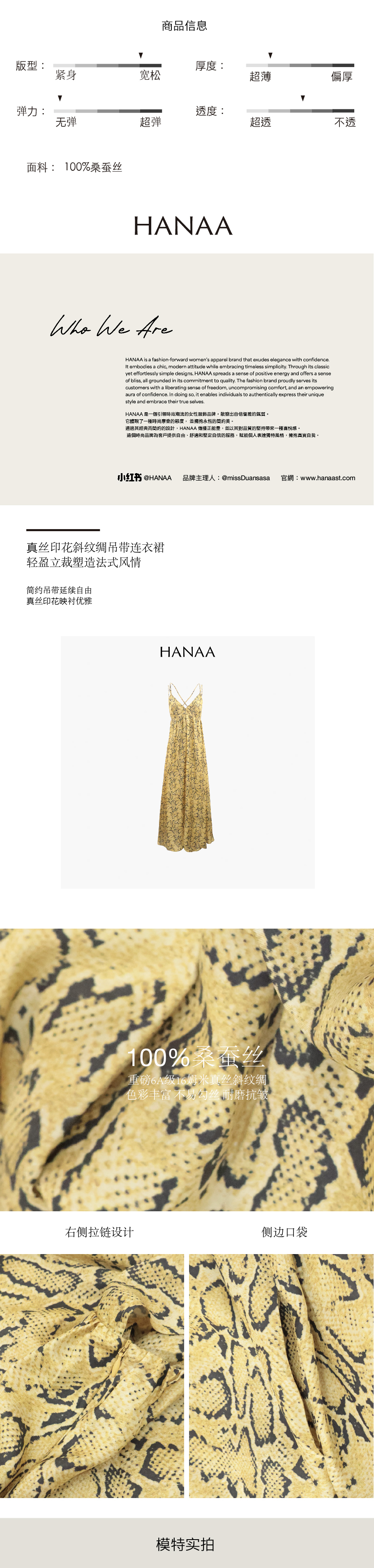HANAA 新款6A级16姆米真絲印花斜紋綢吊帶連衣裙