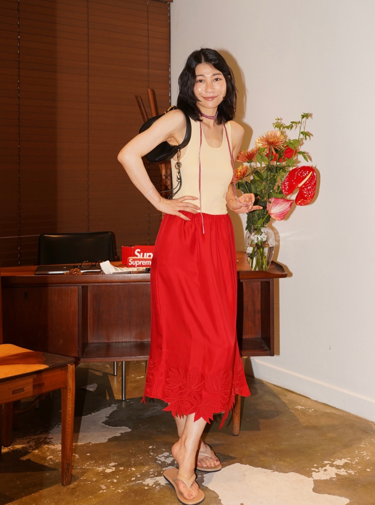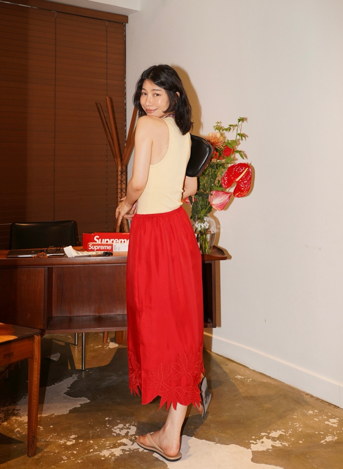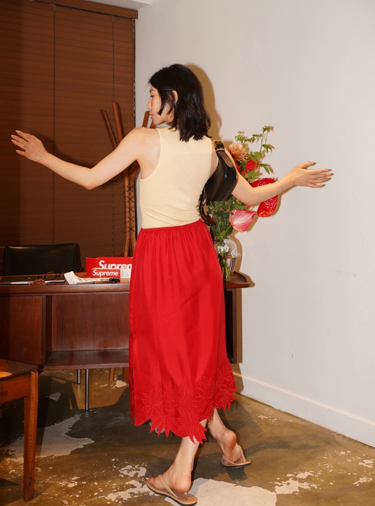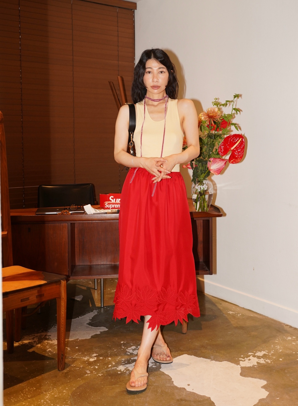 HANAA 新款6A级16姆米真絲斜紋綢立體繡花手工剪邊側開叉半裙