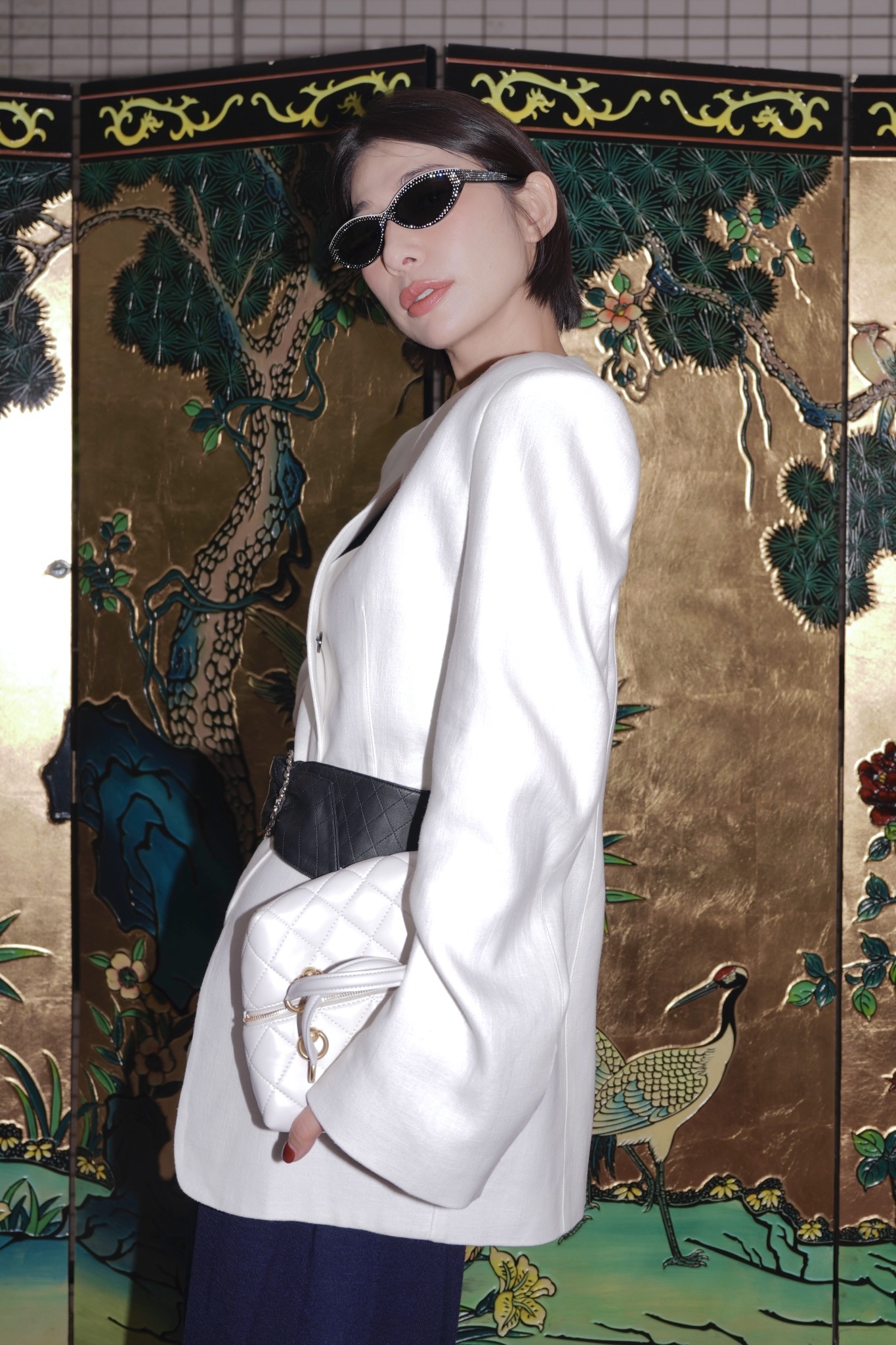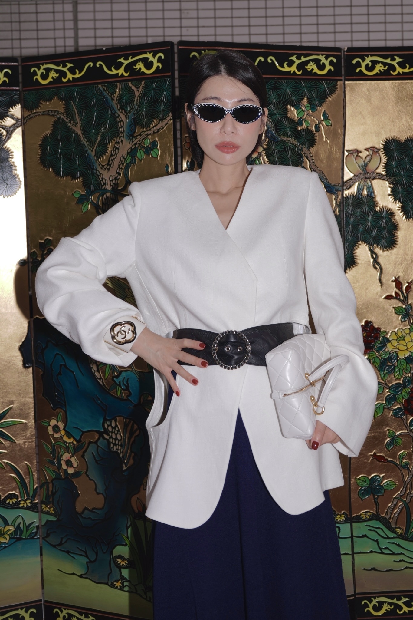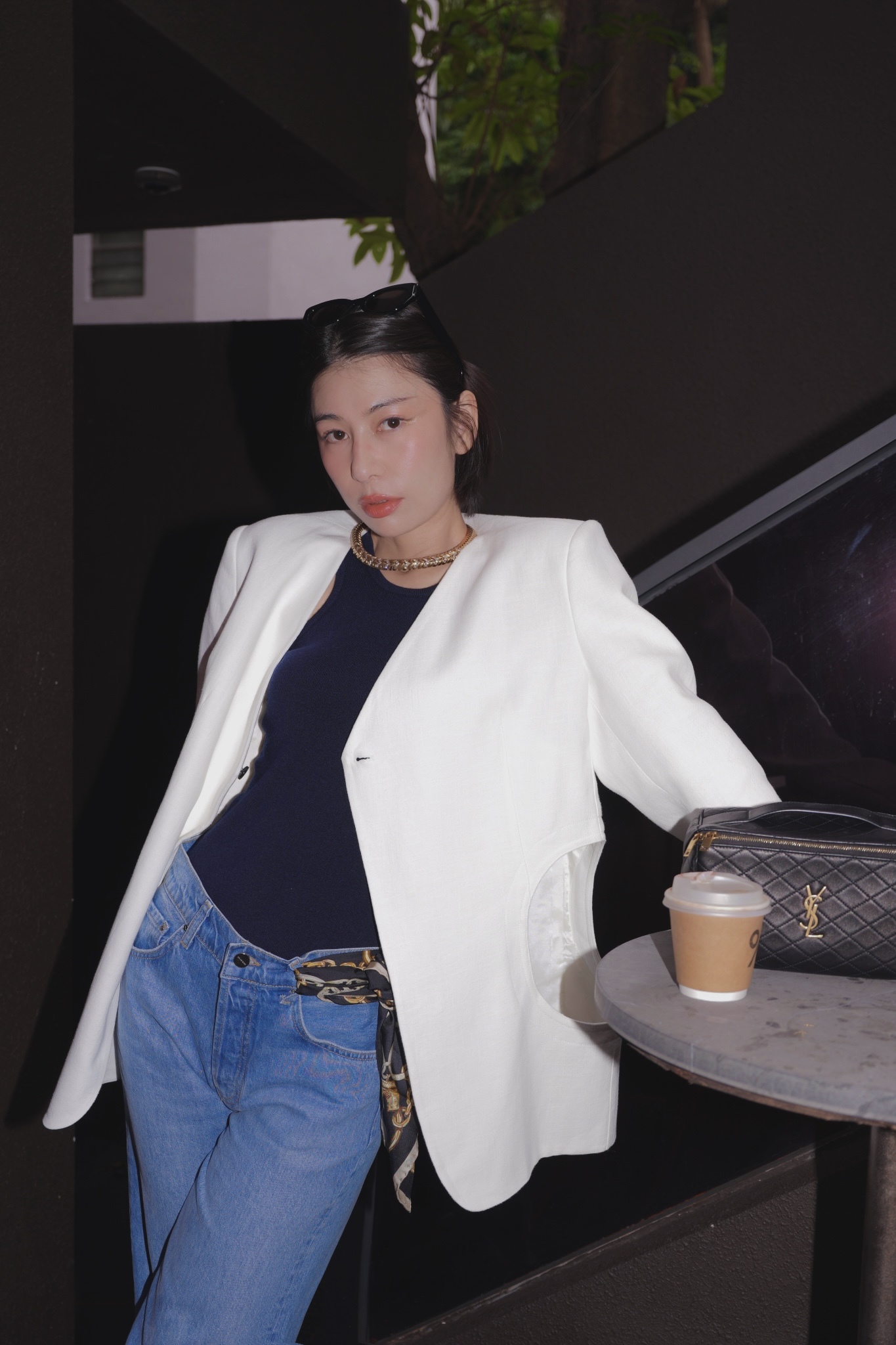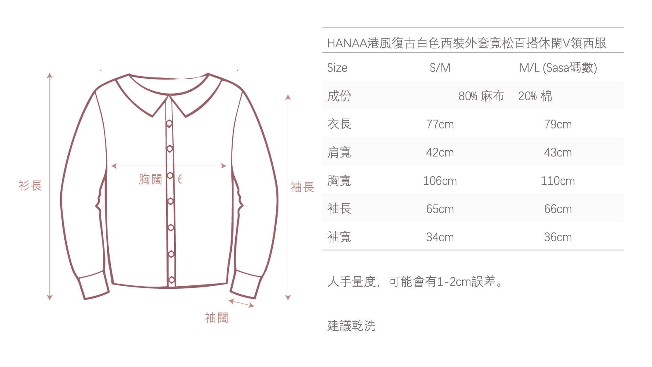 HANAA秋季新款港風復古白色西裝外套寬鬆百搭休閑V領西服上衣