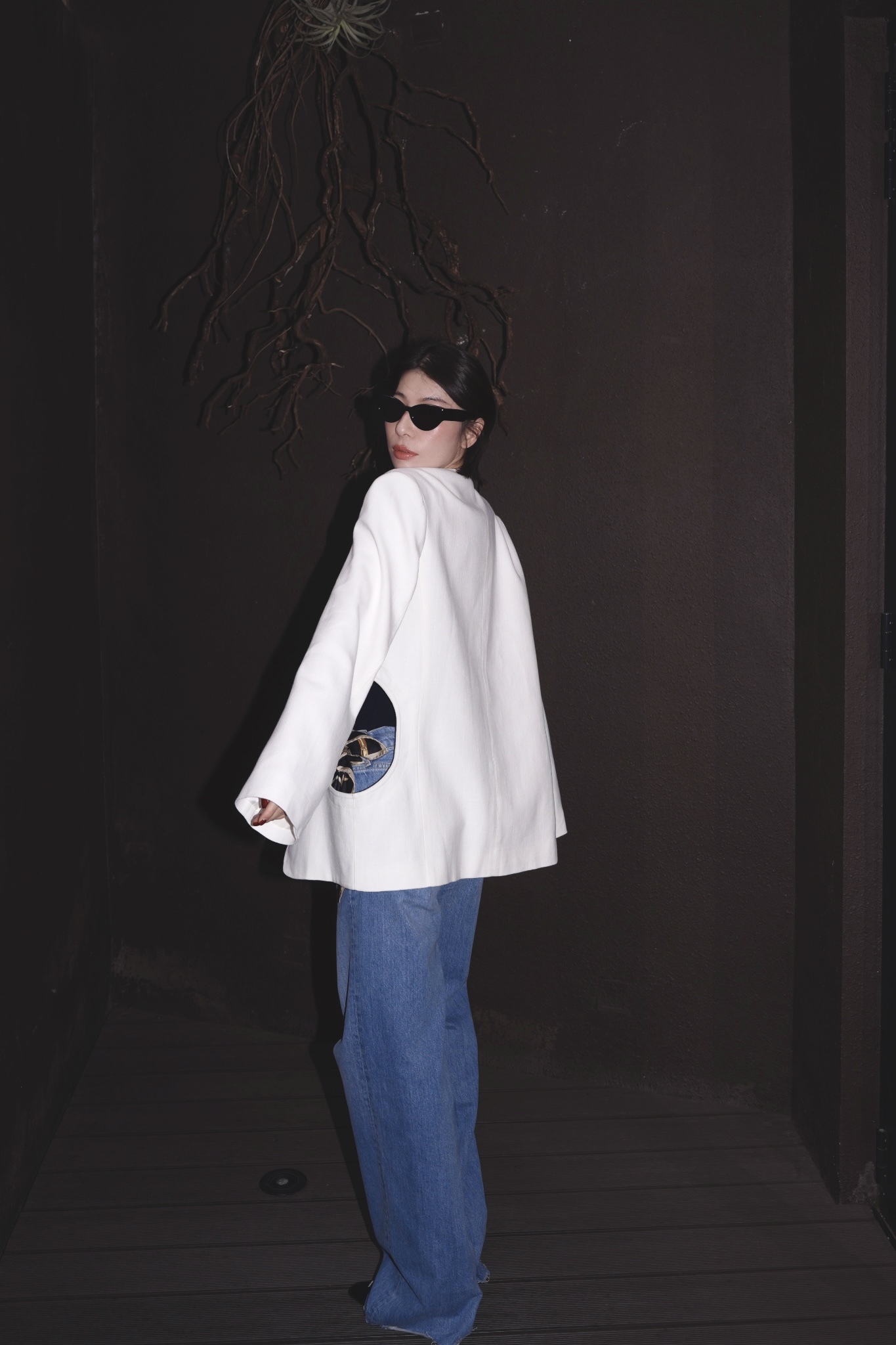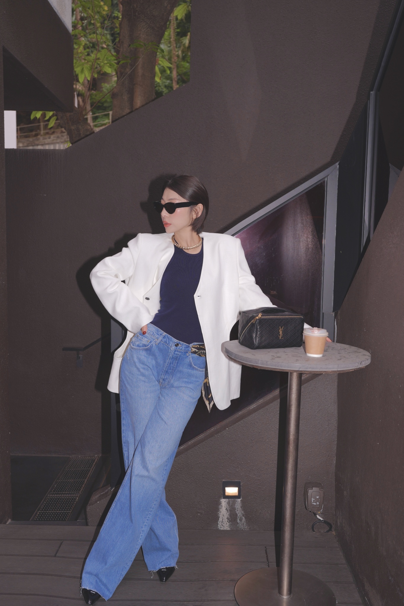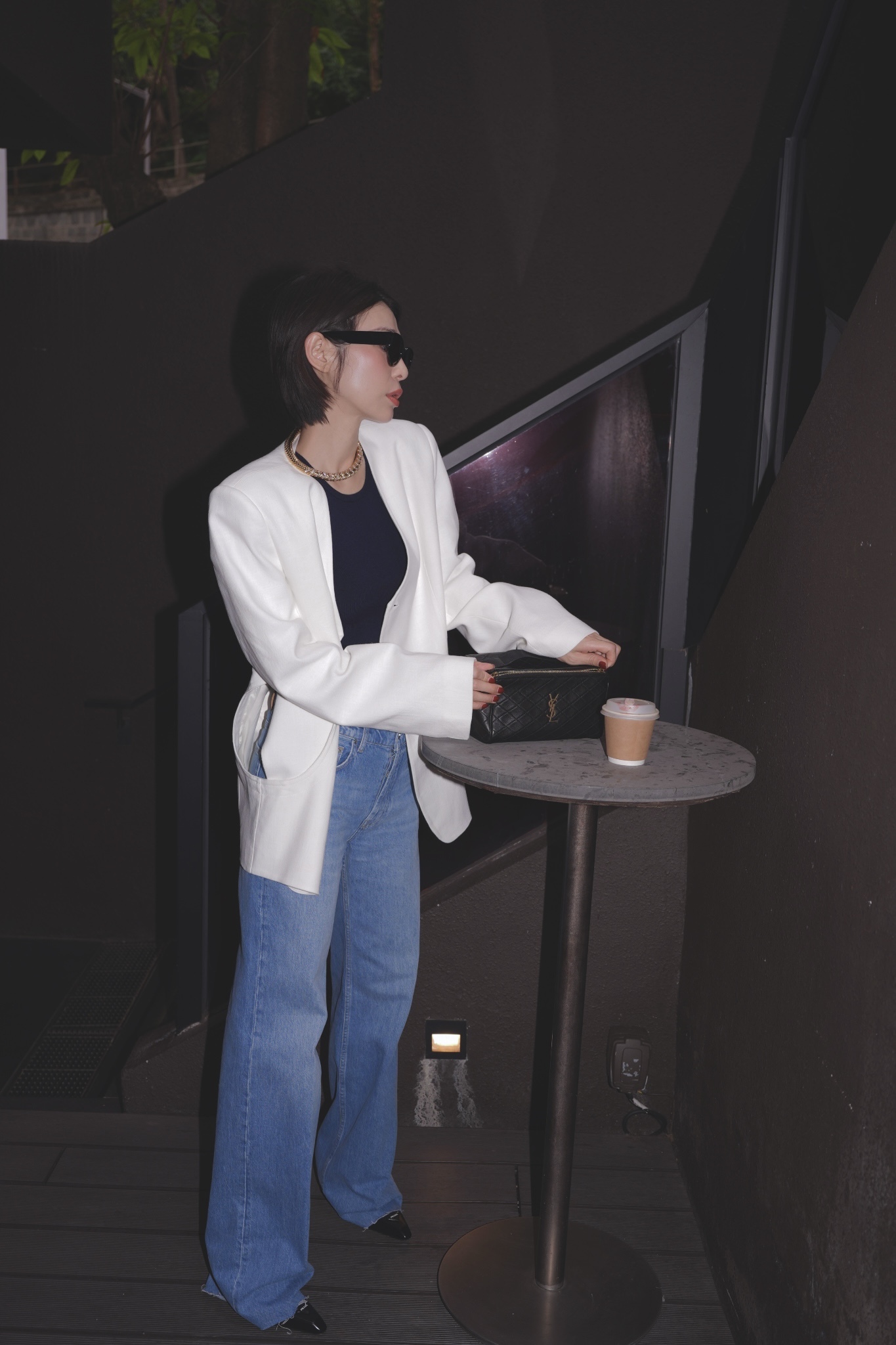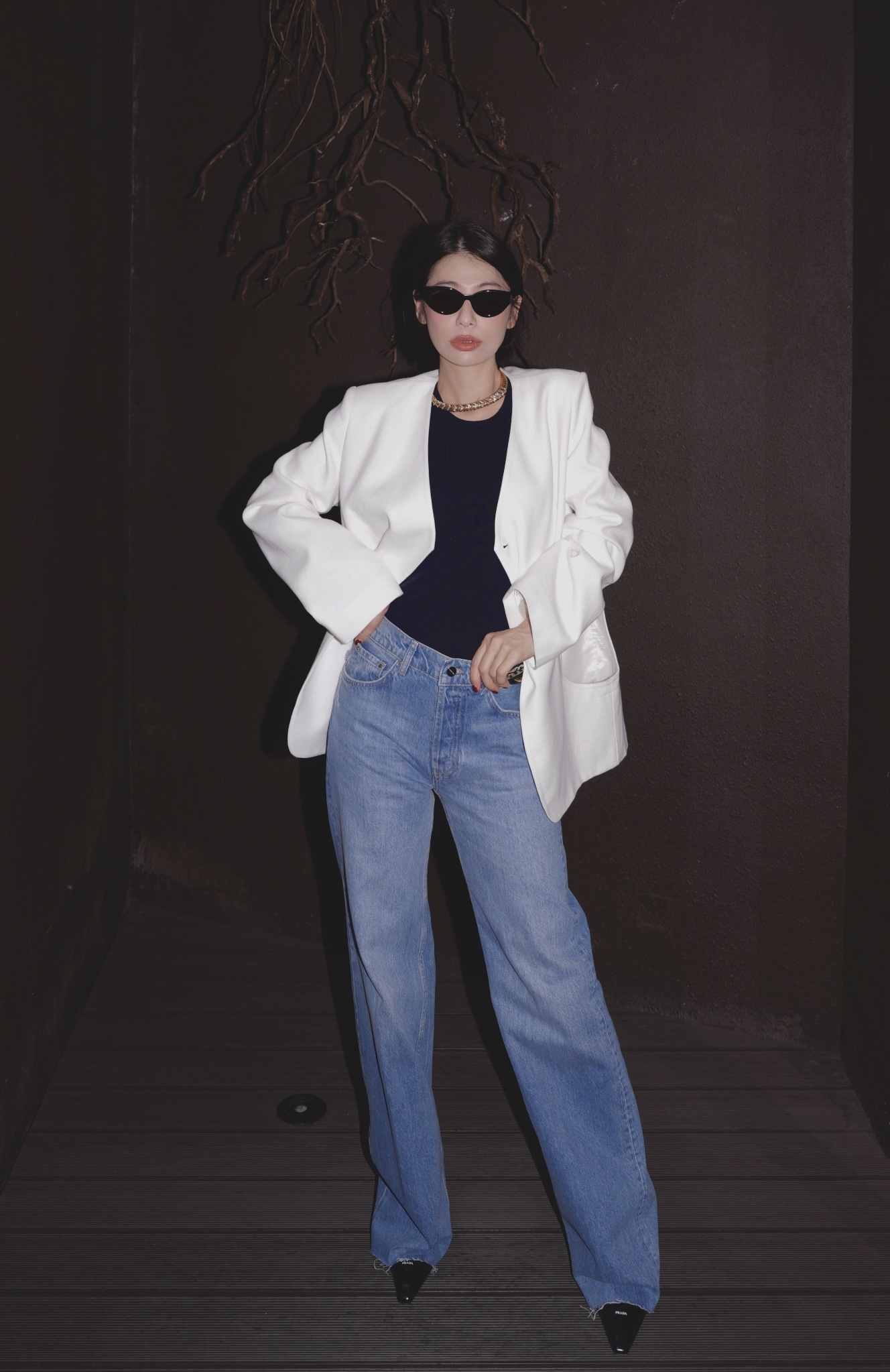 HANAA秋季新款港風復古白色西裝外套寬鬆百搭休閑V領西服上衣