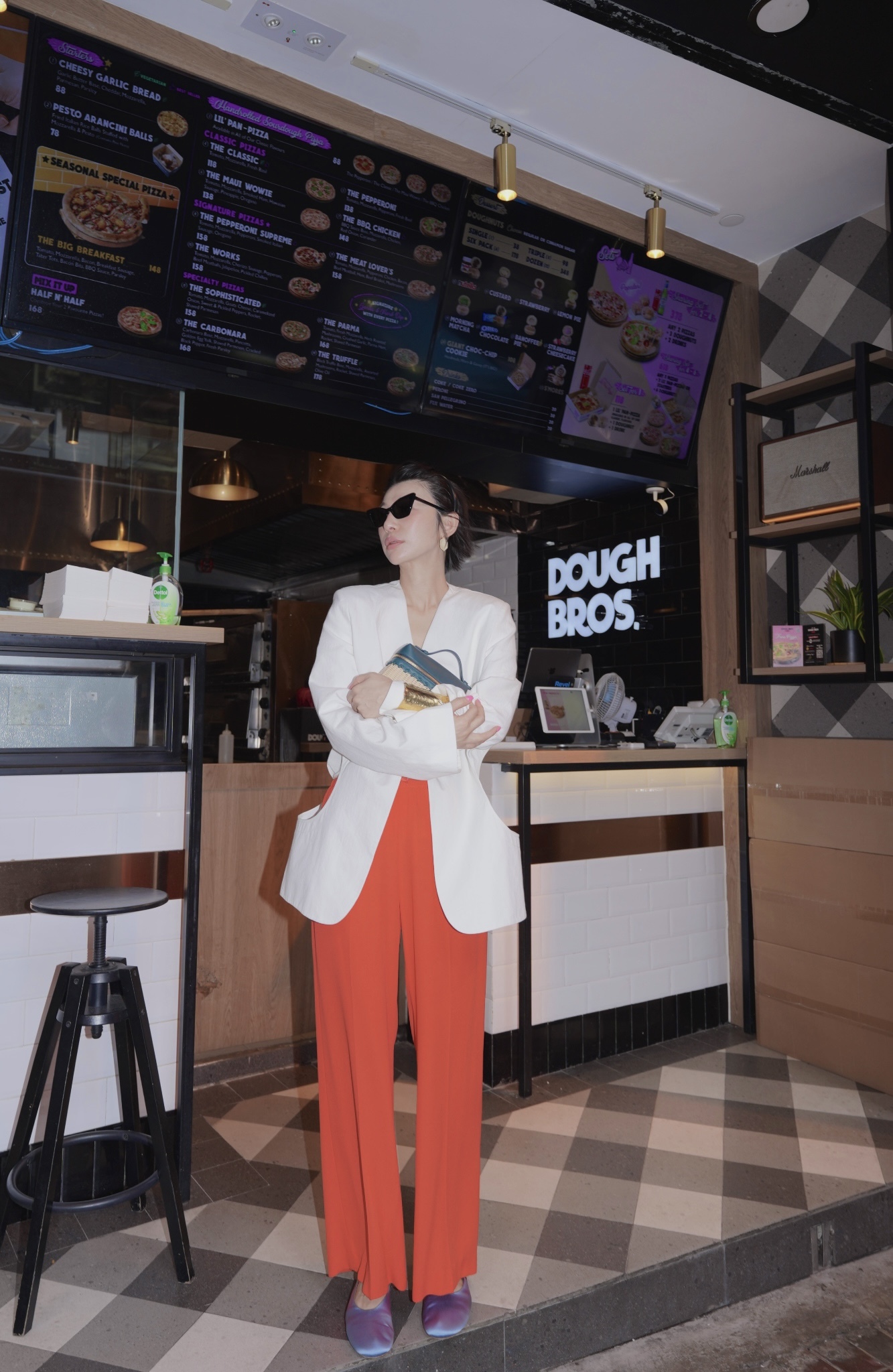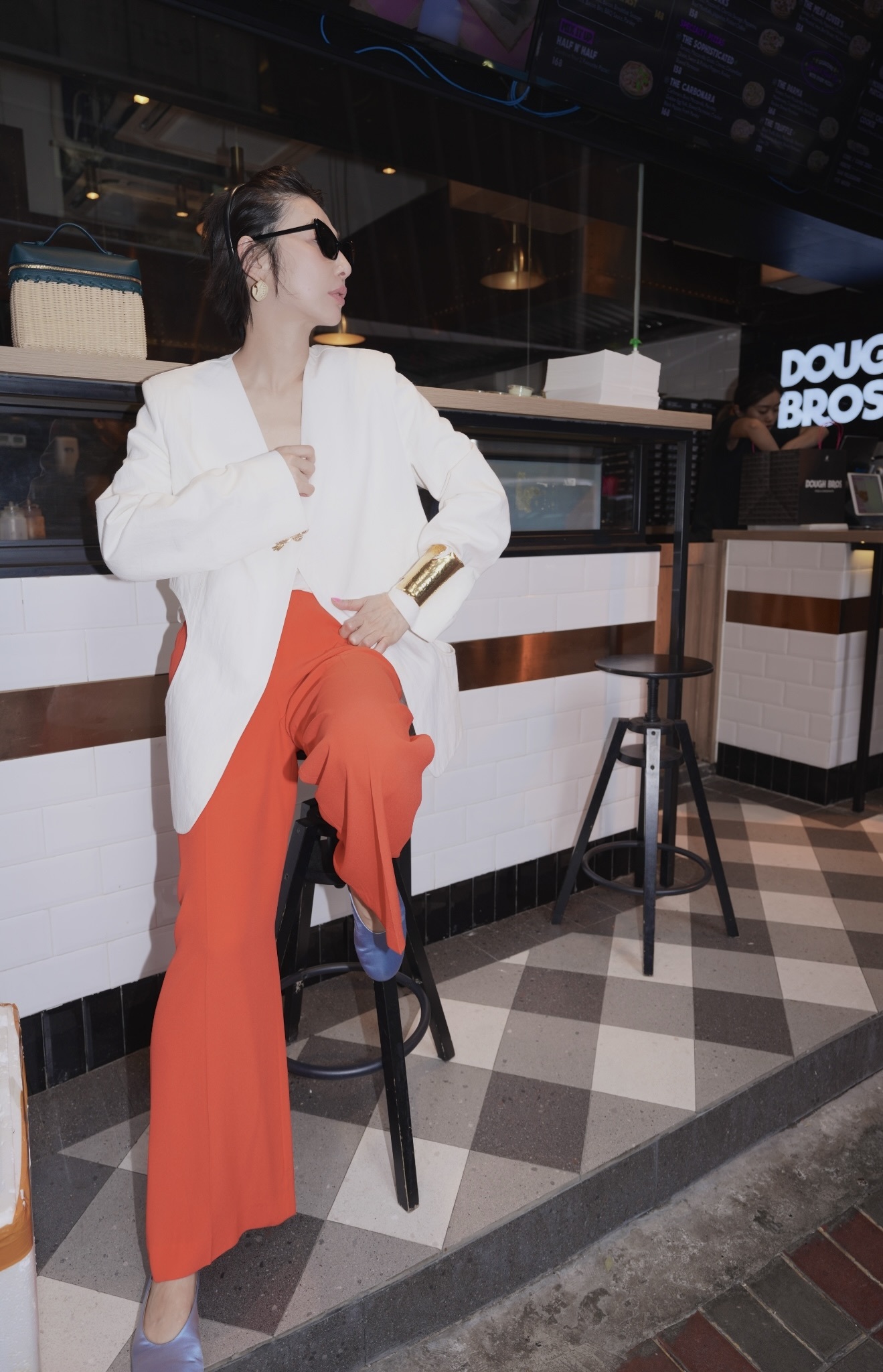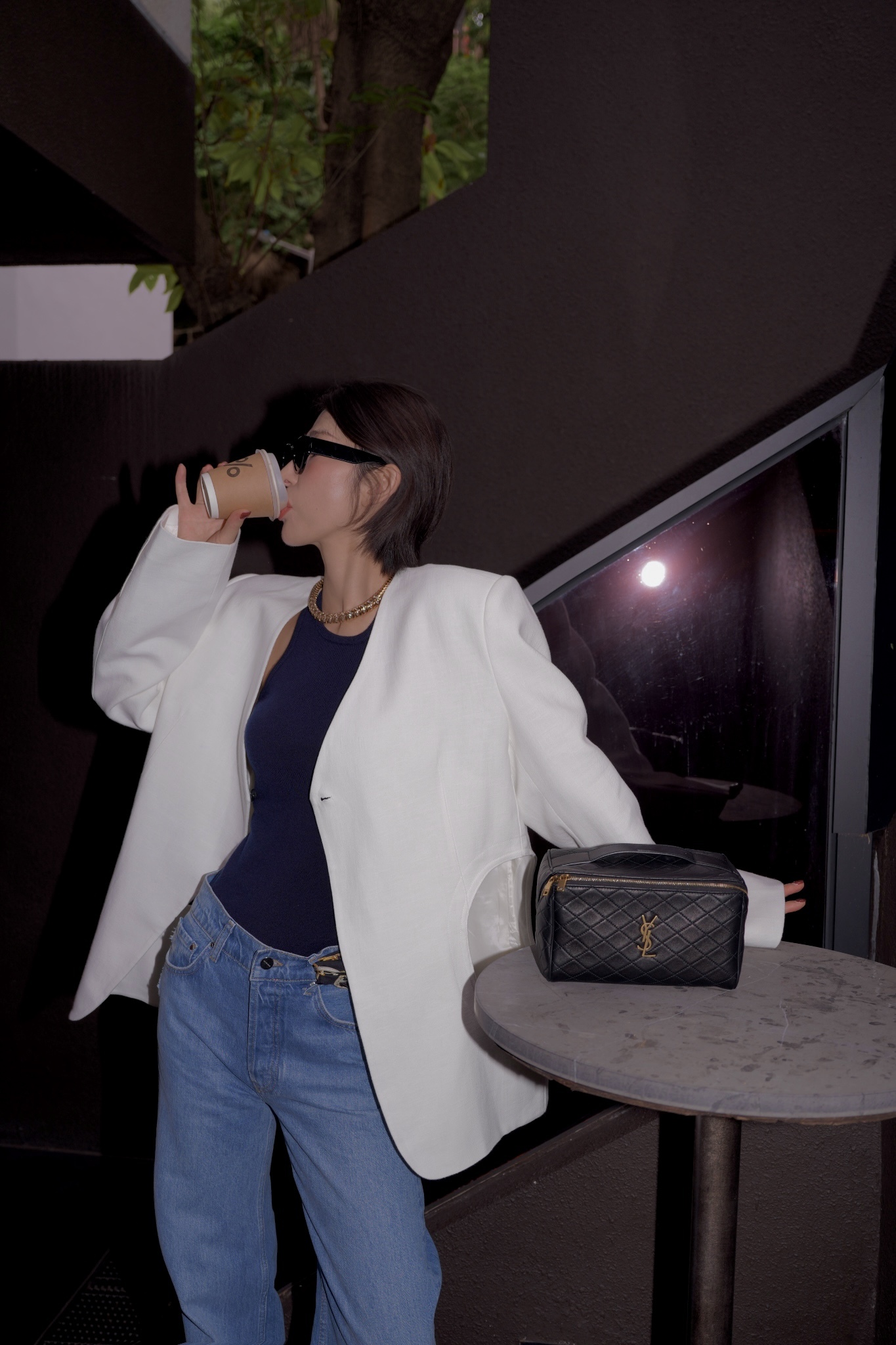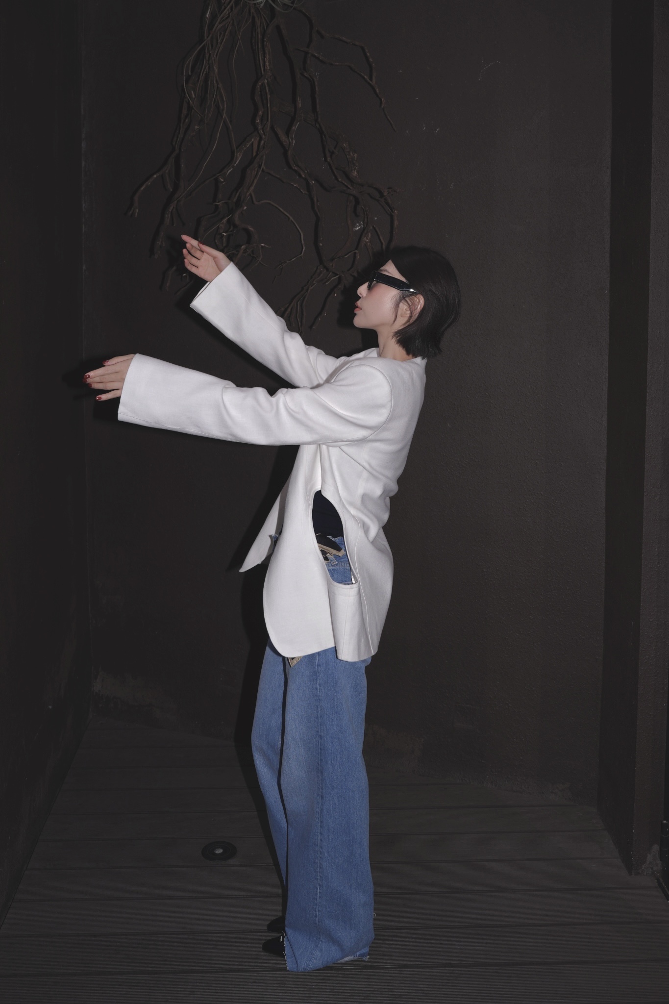 HANAA秋季新款港風復古白色西裝外套寬鬆百搭休閑V領西服上衣