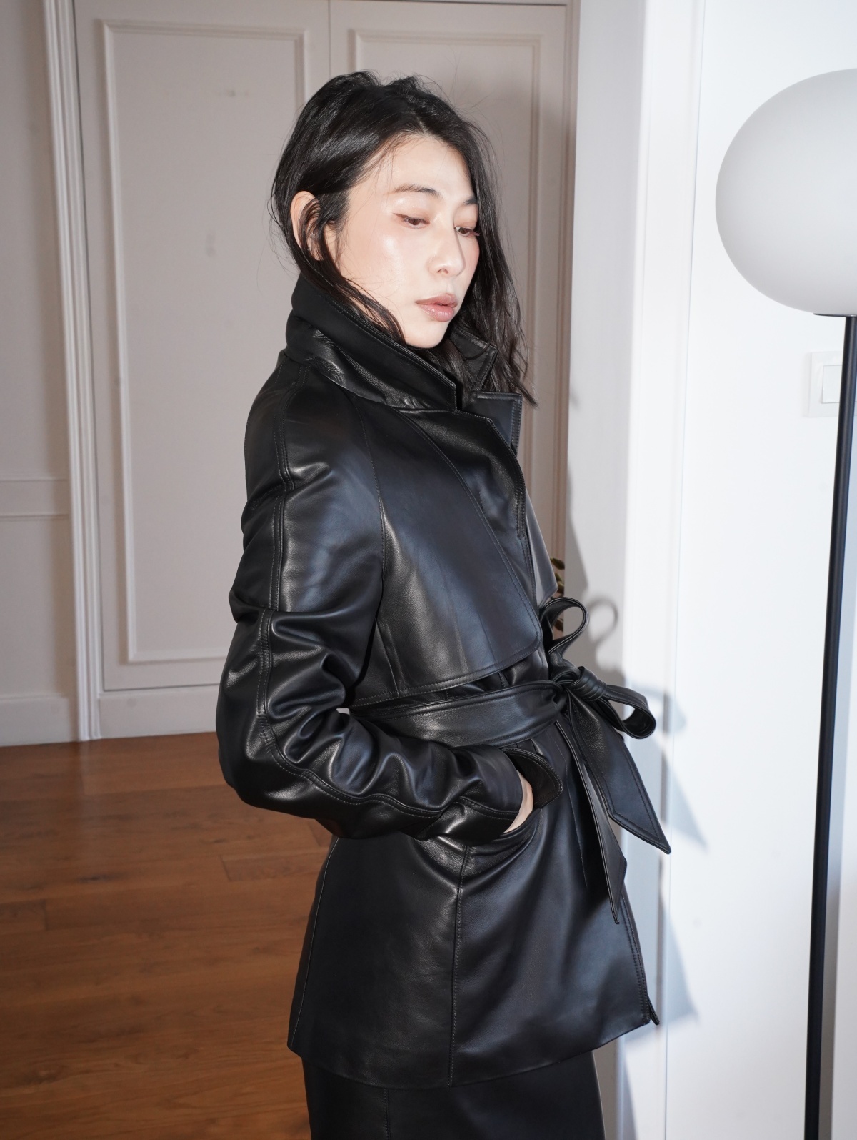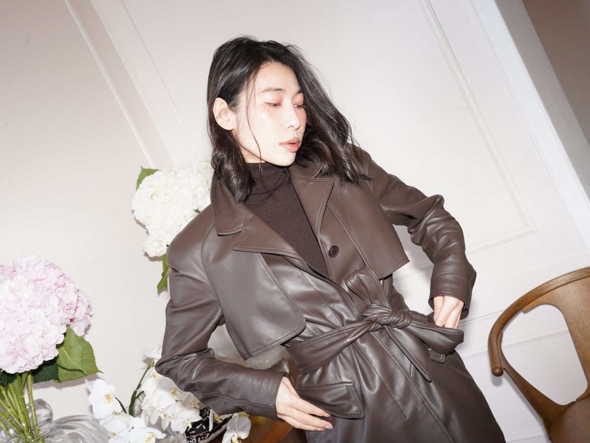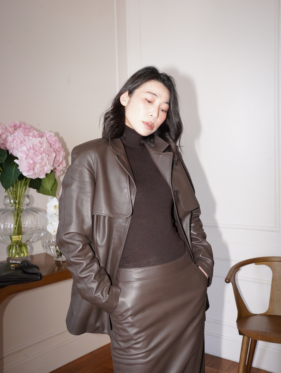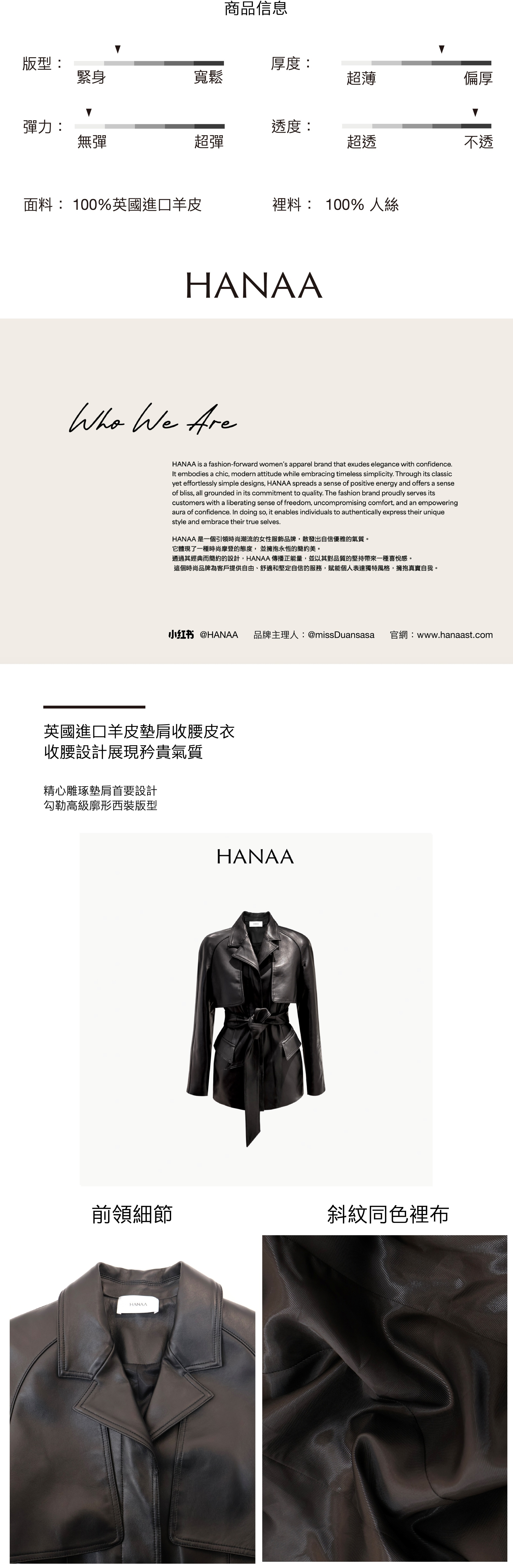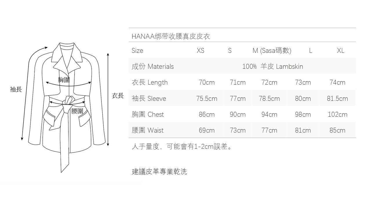 HANAA 新款英國進口高奢羊皮綁帶修腰真皮皮衣外套