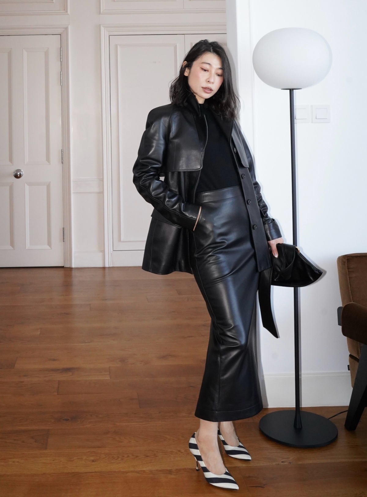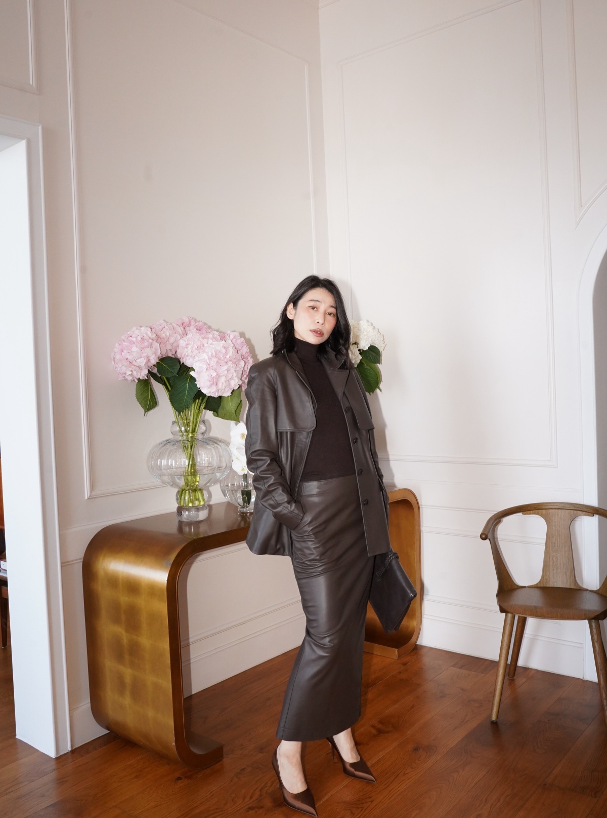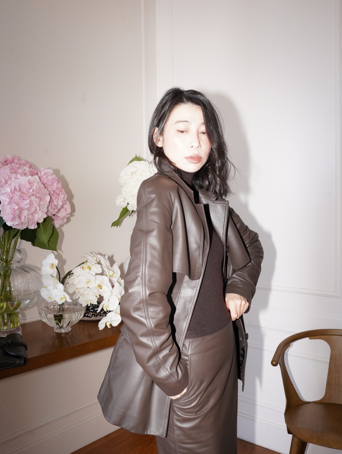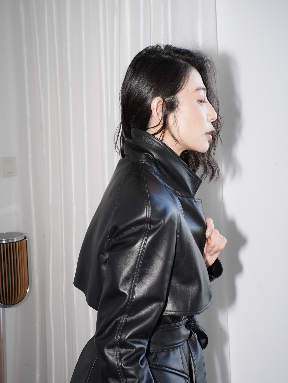 HANAA 新款英國進口高奢羊皮綁帶修腰真皮皮衣外套