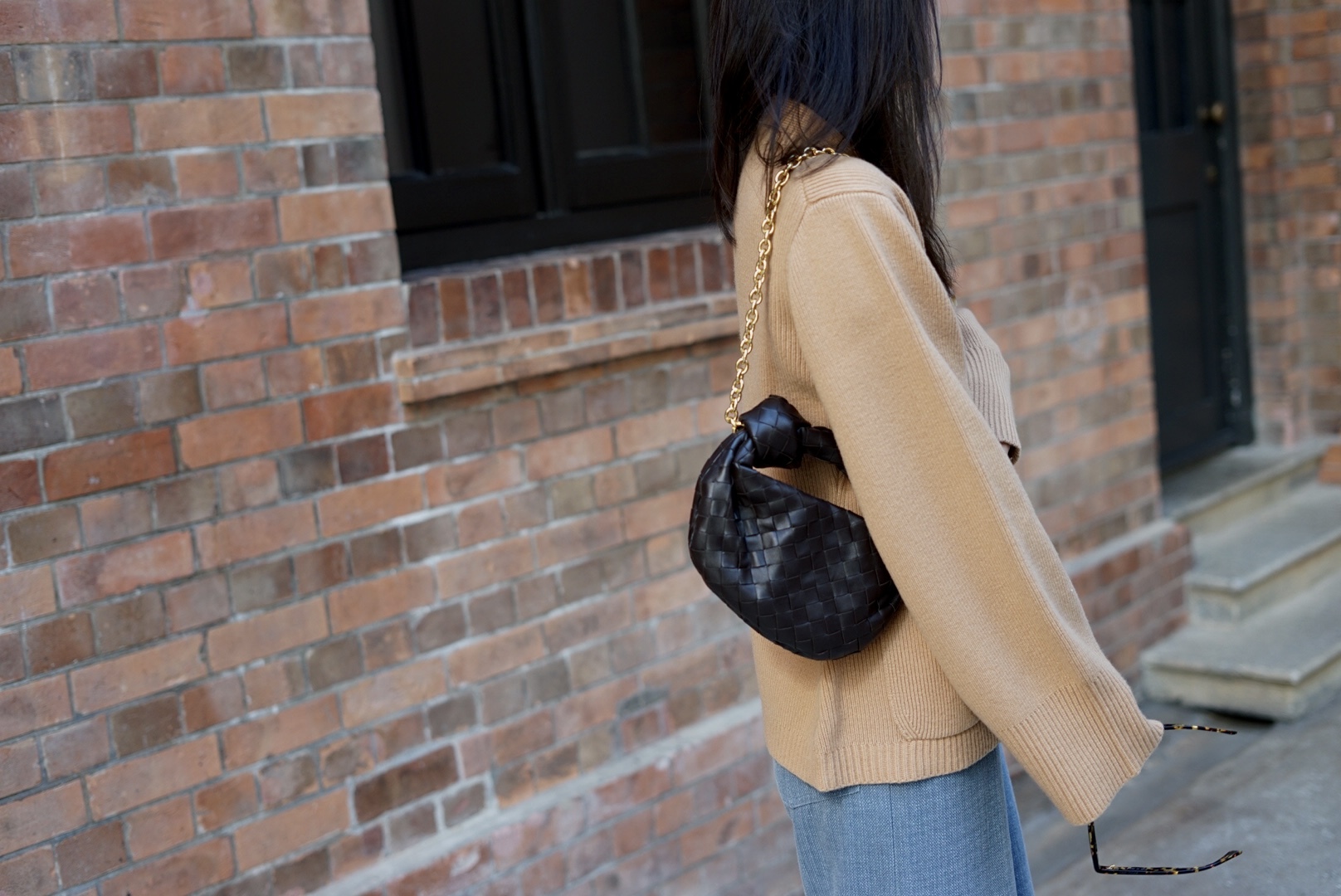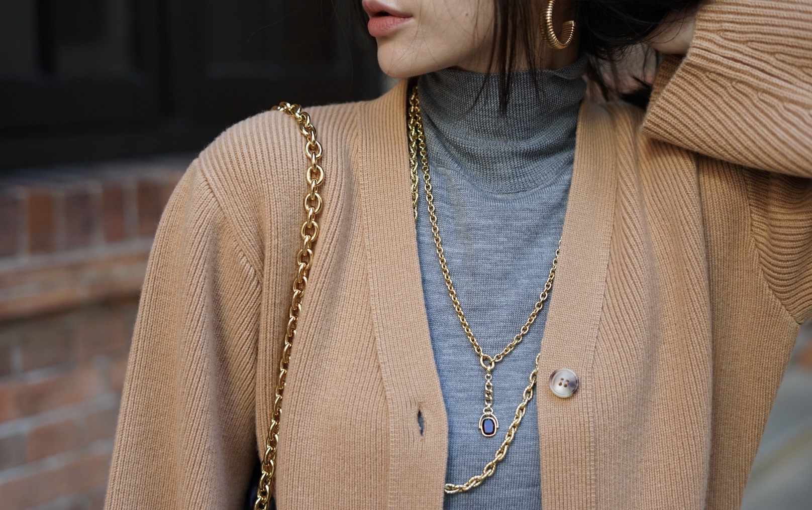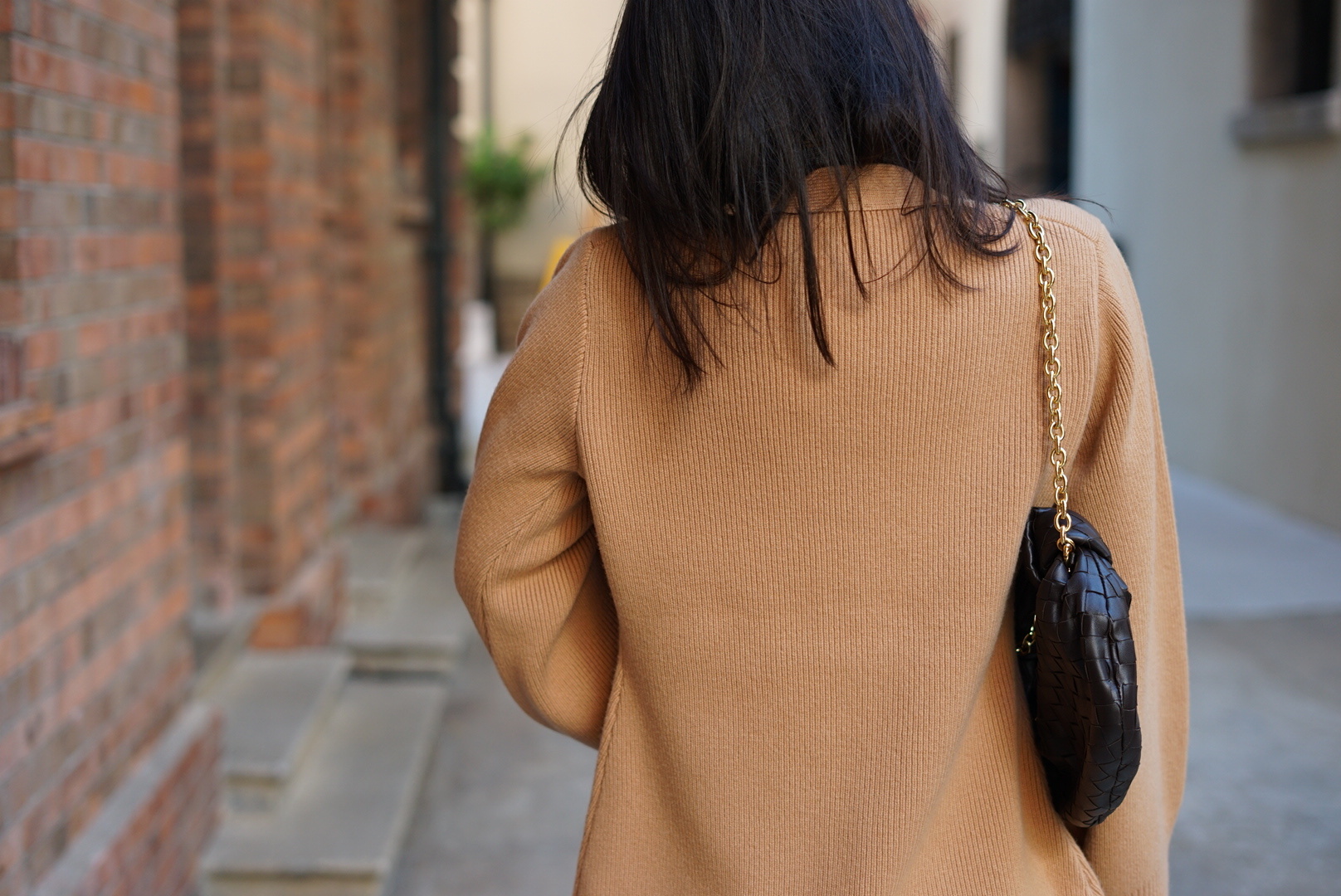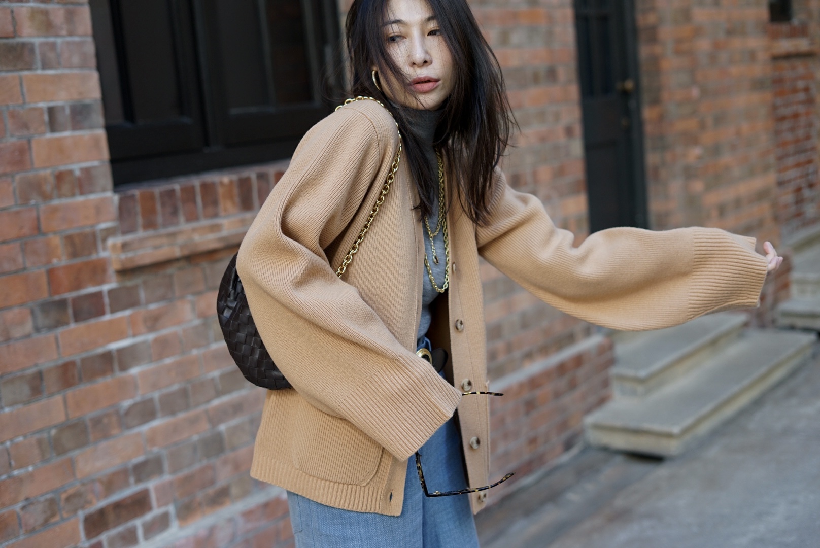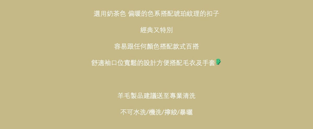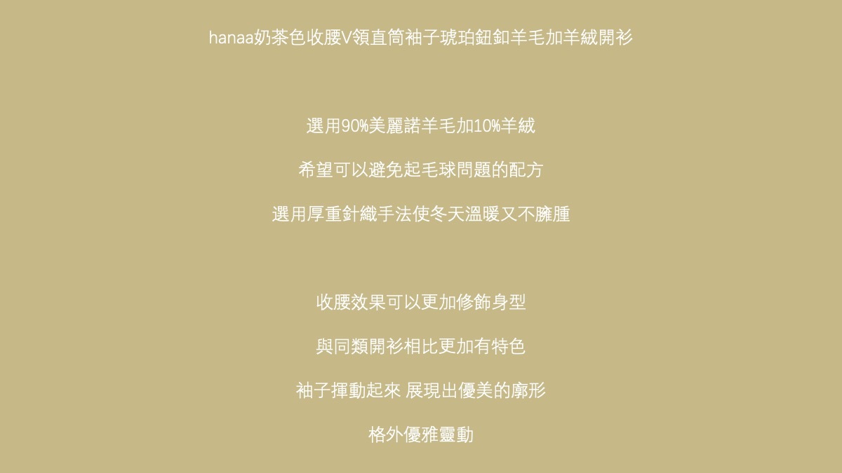 HANAA奶茶色收腰前開口直桶袖子琥珀鈕釦羊毛加羊絨開衫