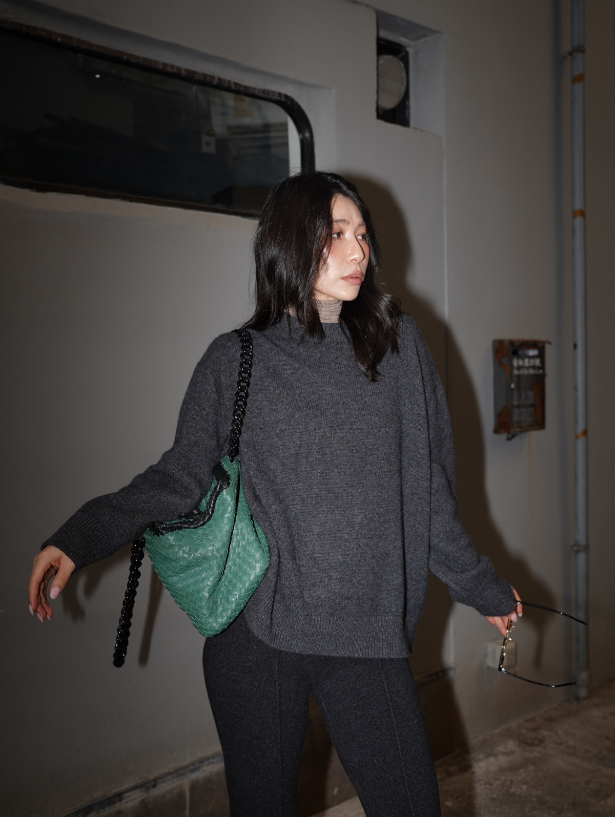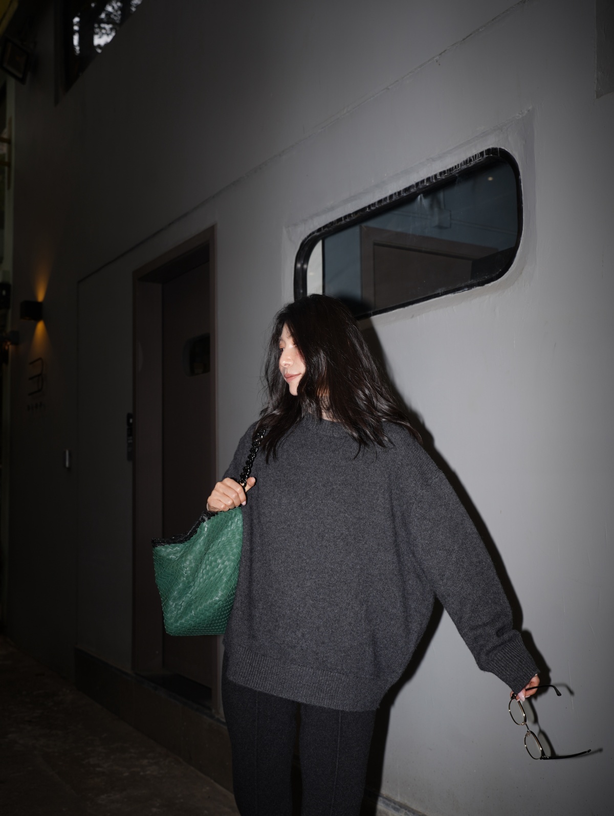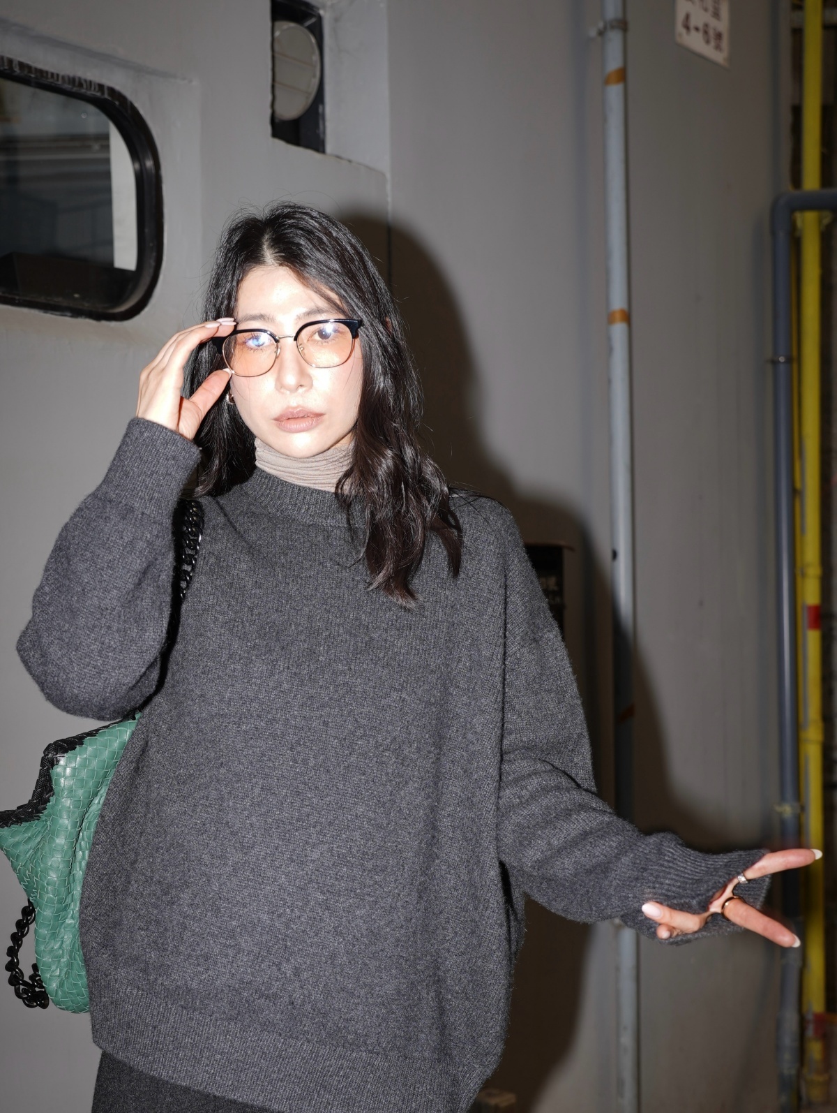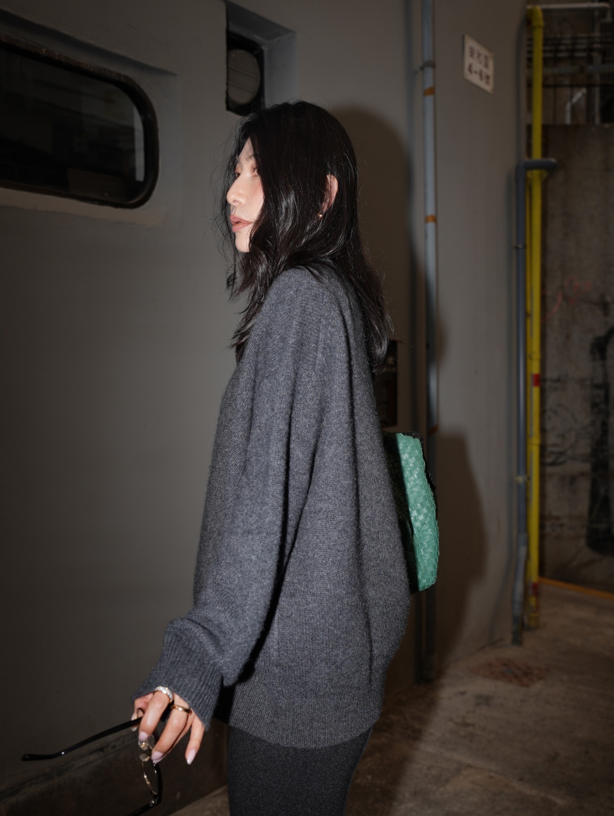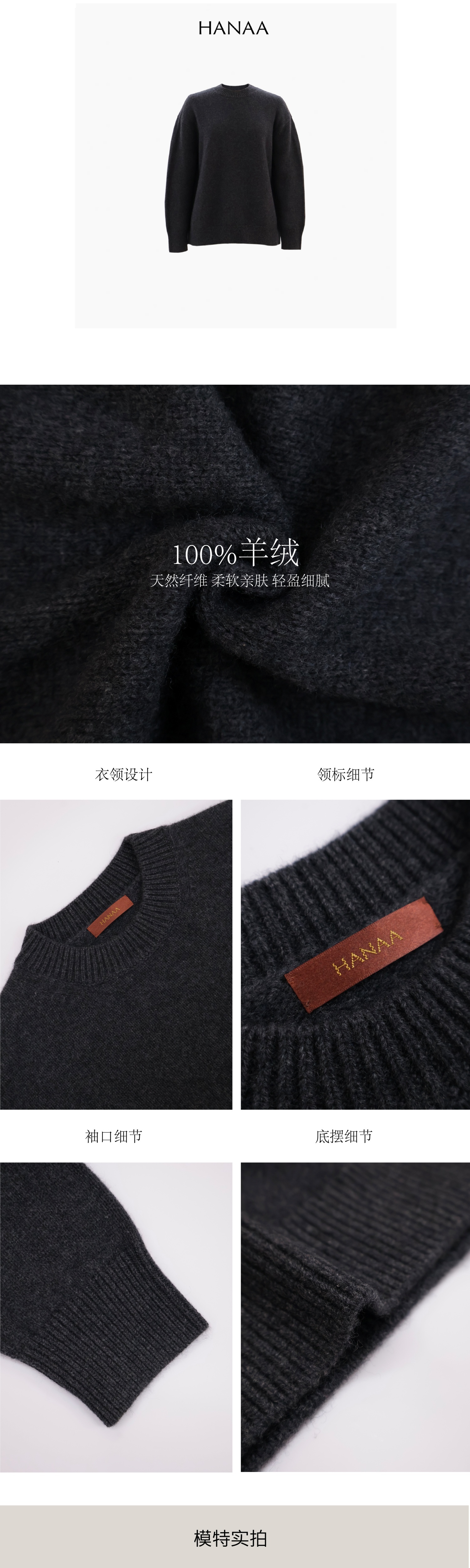 HANAA 新款康賽妮羊絨灰色圓領廓形毛衣