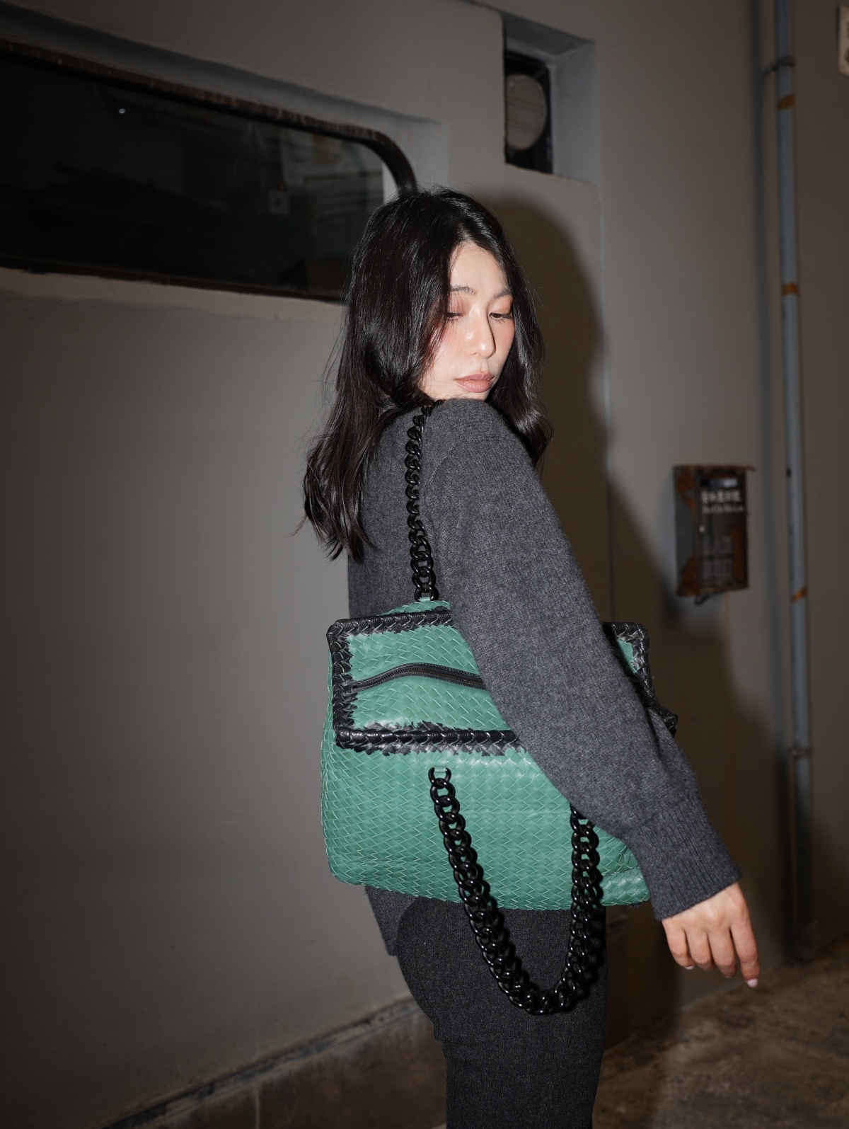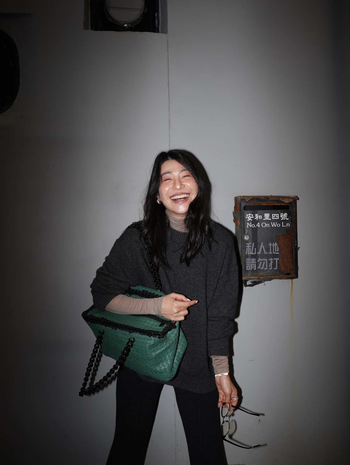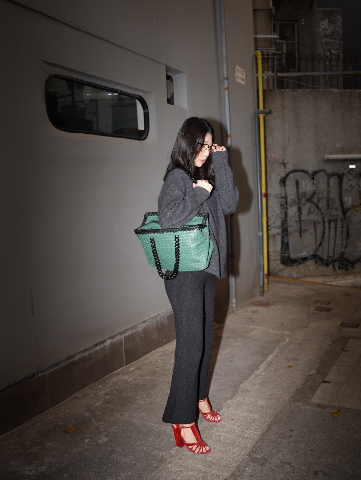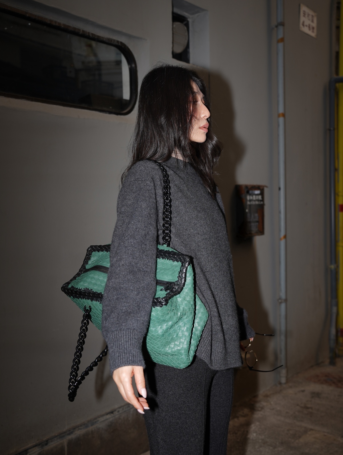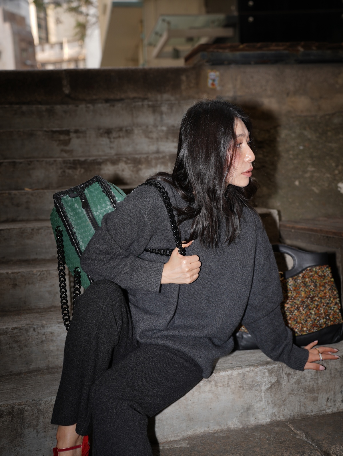 HANAA 新款康賽妮羊絨灰色圓領廓形毛衣
