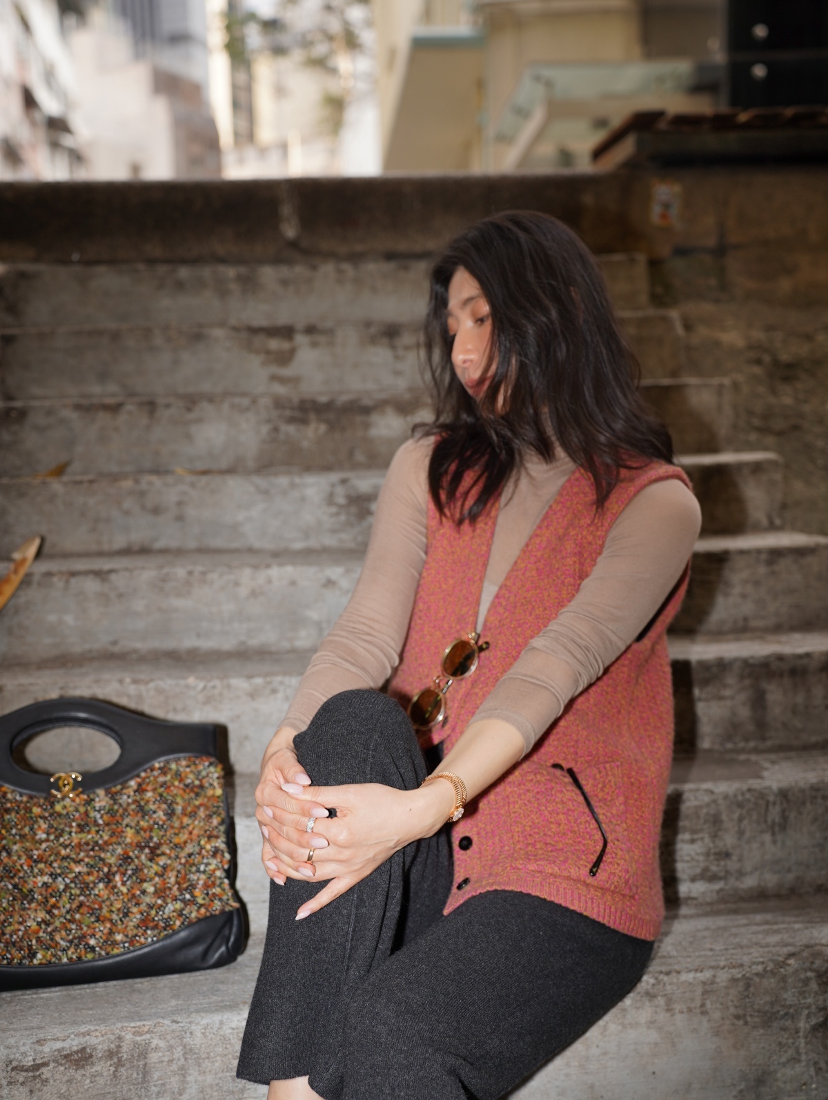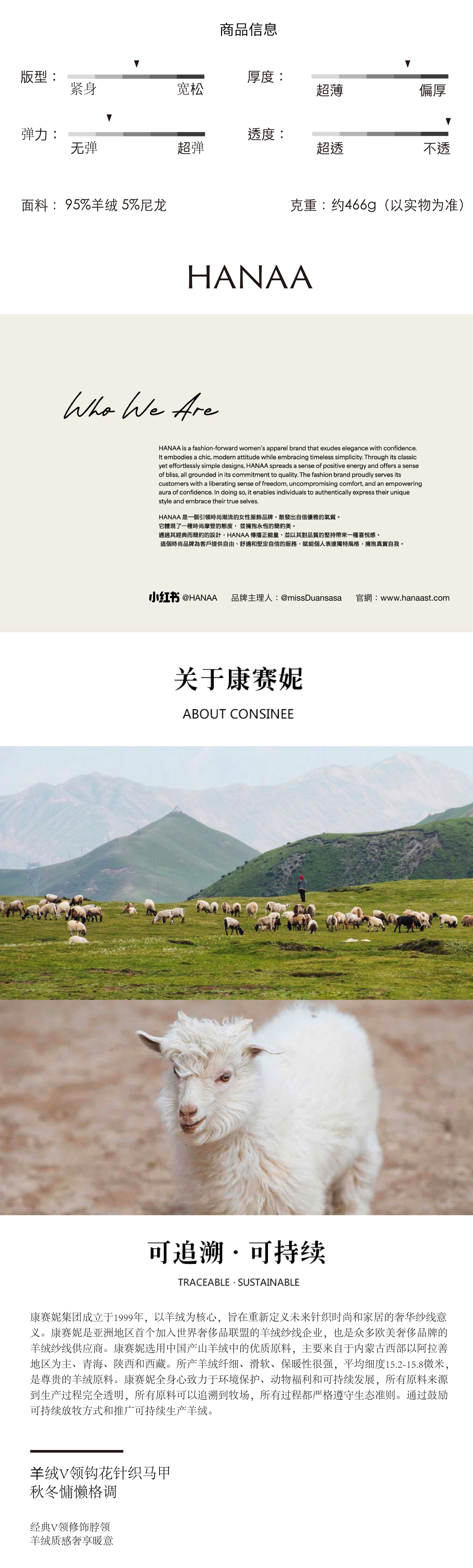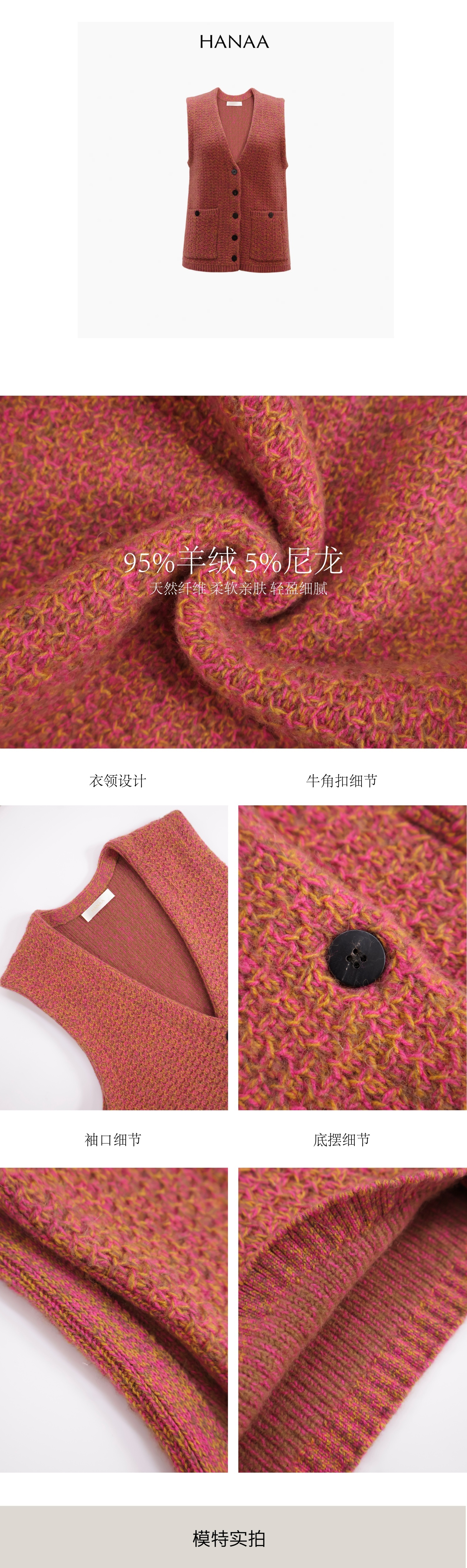 HANAA 新款康賽妮羊絨混紡重工雙面織V領鉤花針馬甲