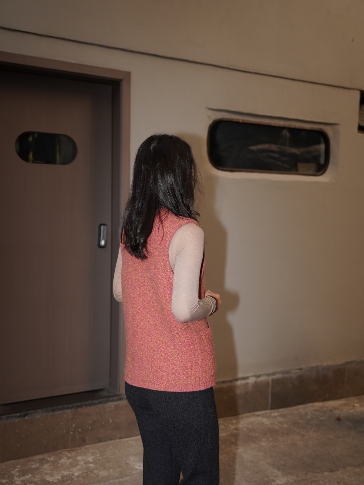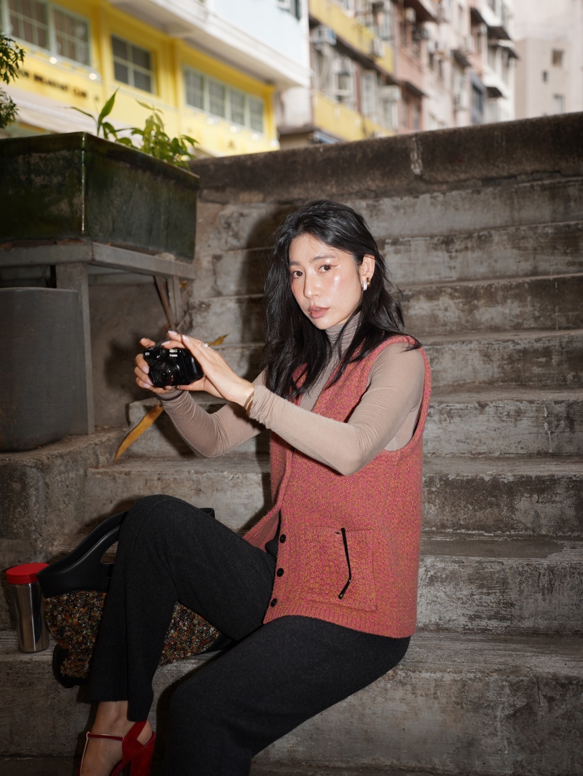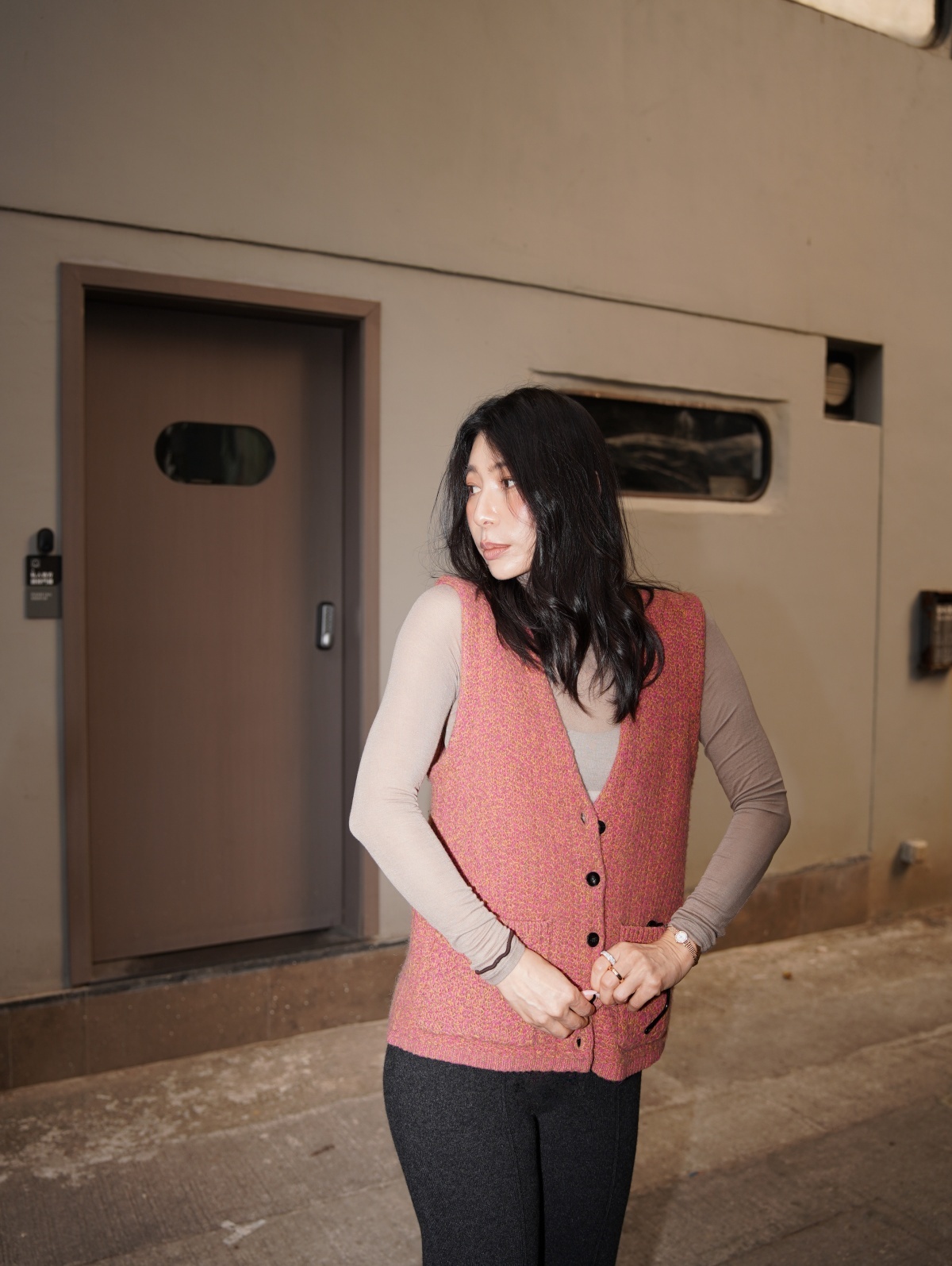 HANAA 新款康賽妮羊絨混紡重工雙面織V領鉤花針馬甲
