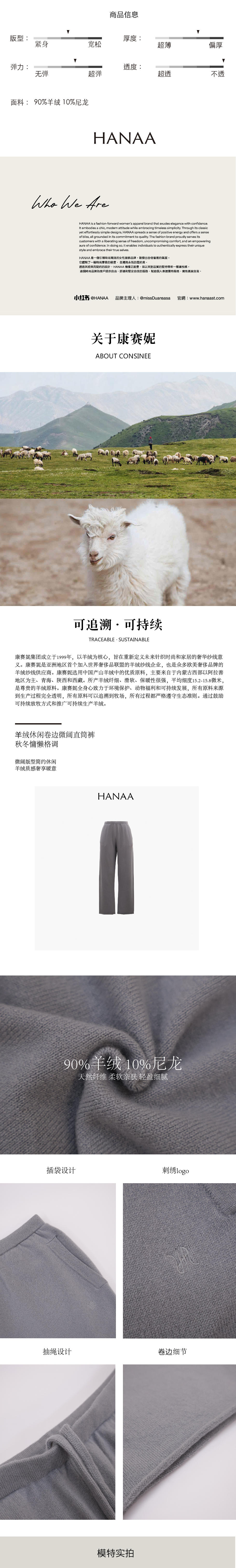 【預售】HANAA 新款康賽妮羊絨卷邊微寬直筒褲 (11月28日前發)
