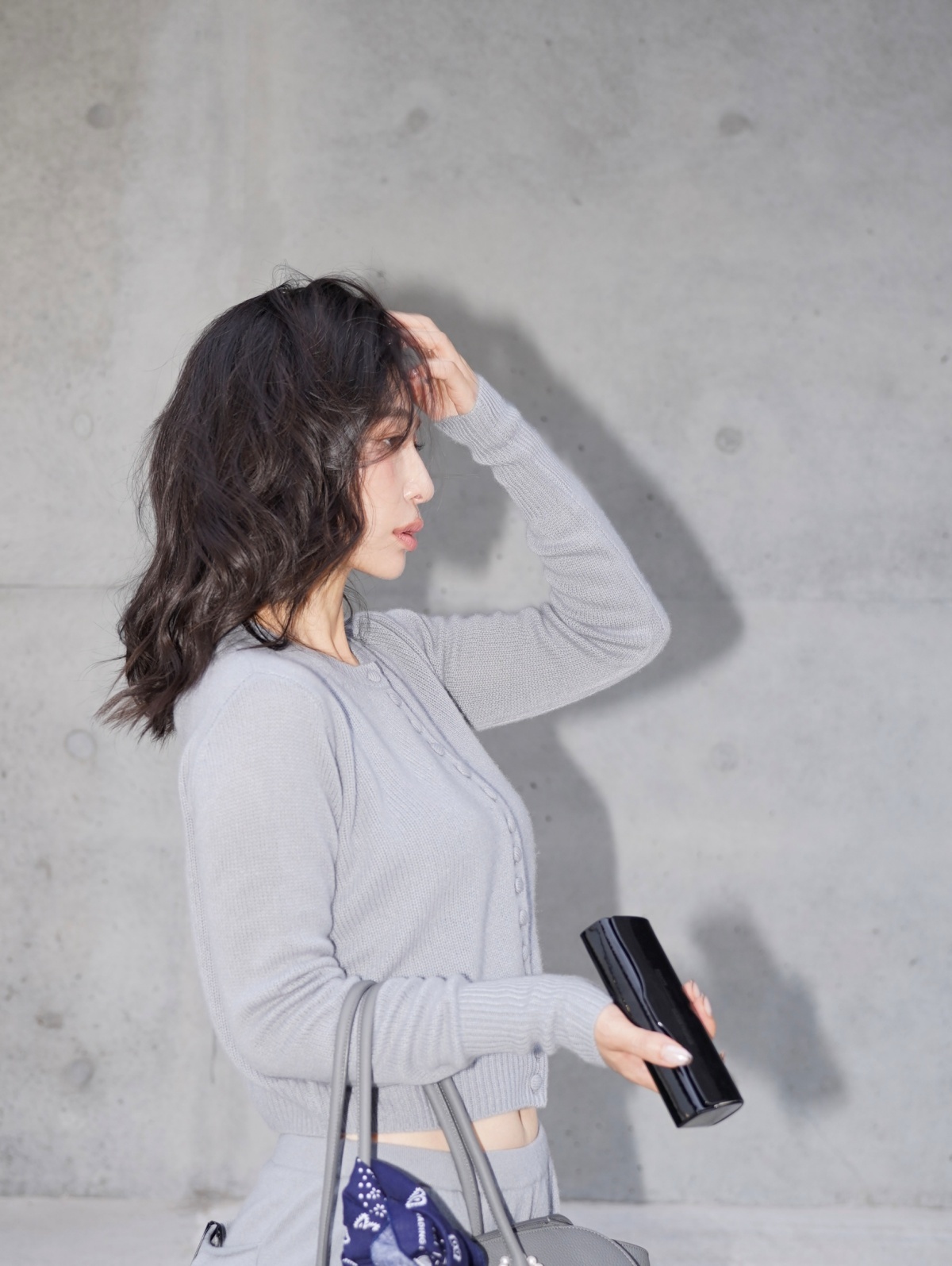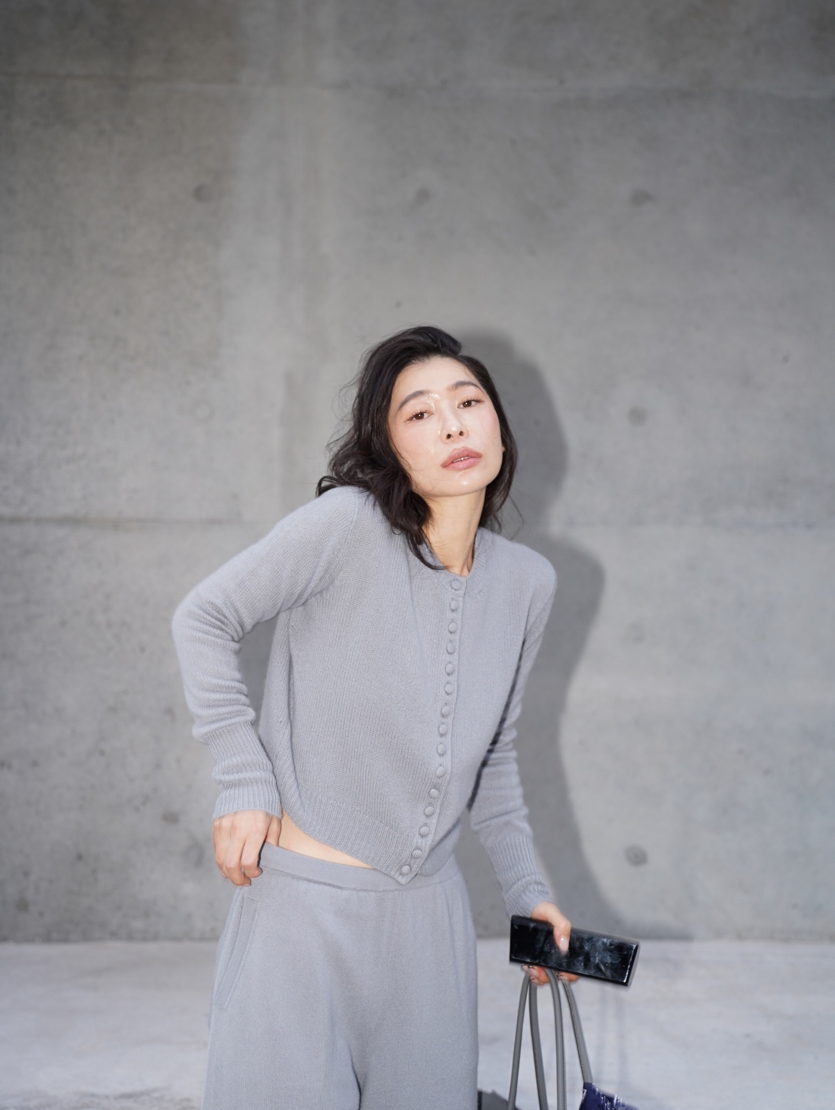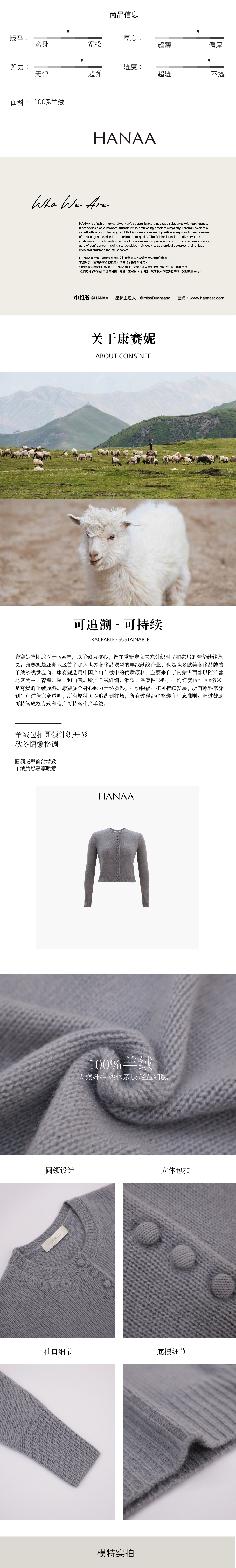 HANAA 新款康賽妮純羊絨包扣圓領針織開衫