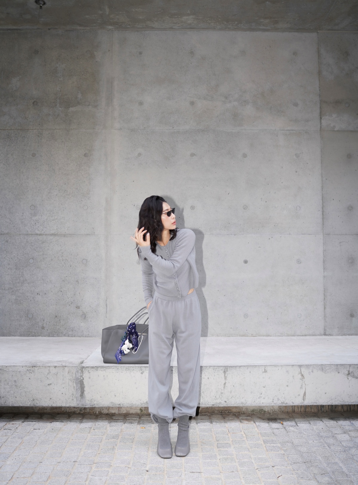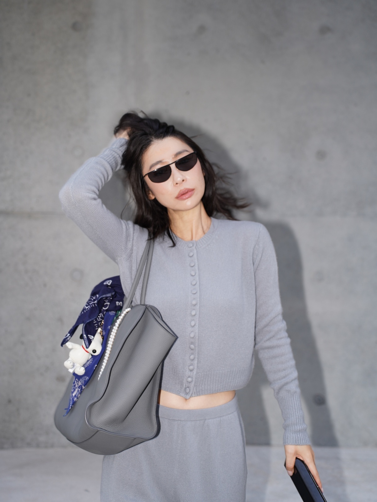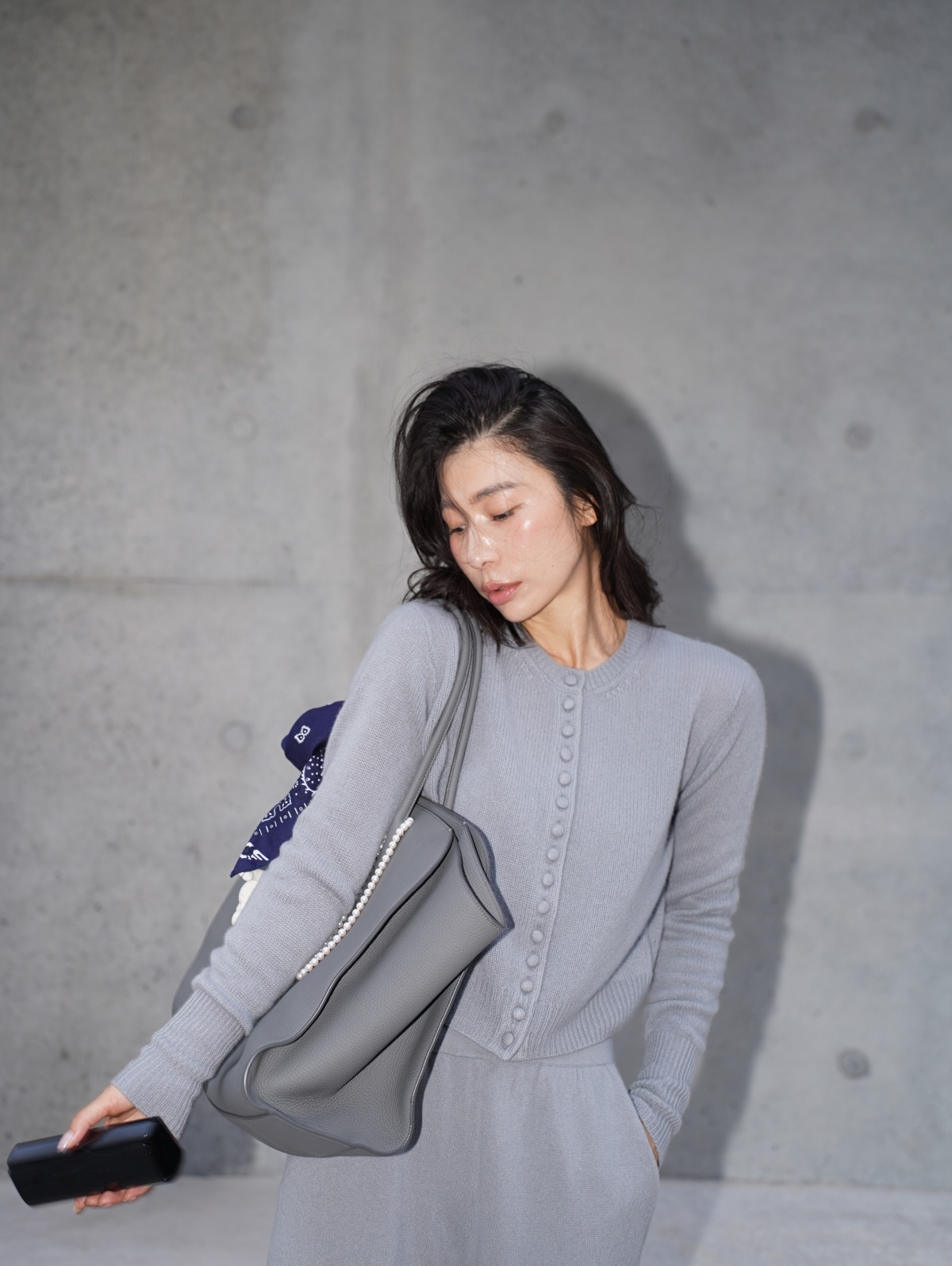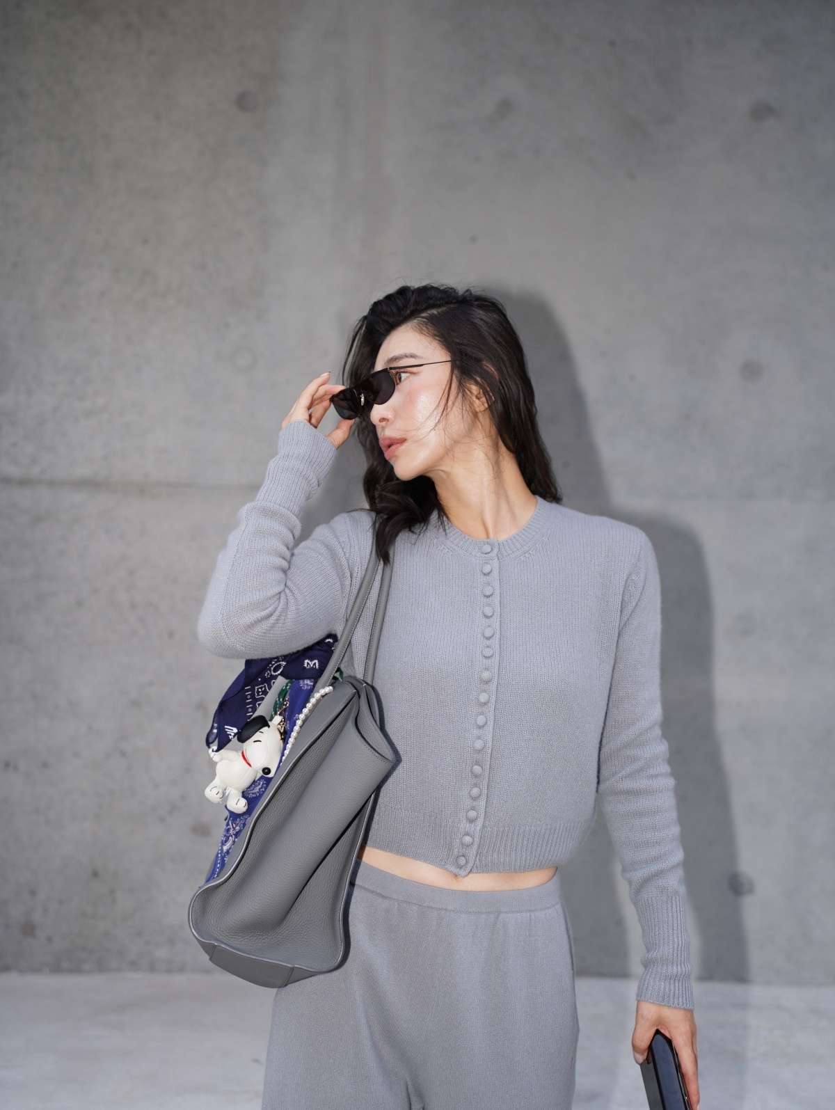 HANAA 新款康賽妮純羊絨包扣圓領針織開衫