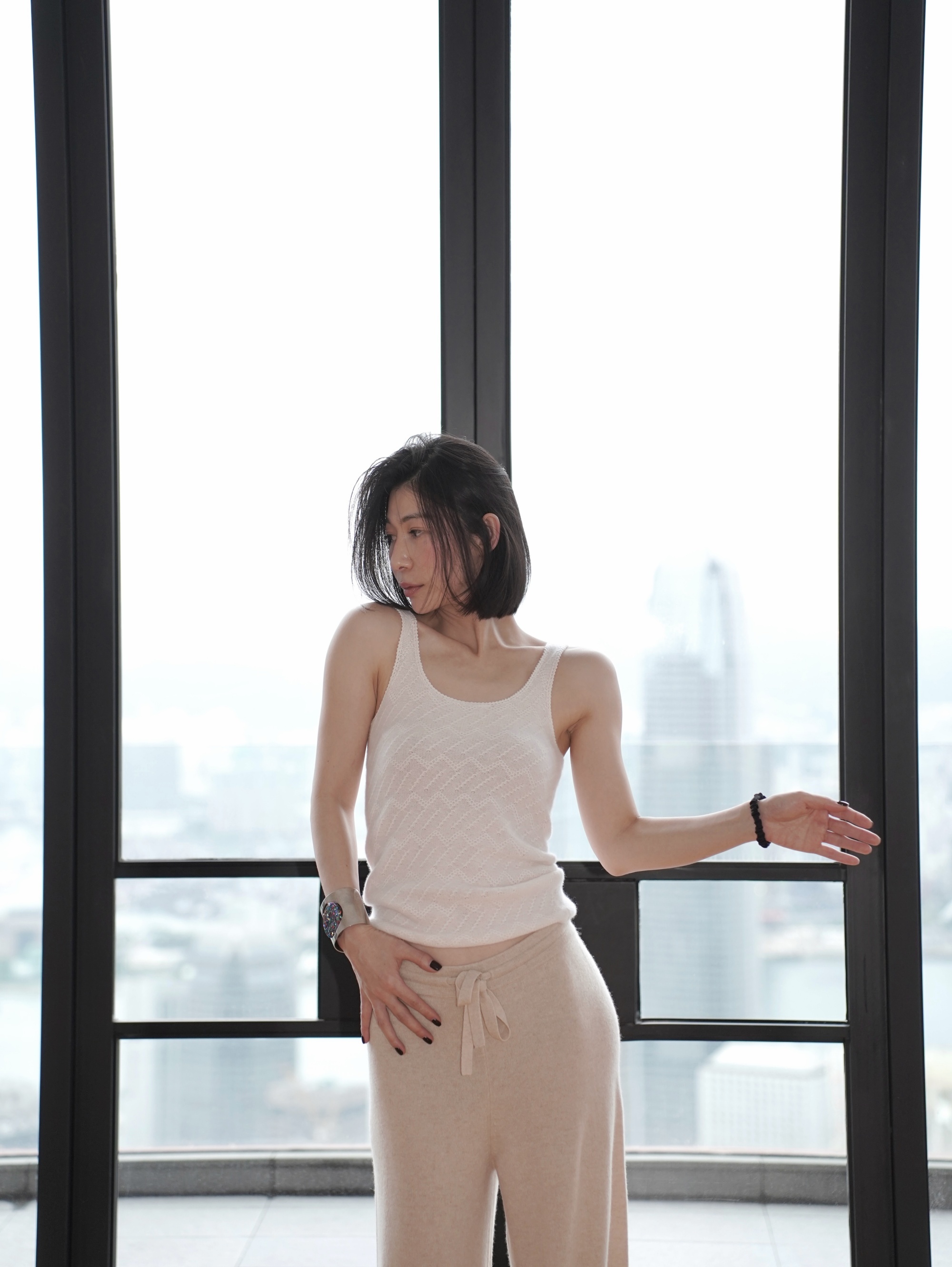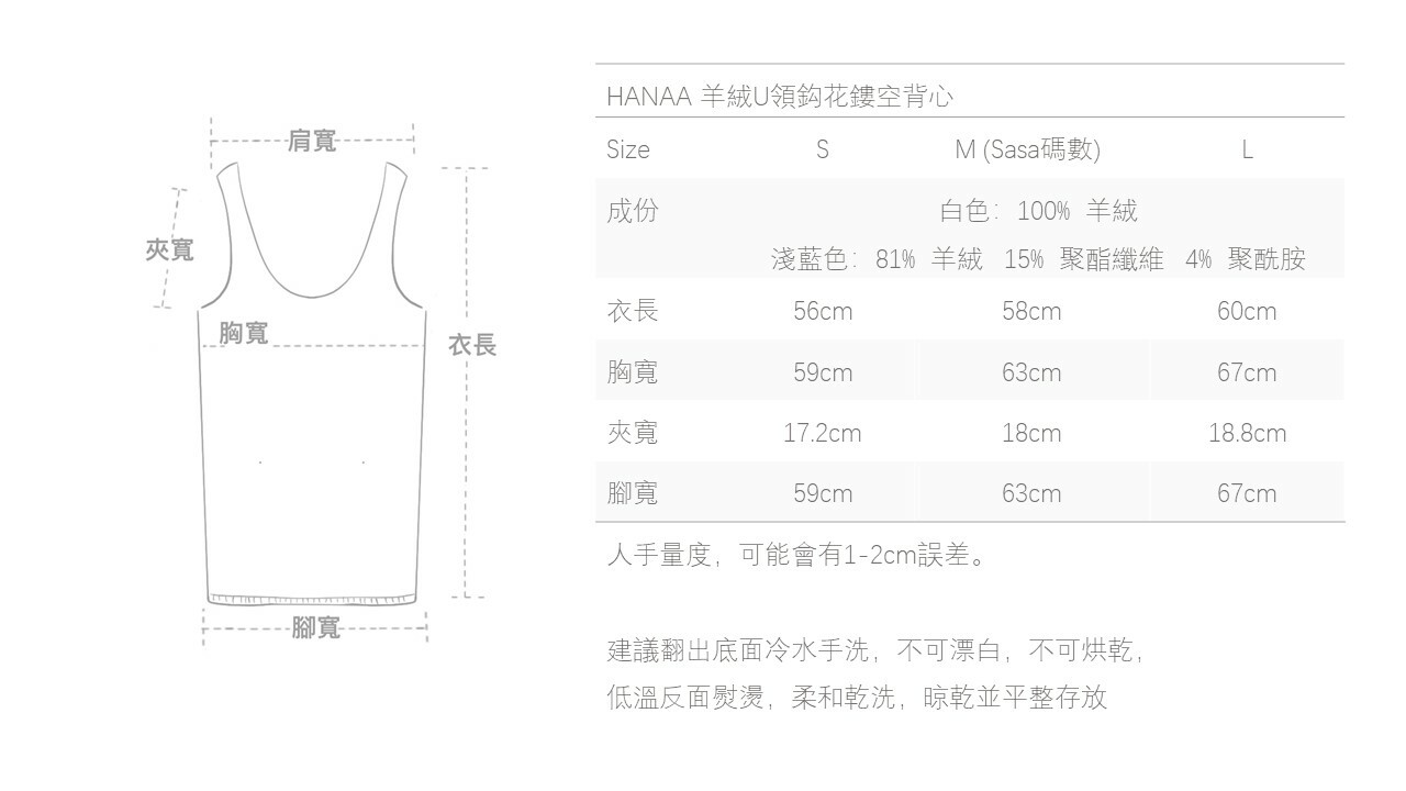 HANAA新款康賽妮羊絨U領鈎花鏤空背心空氣感薄款修身上衣