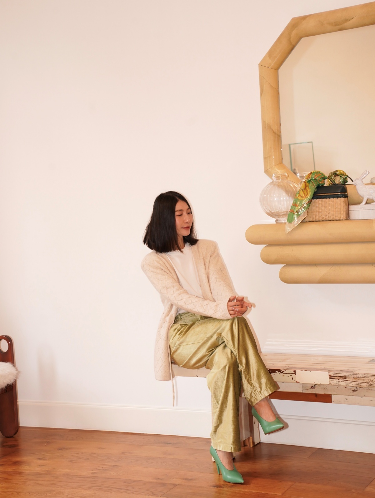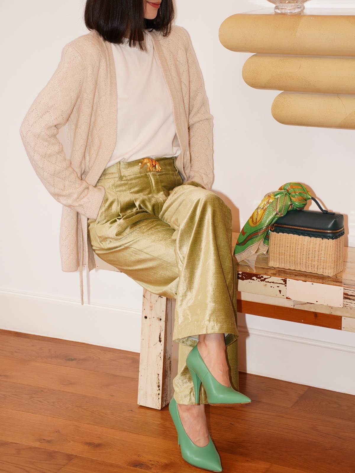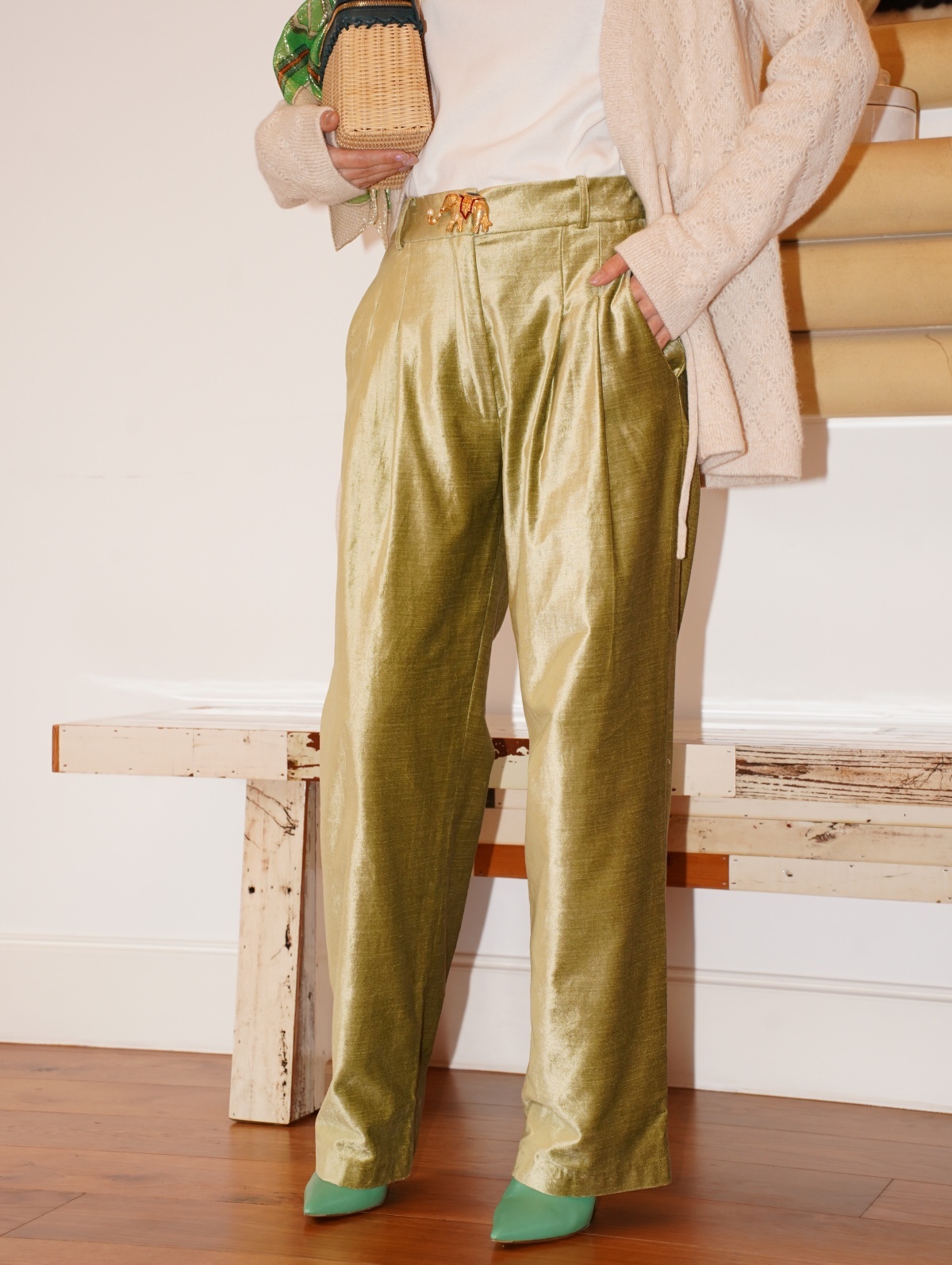 HANAA Cotton Blend Velvet Satin Gloss Pants