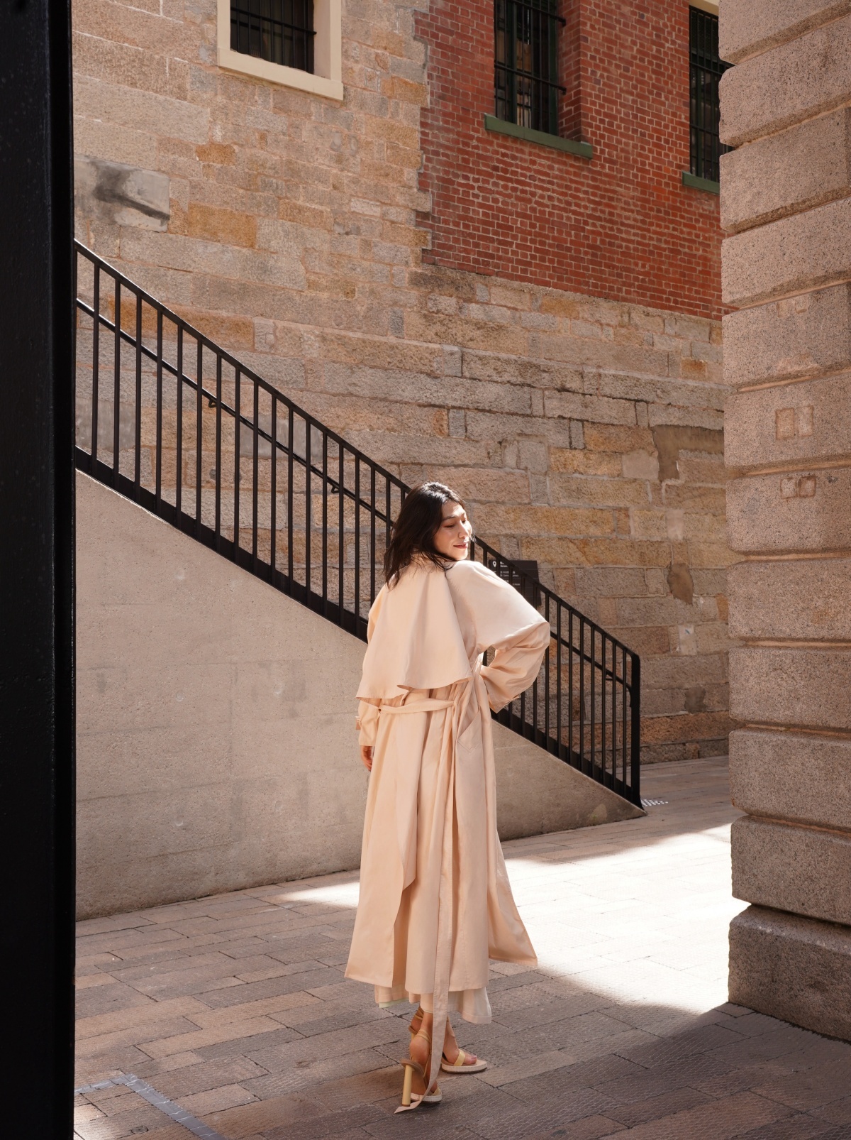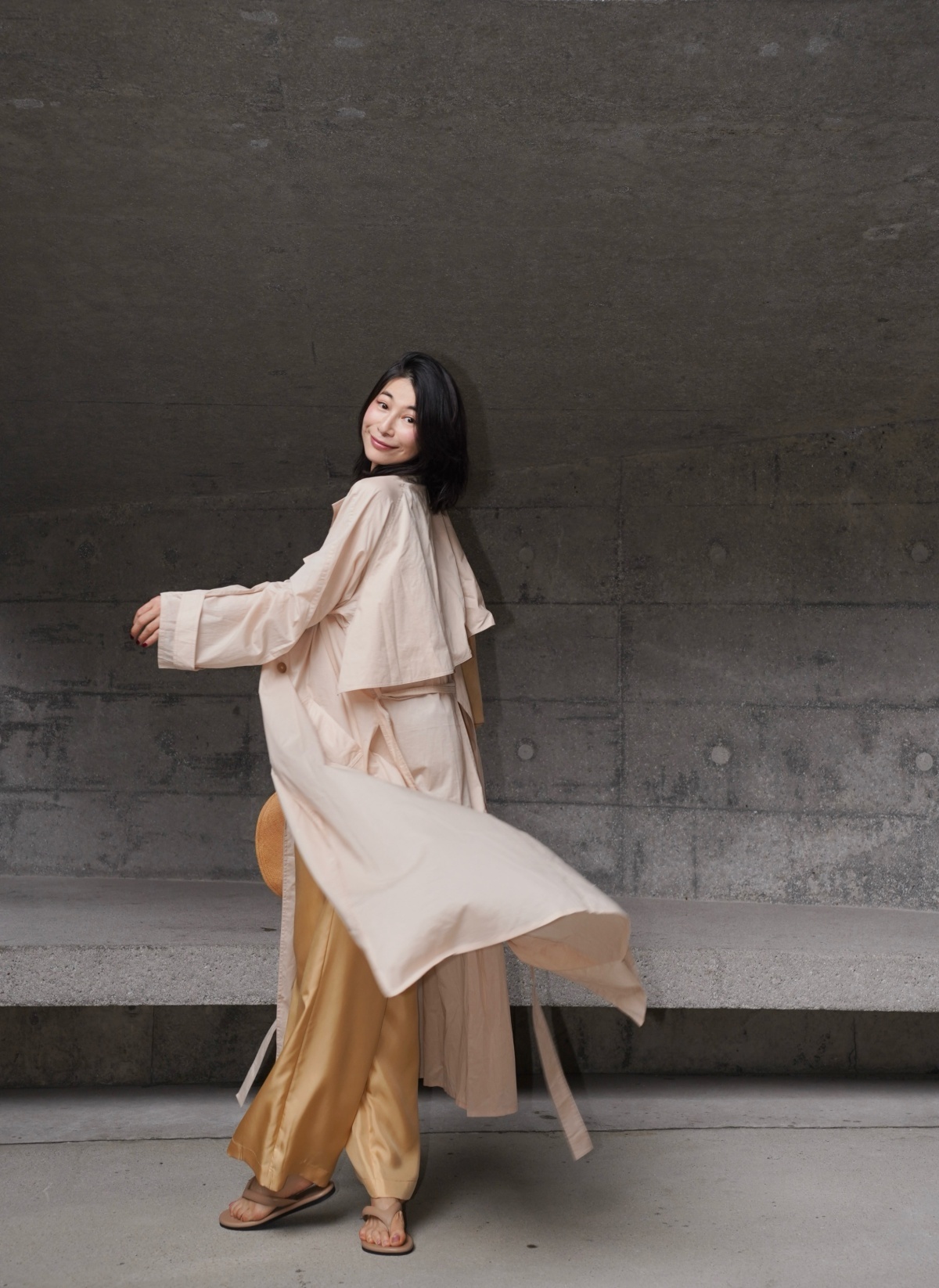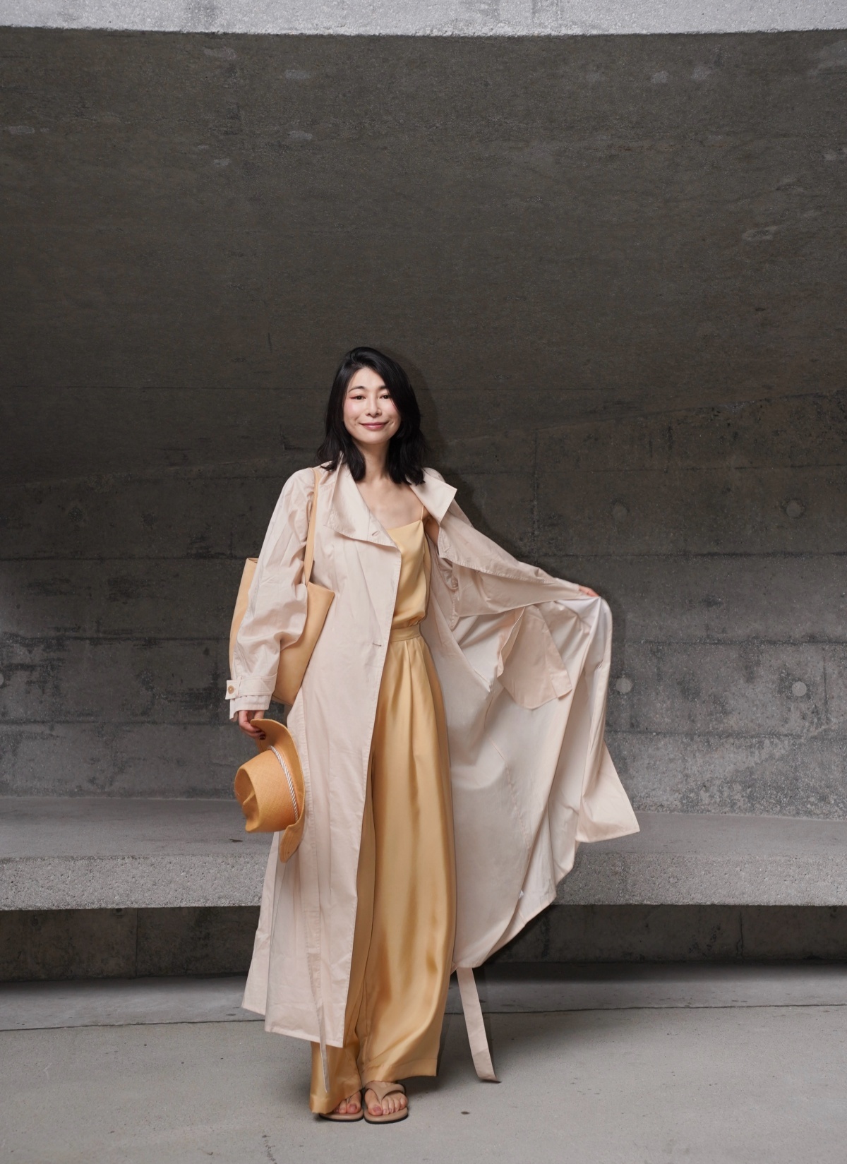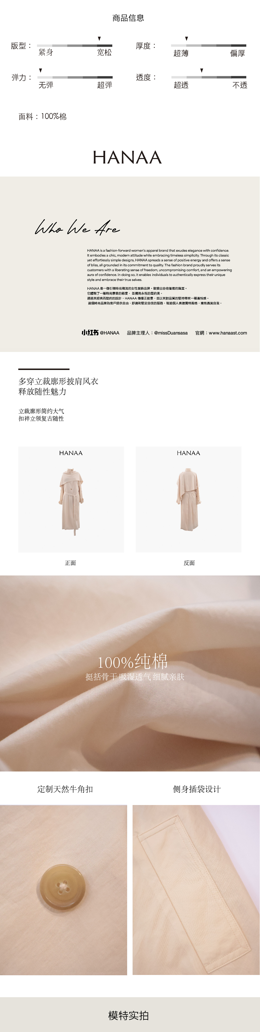 HANAA 新款純棉多穿領立裁廓形披肩長風衣