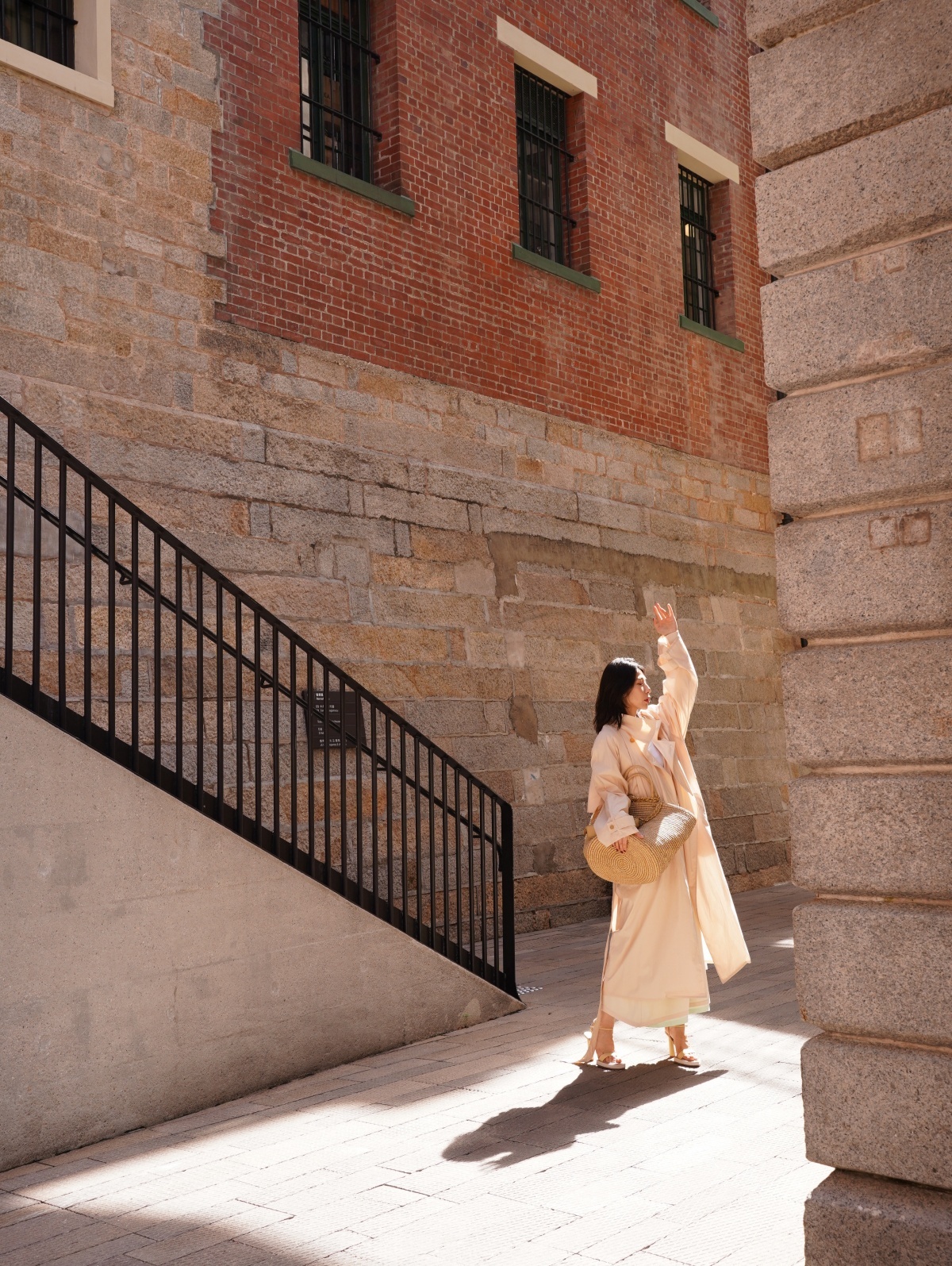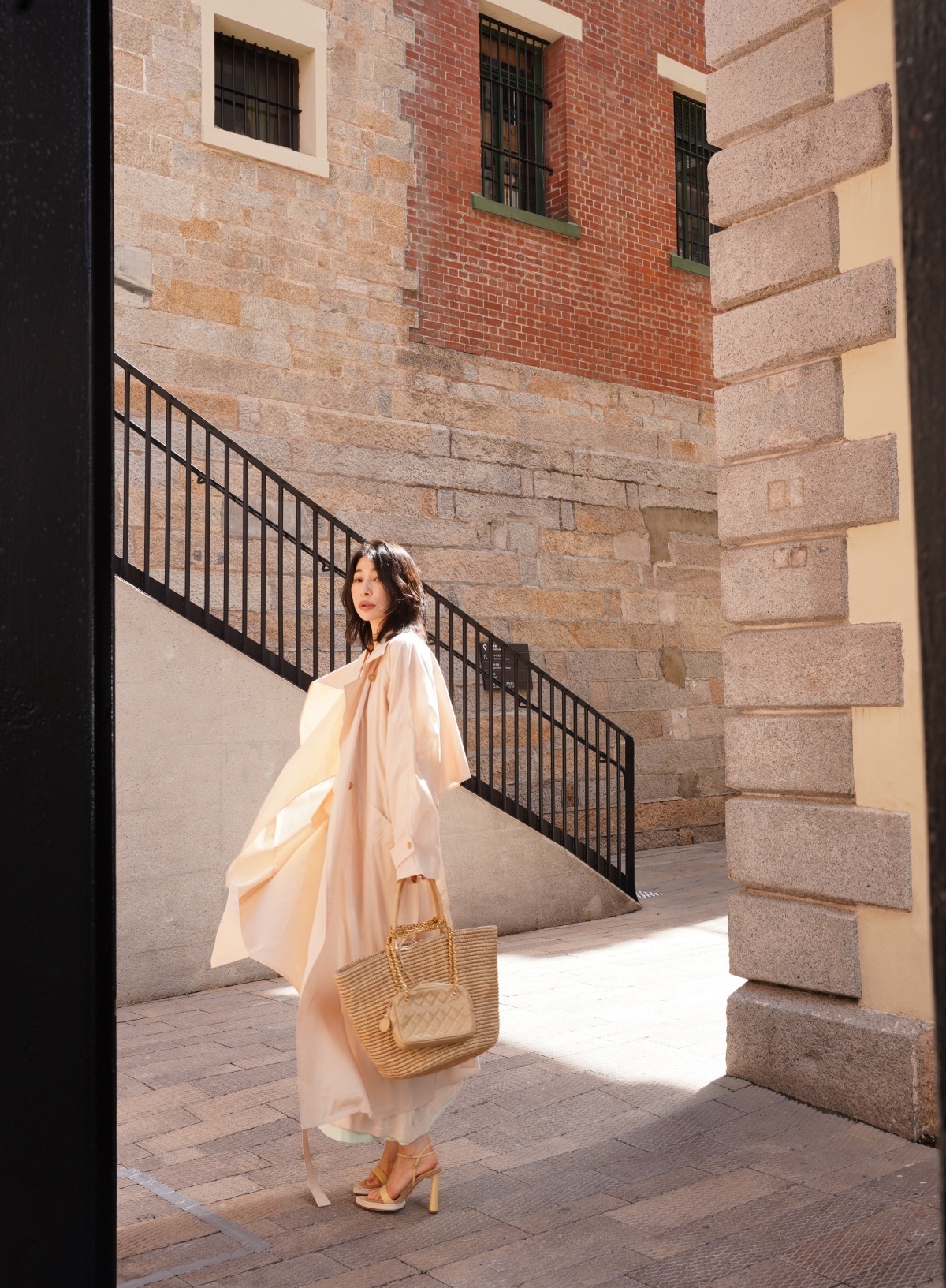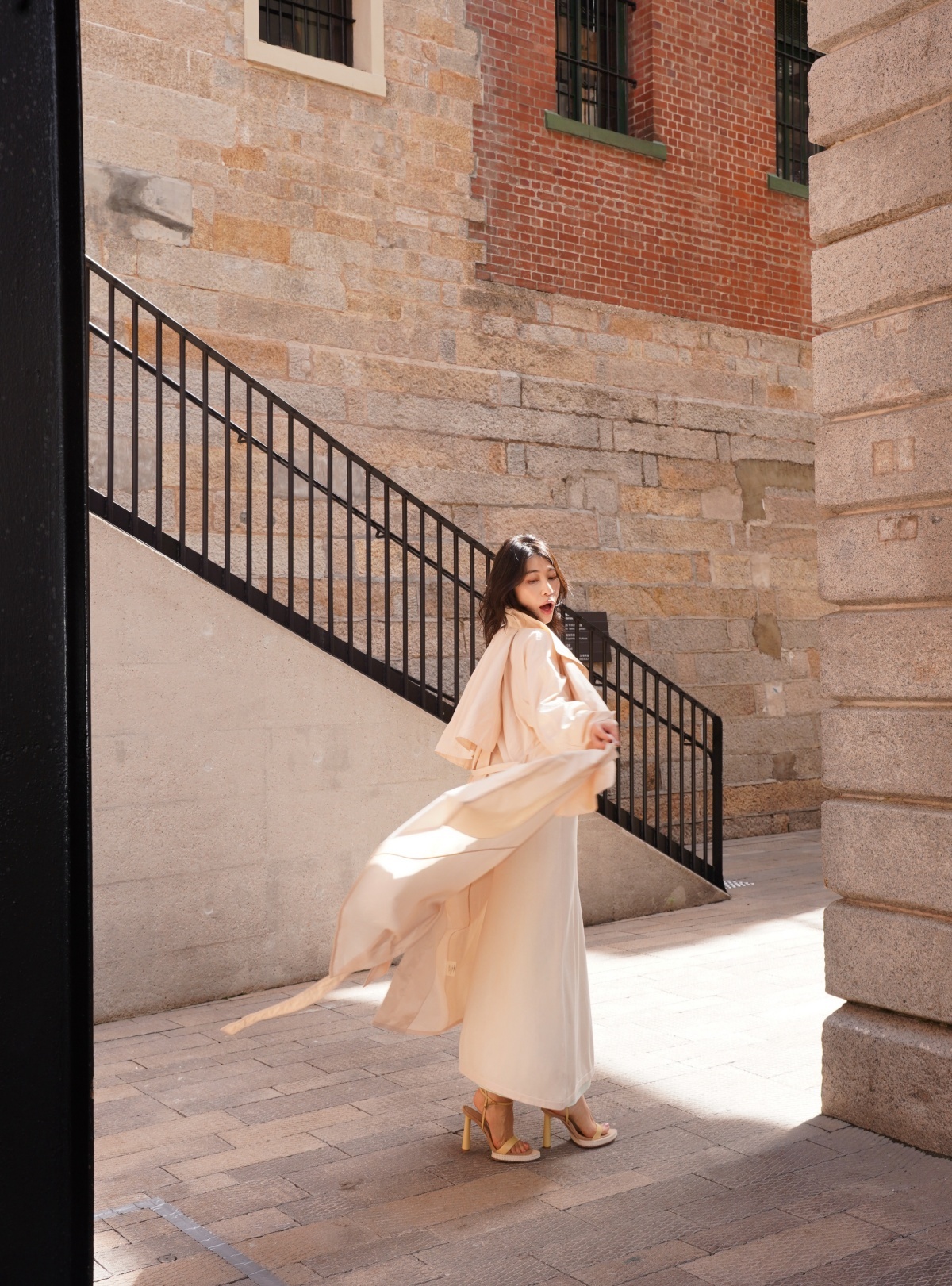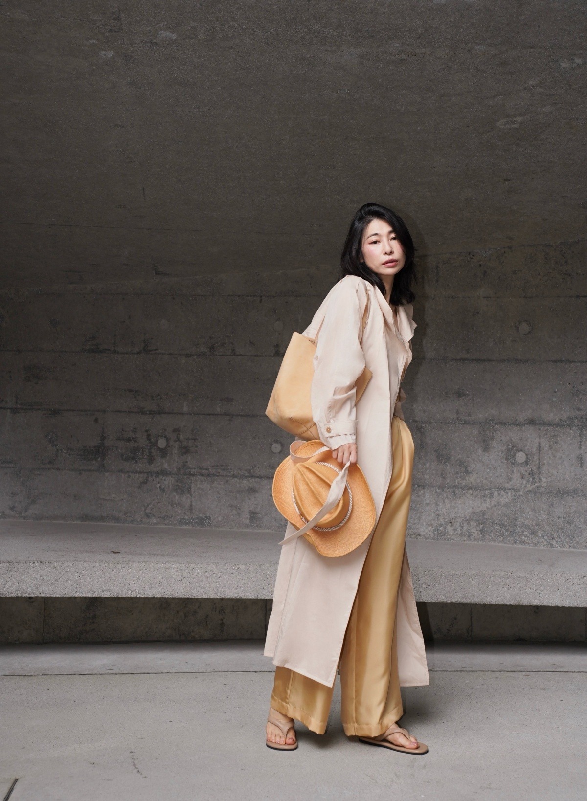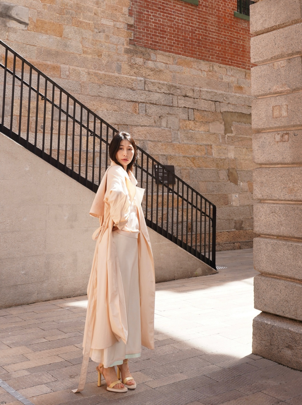 HANAA 新款純棉多穿領立裁廓形披肩長風衣