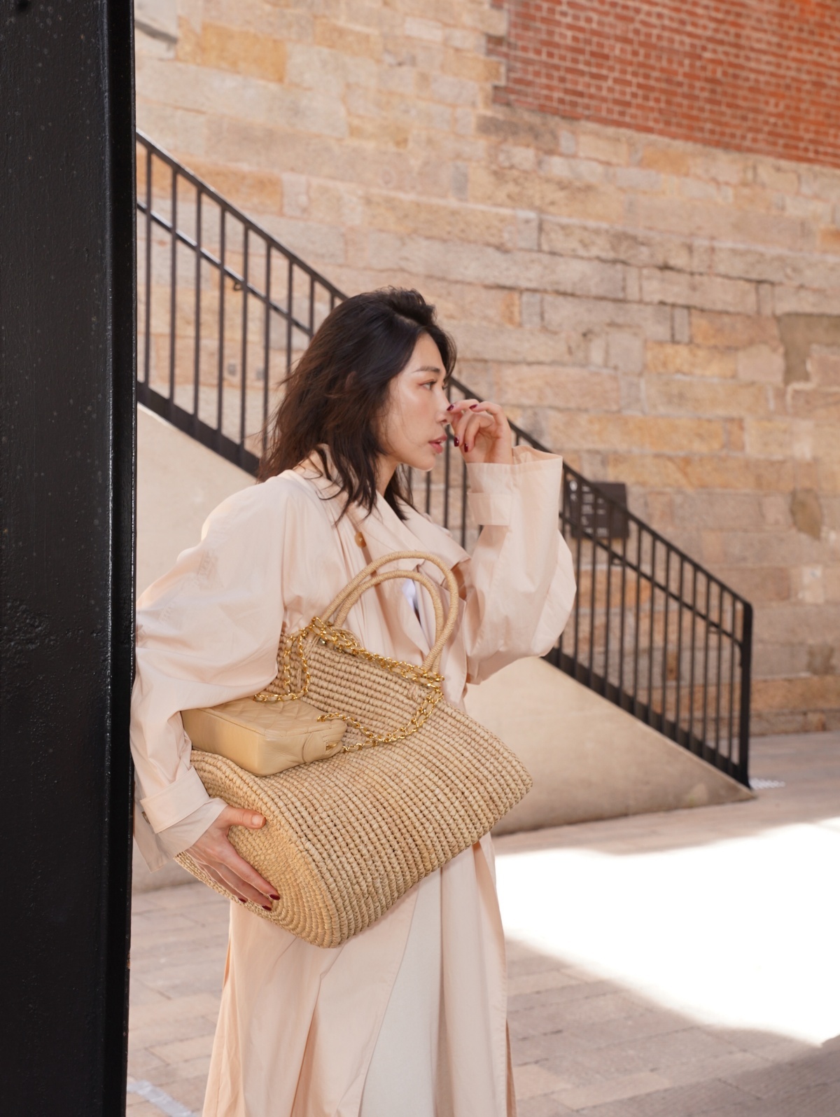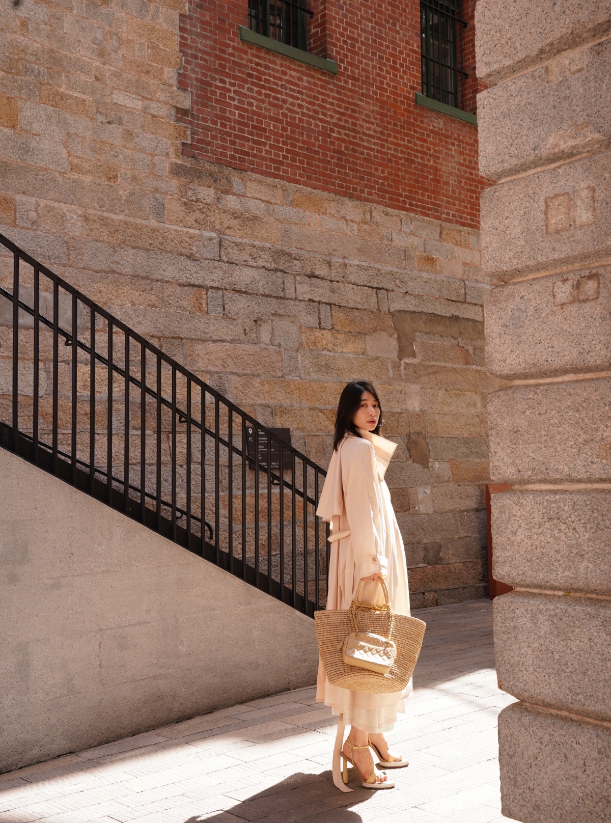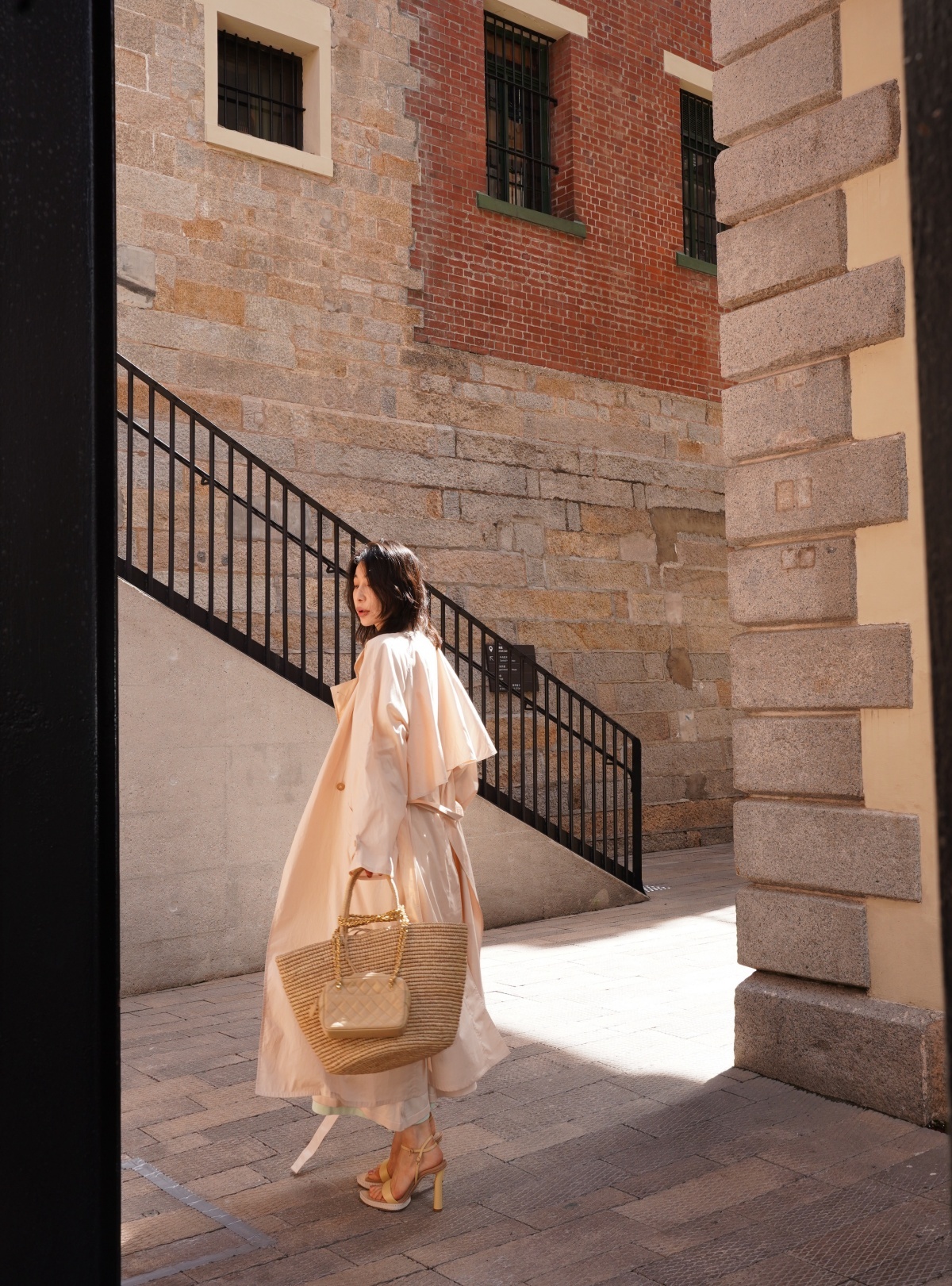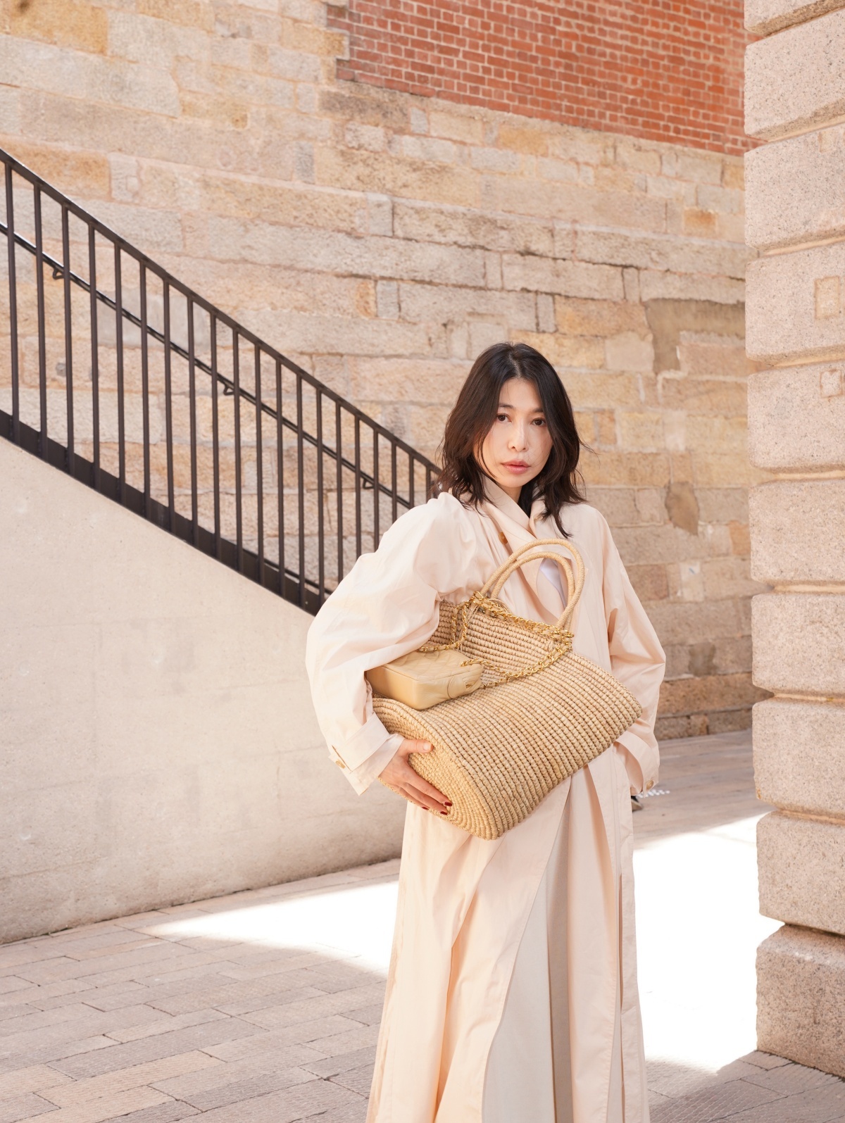 HANAA 新款純棉多穿領立裁廓形披肩長風衣