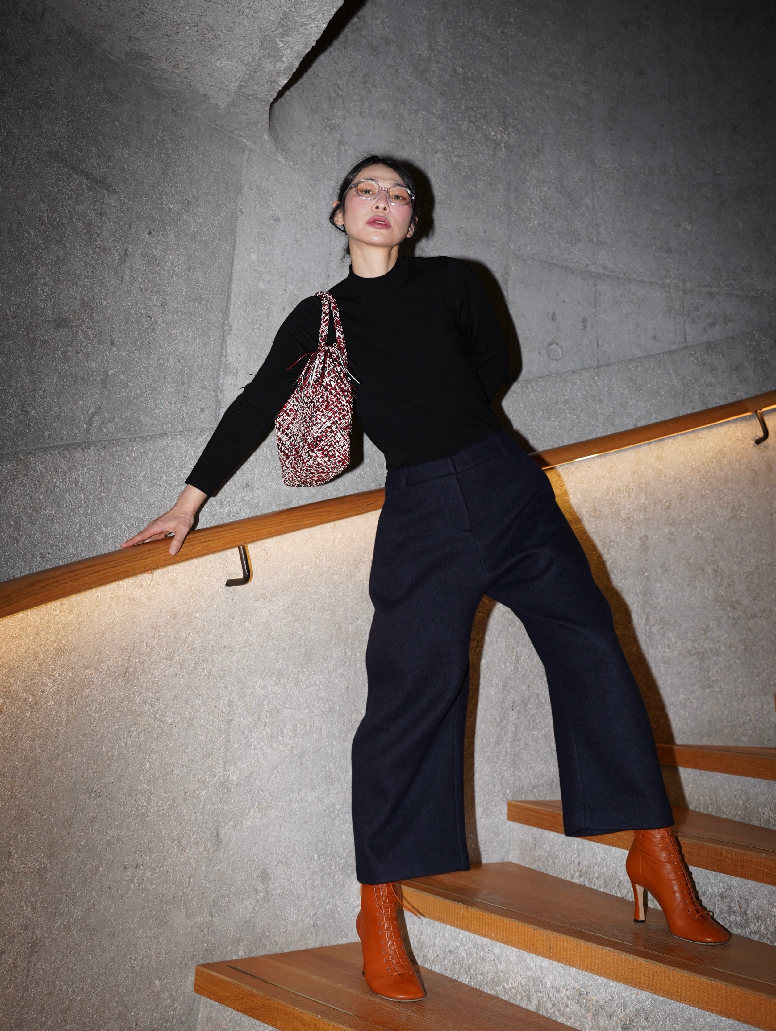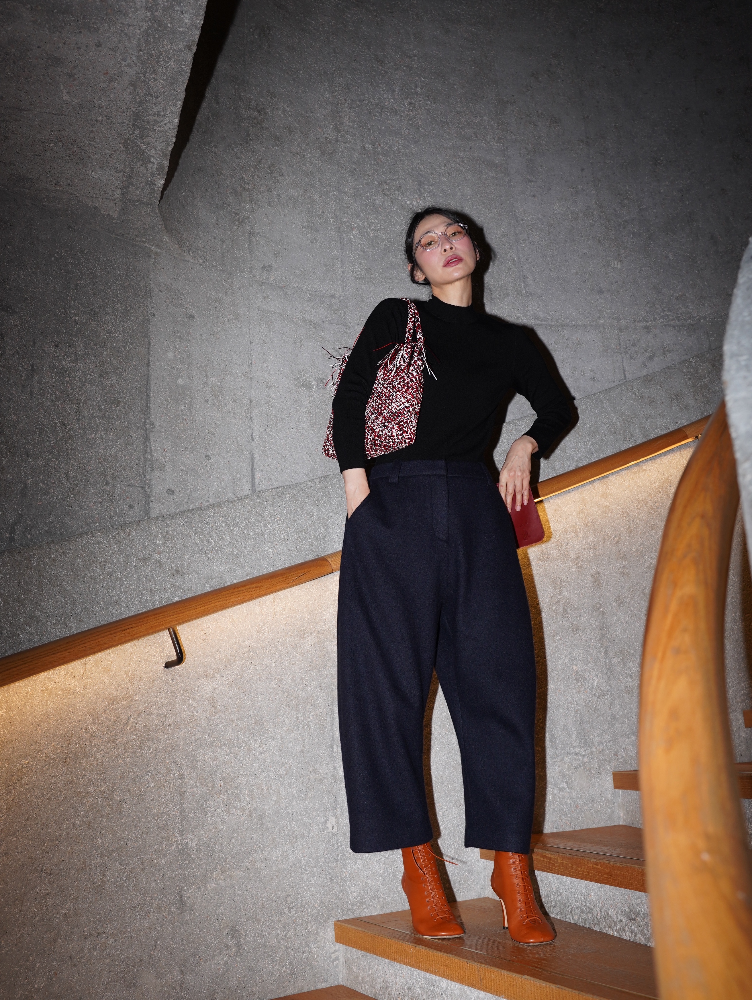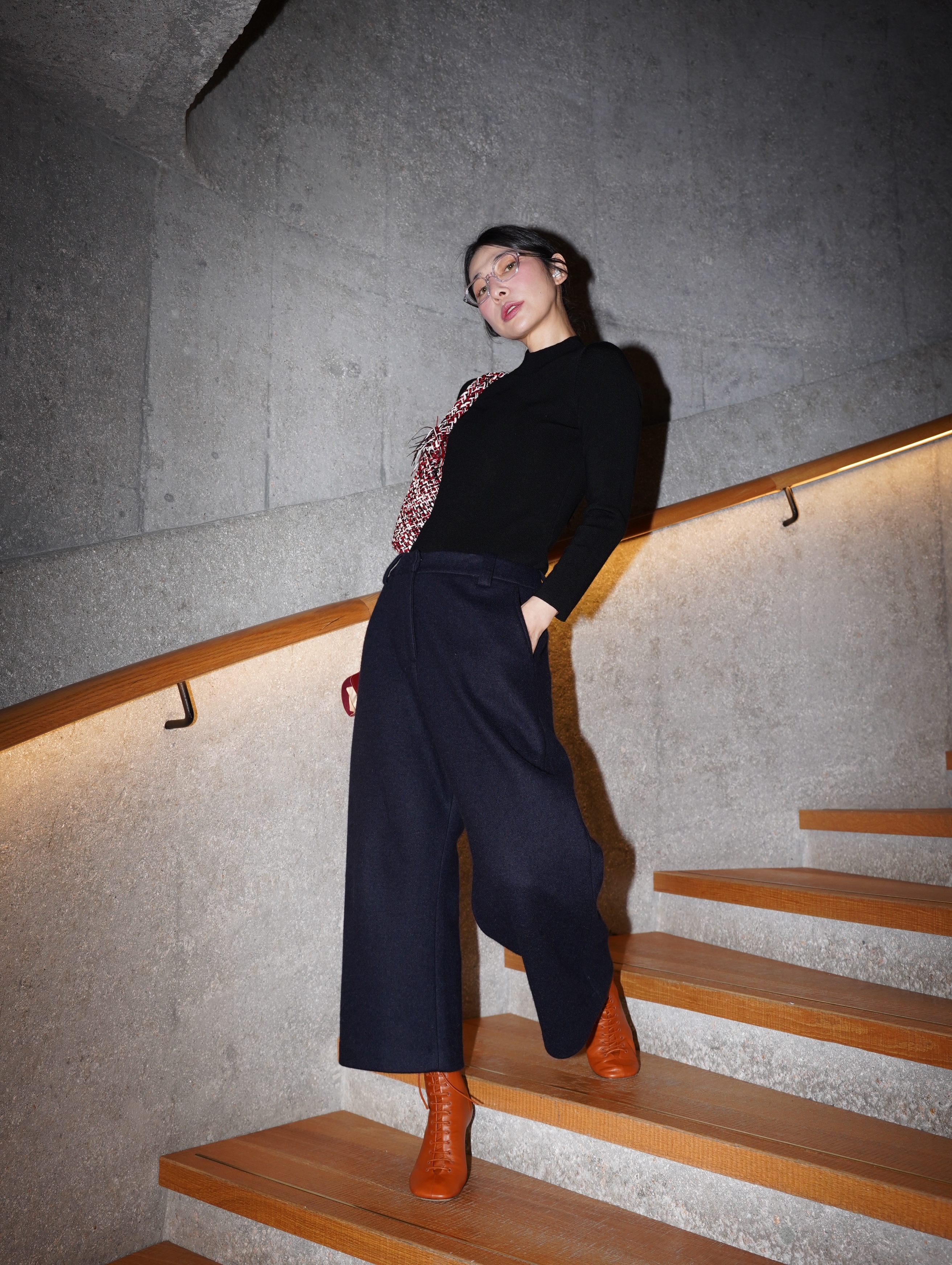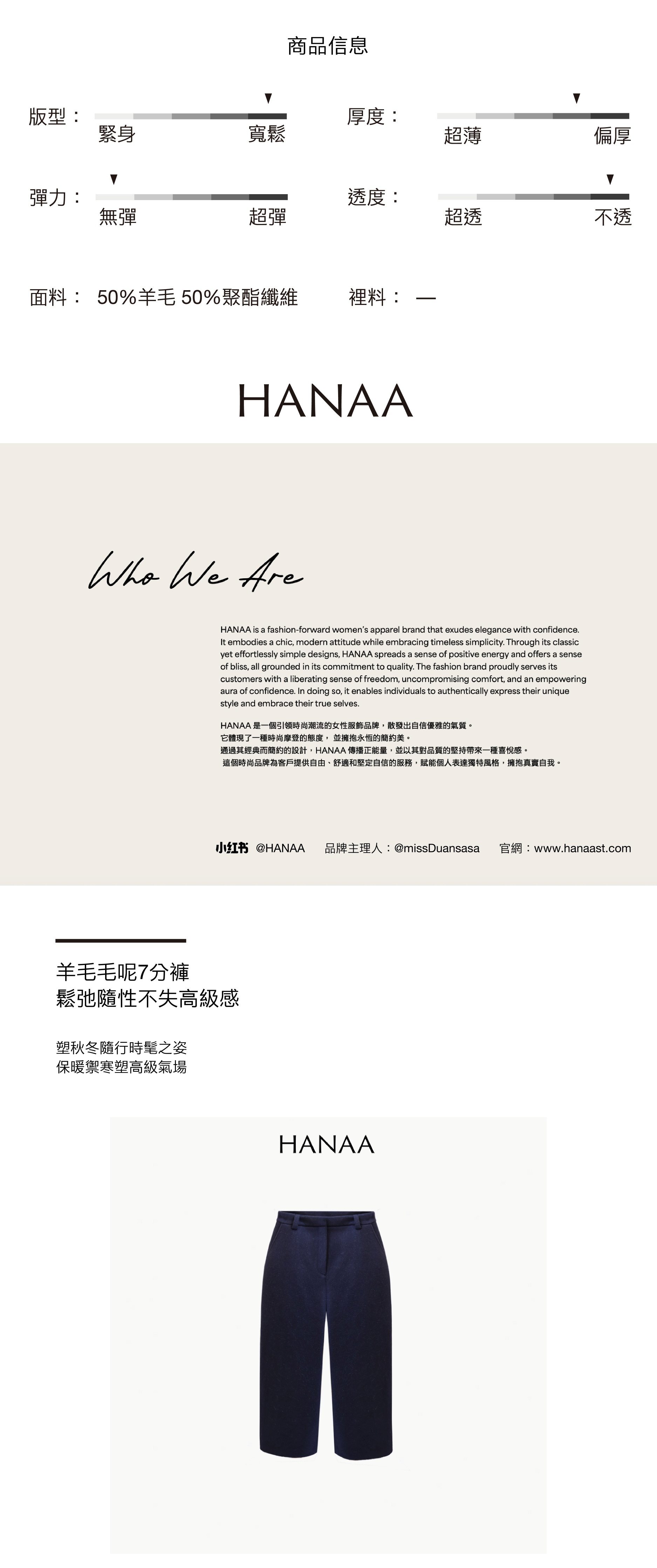 HANAA Dark Blue Wool Blend Cocoon Loose Wide-Leg Pants