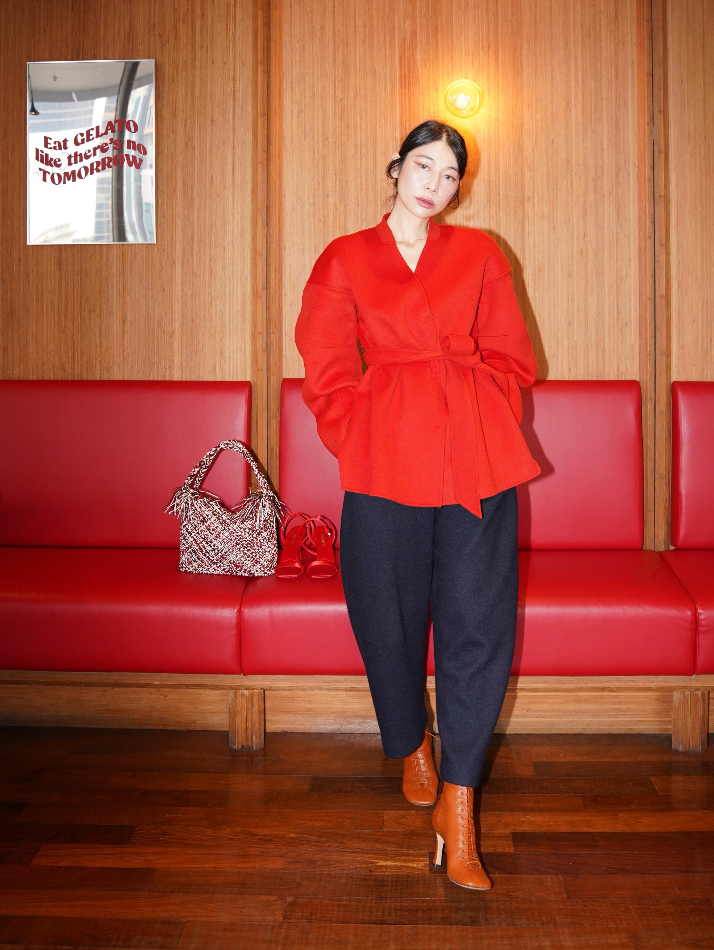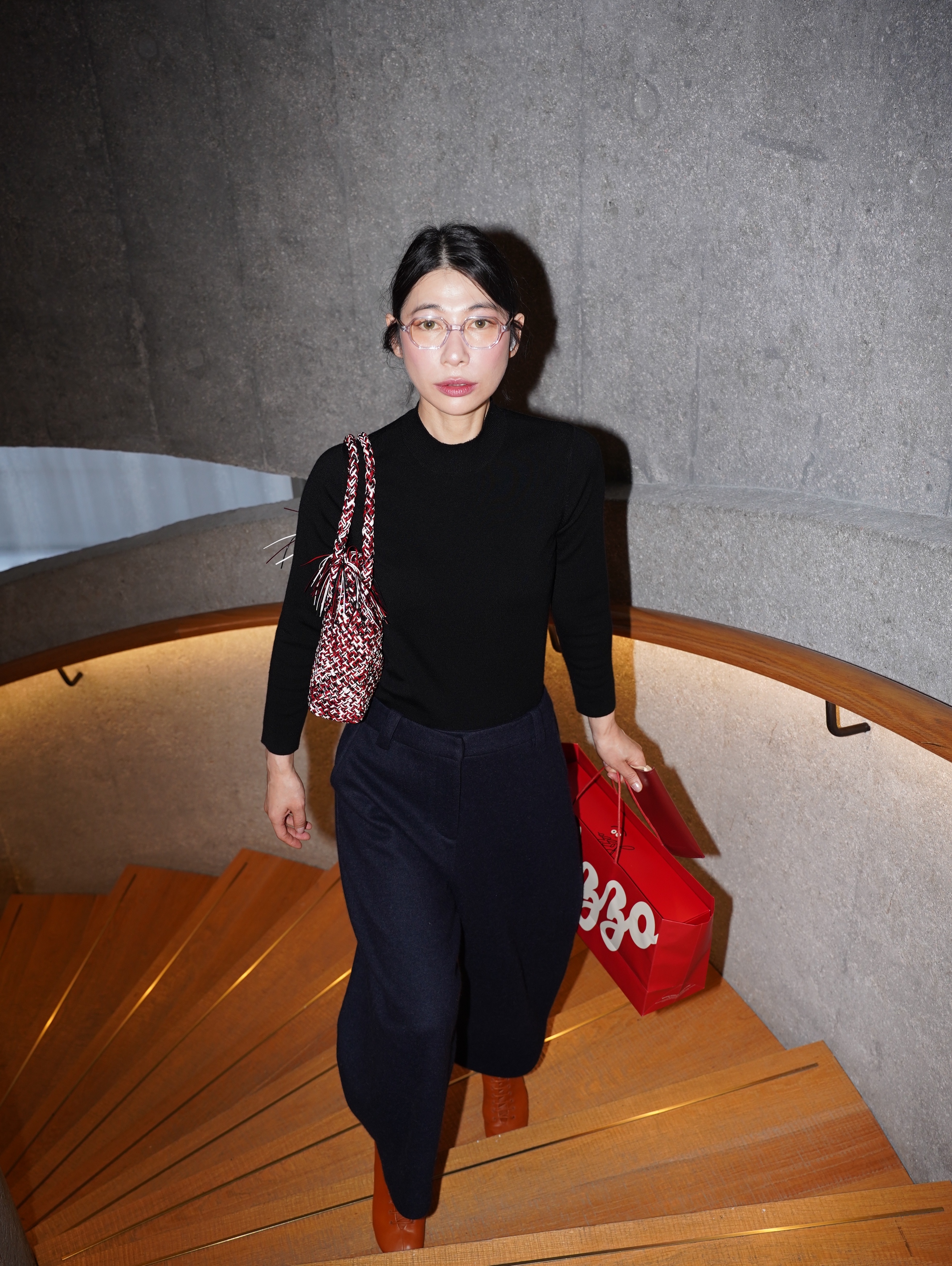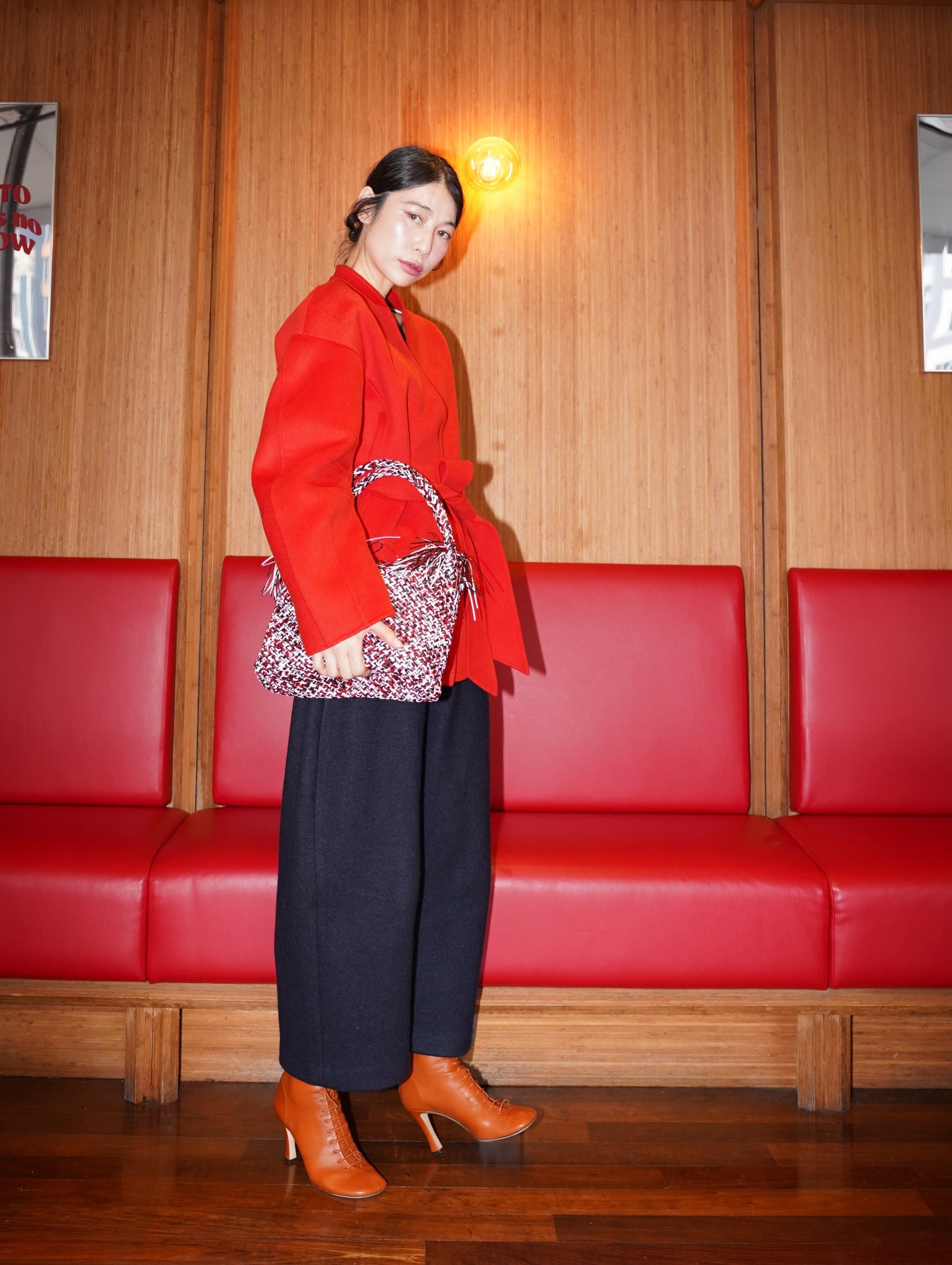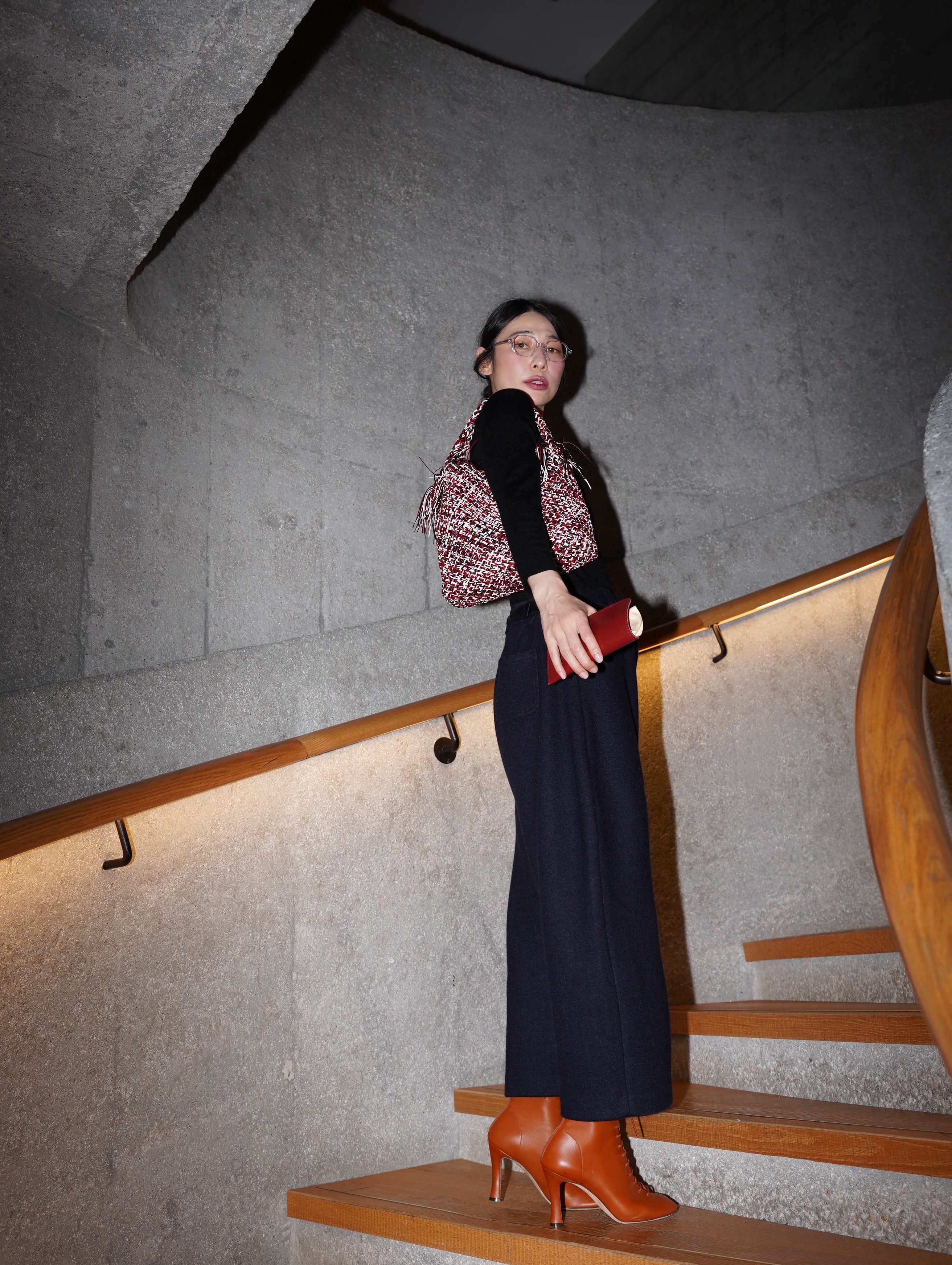 HANAA Dark Blue Wool Blend Cocoon Loose Wide-Leg Pants