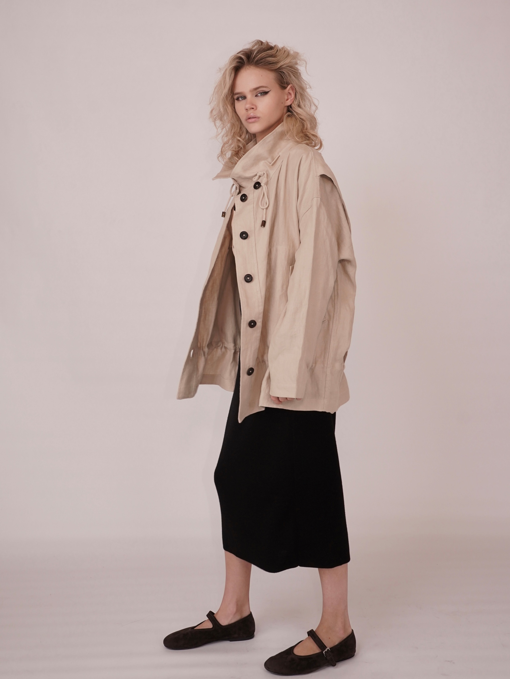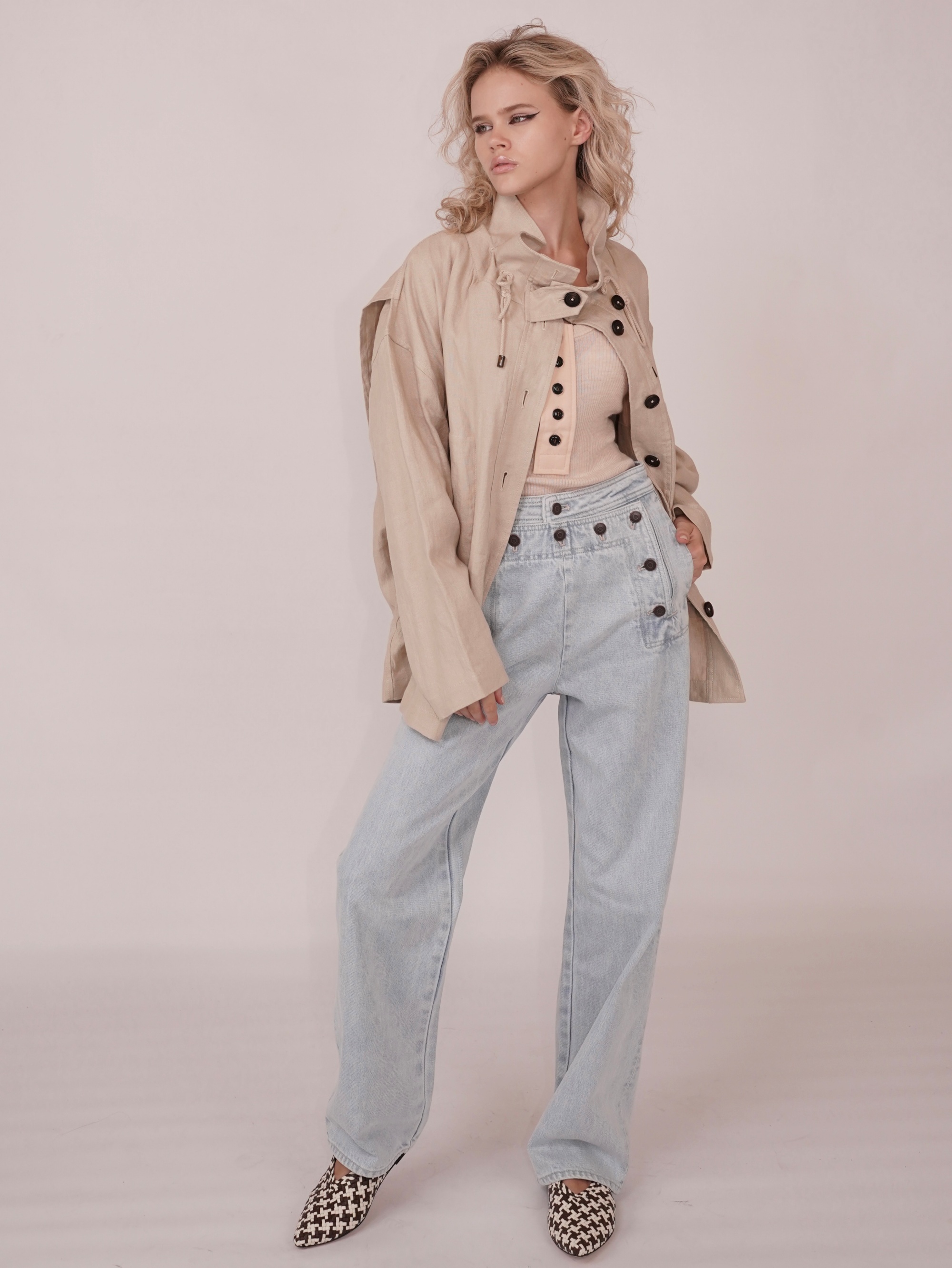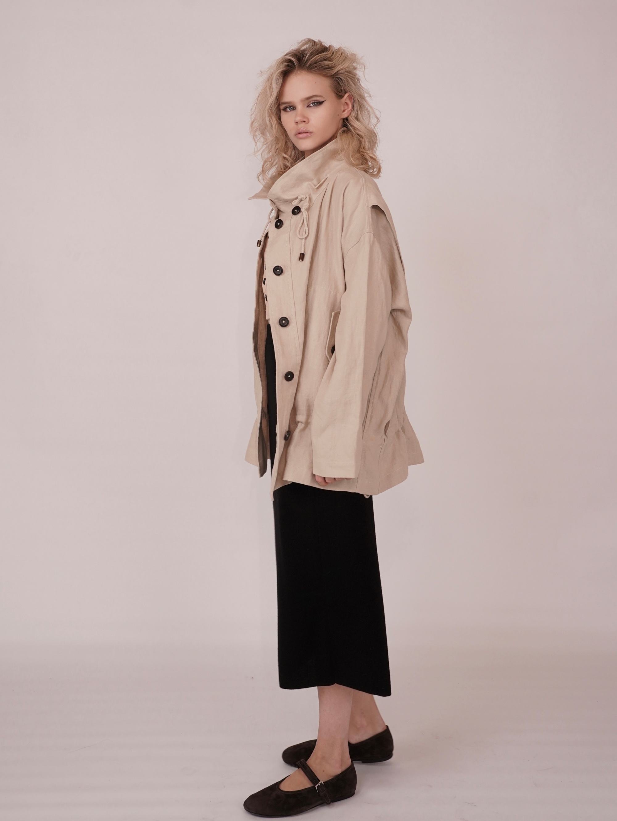 HANAA新款進口亞麻休閒立領抽繩夾克外套