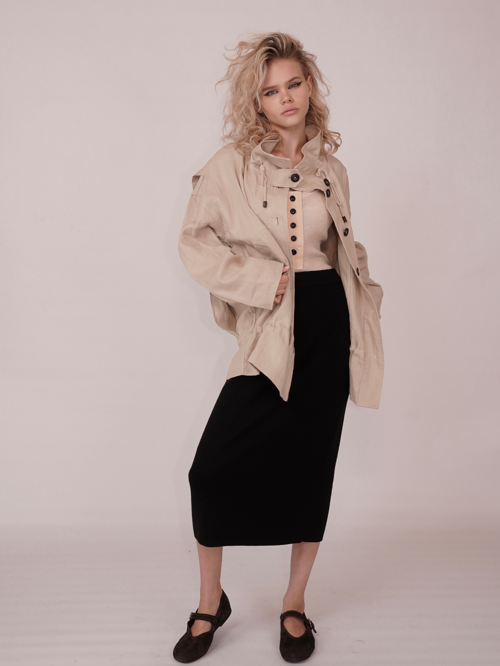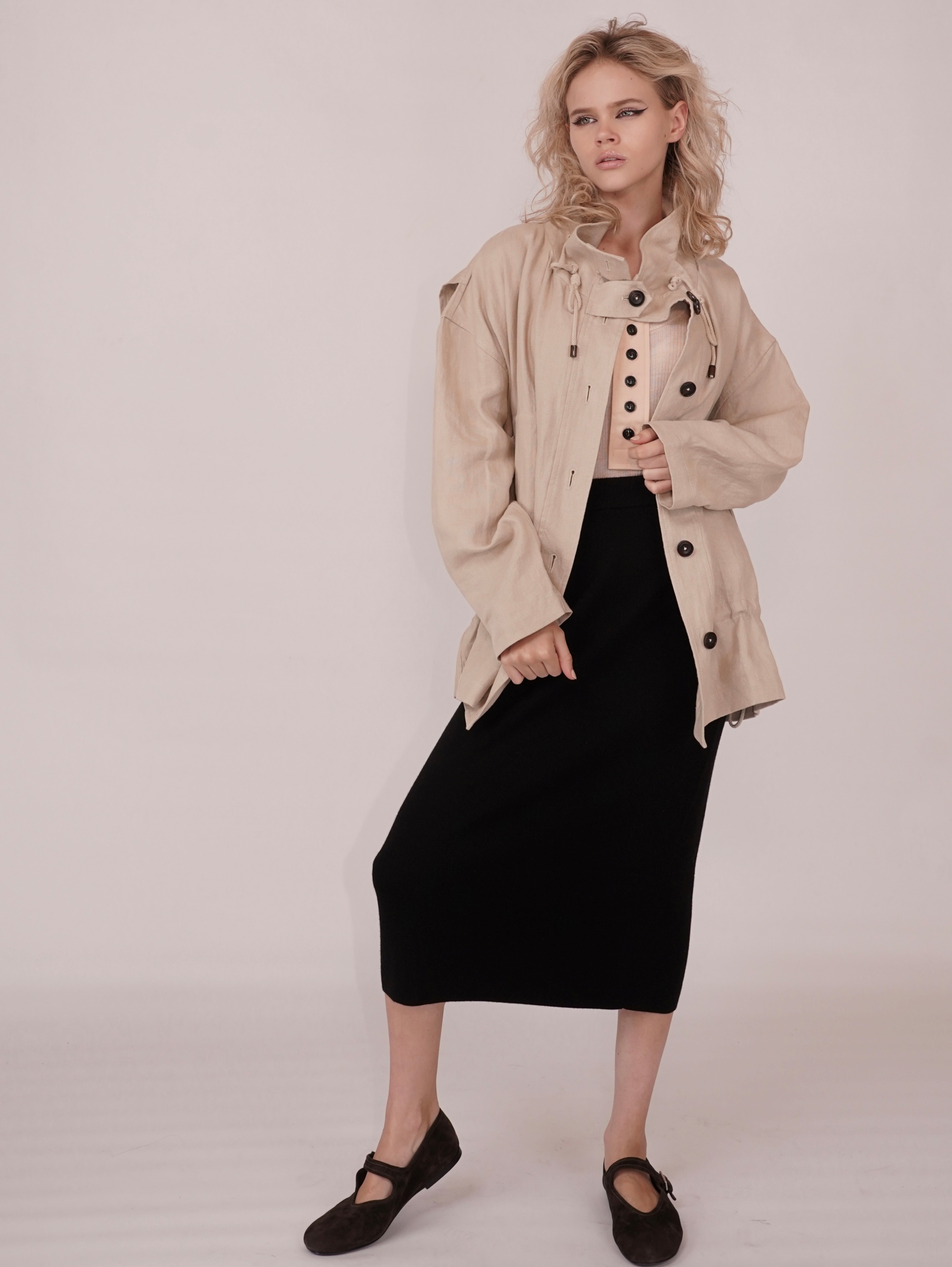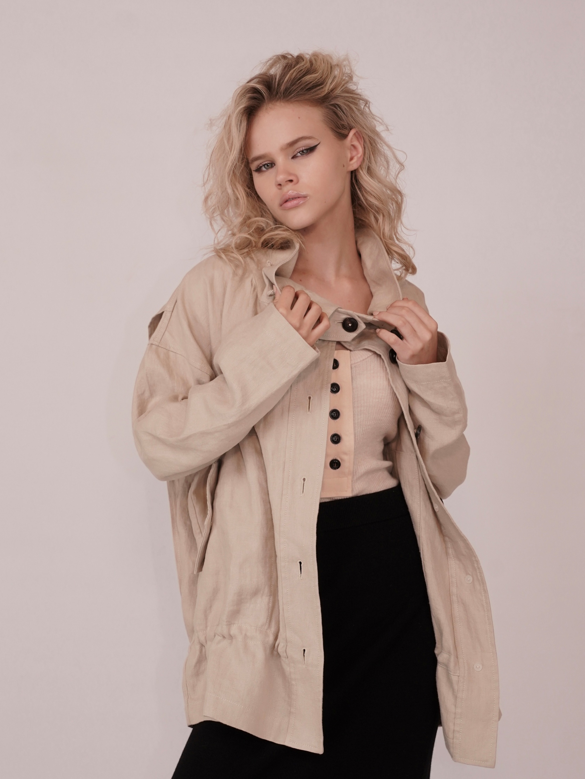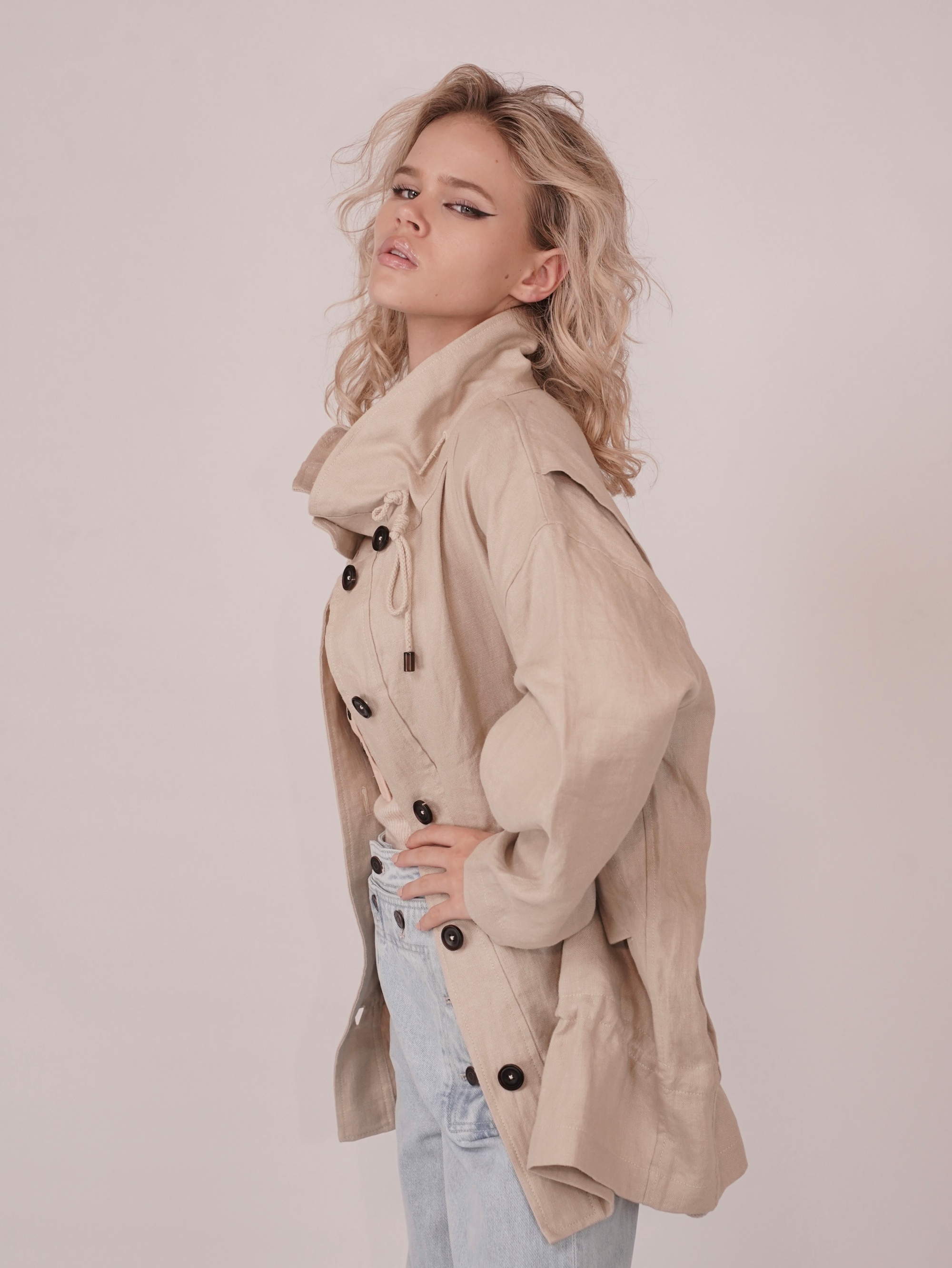 HANAA新款進口亞麻休閒立領抽繩夾克外套