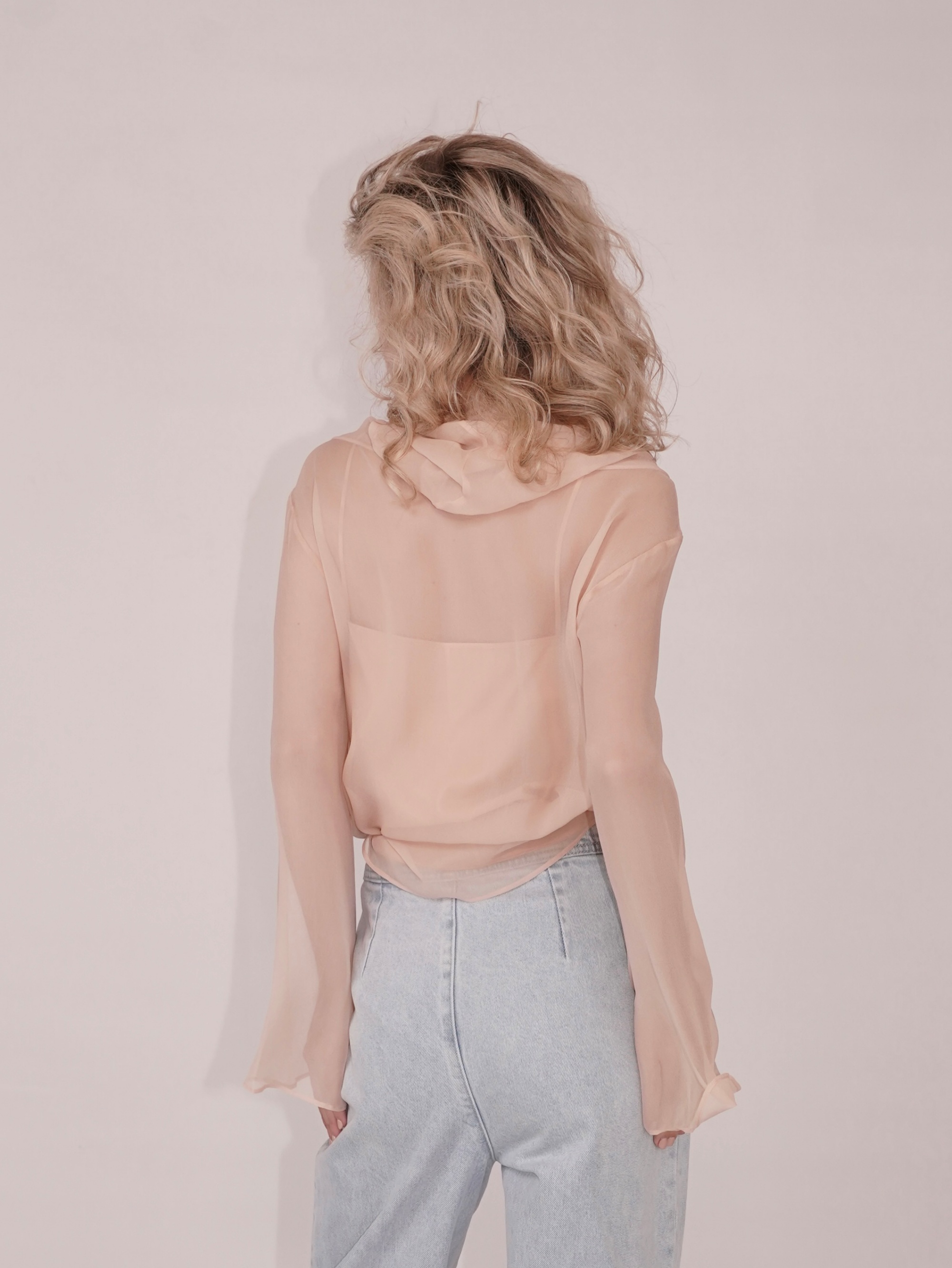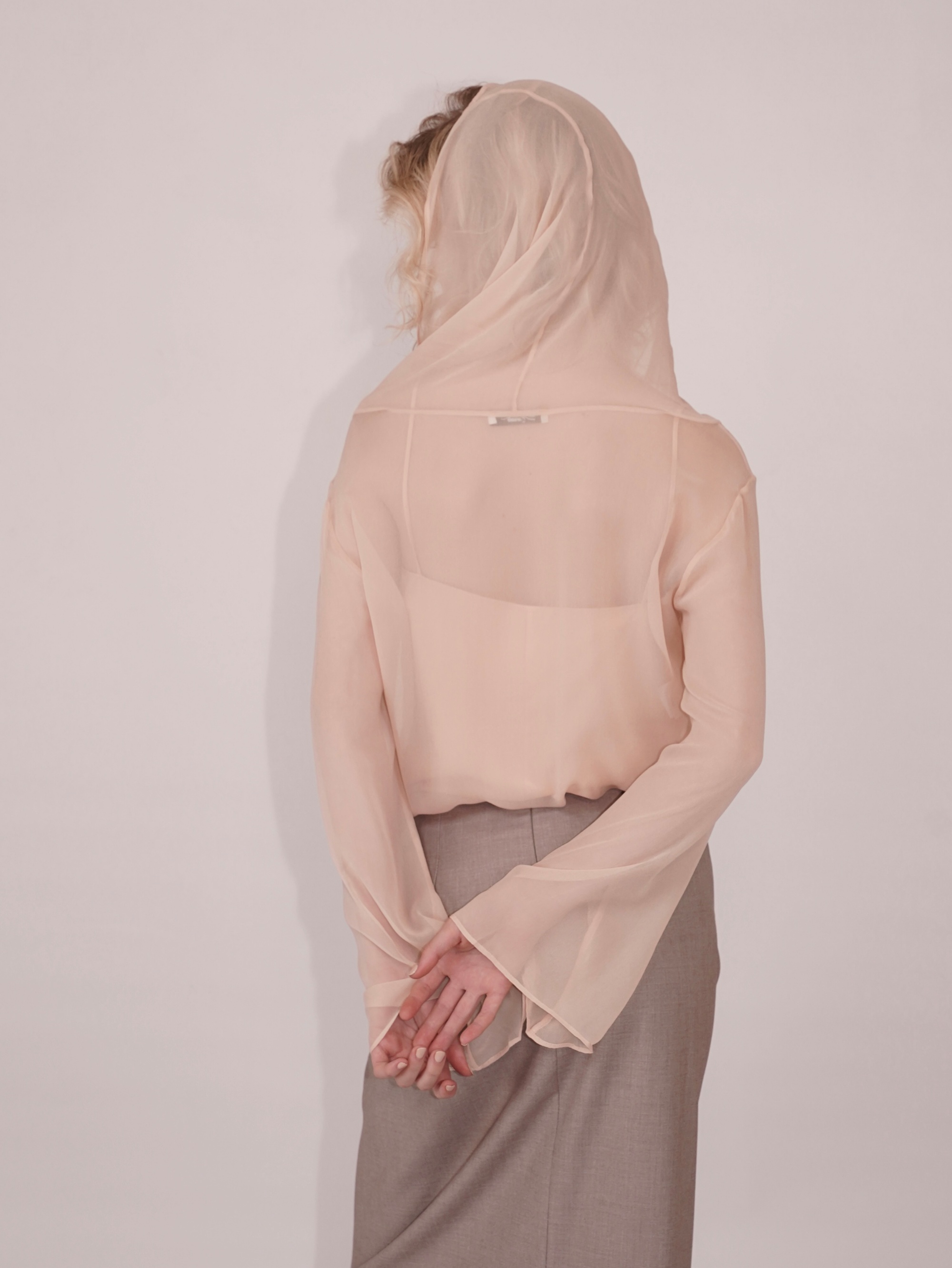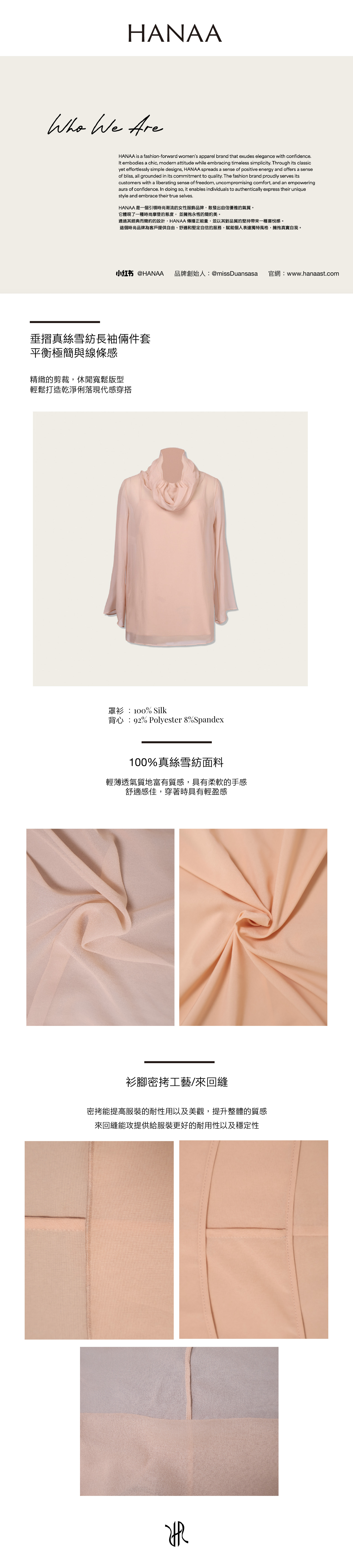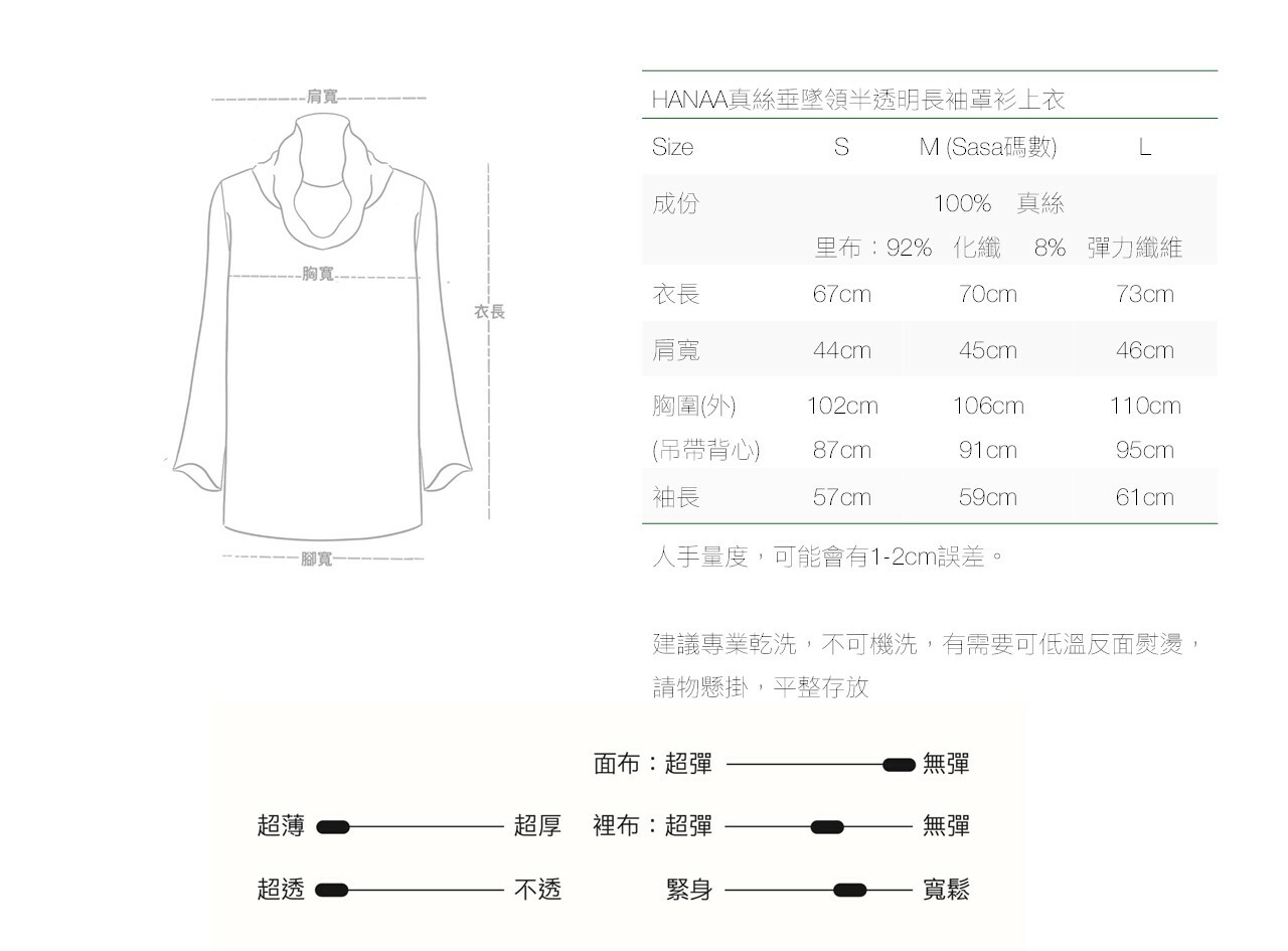 HANAA 新款真絲垂墜領半透明長袖罩衫上衣