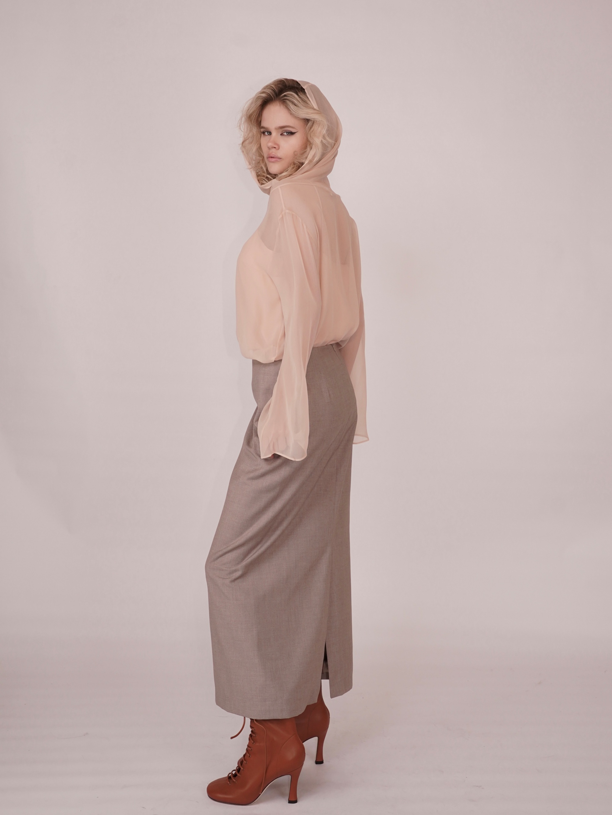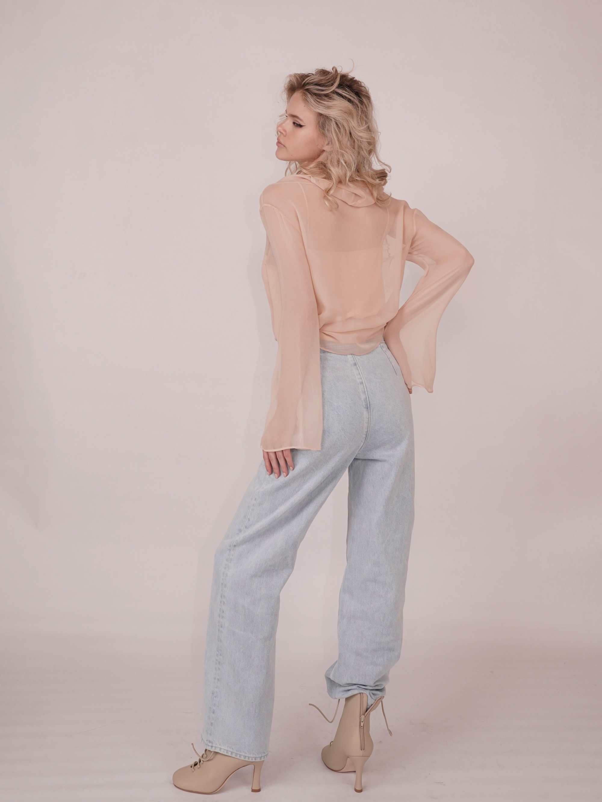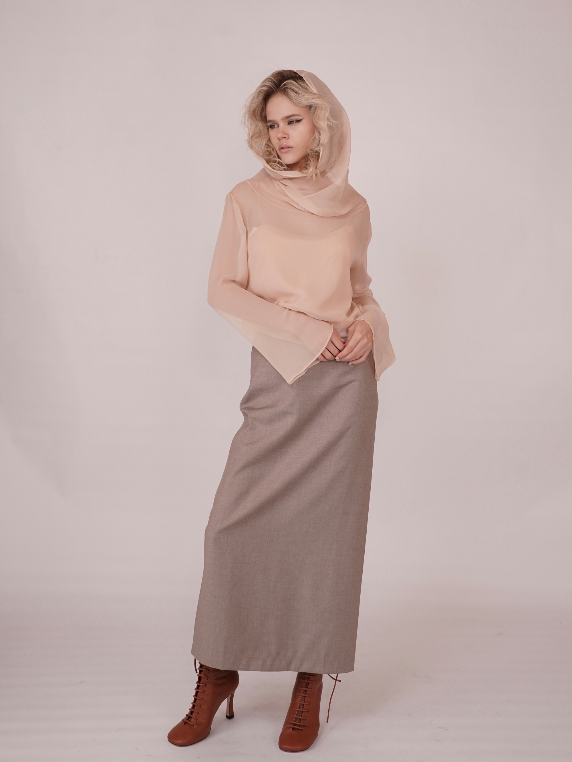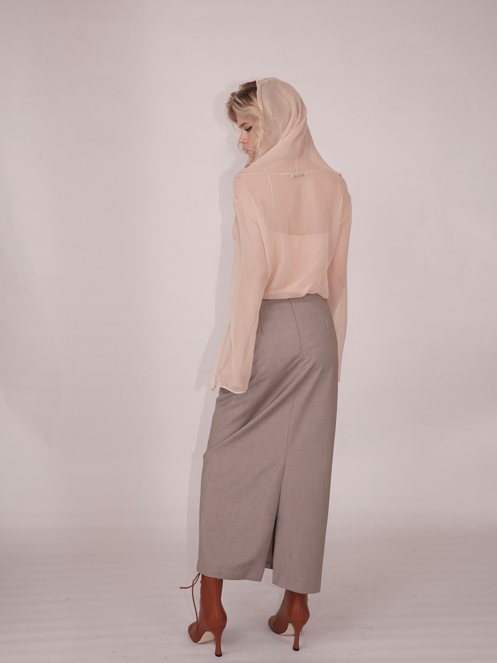 HANAA 新款真絲垂墜領半透明長袖罩衫上衣