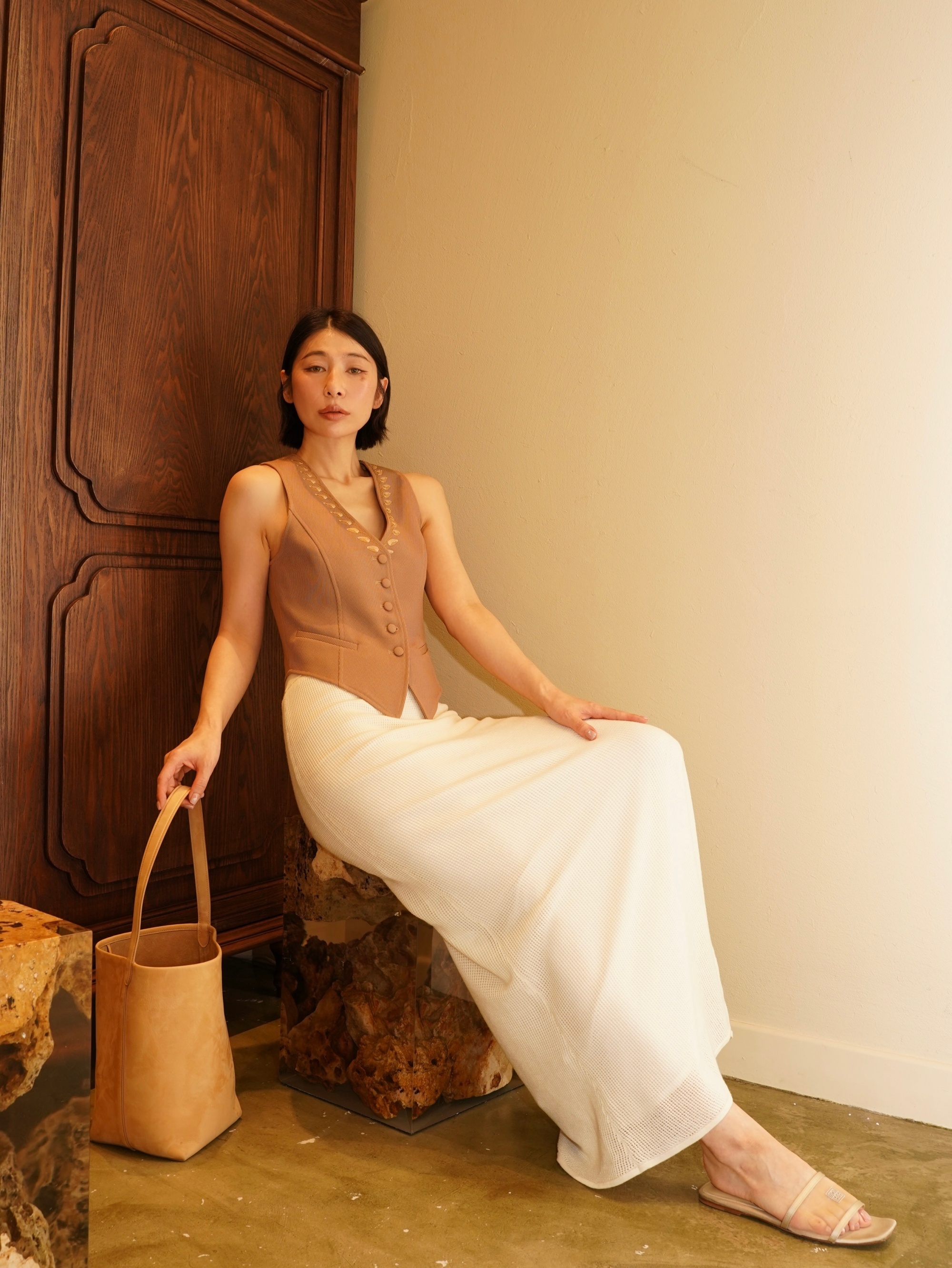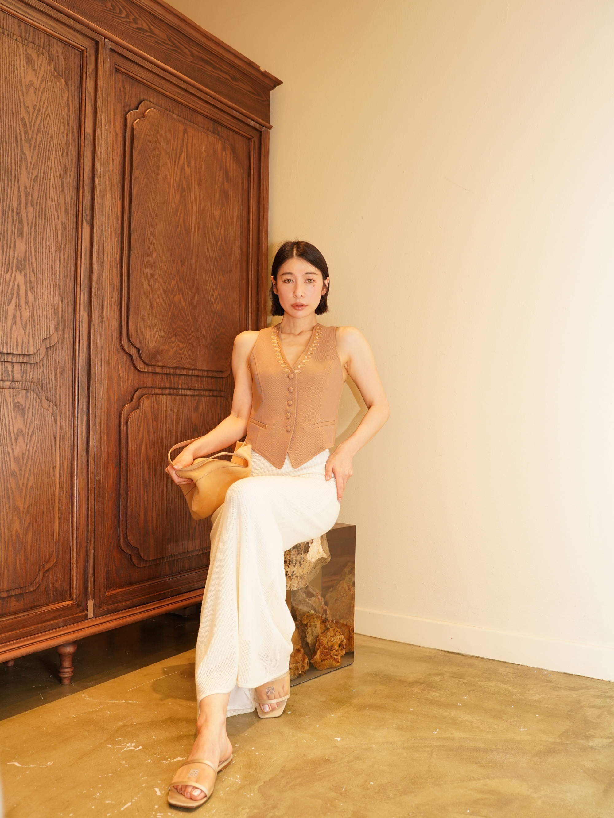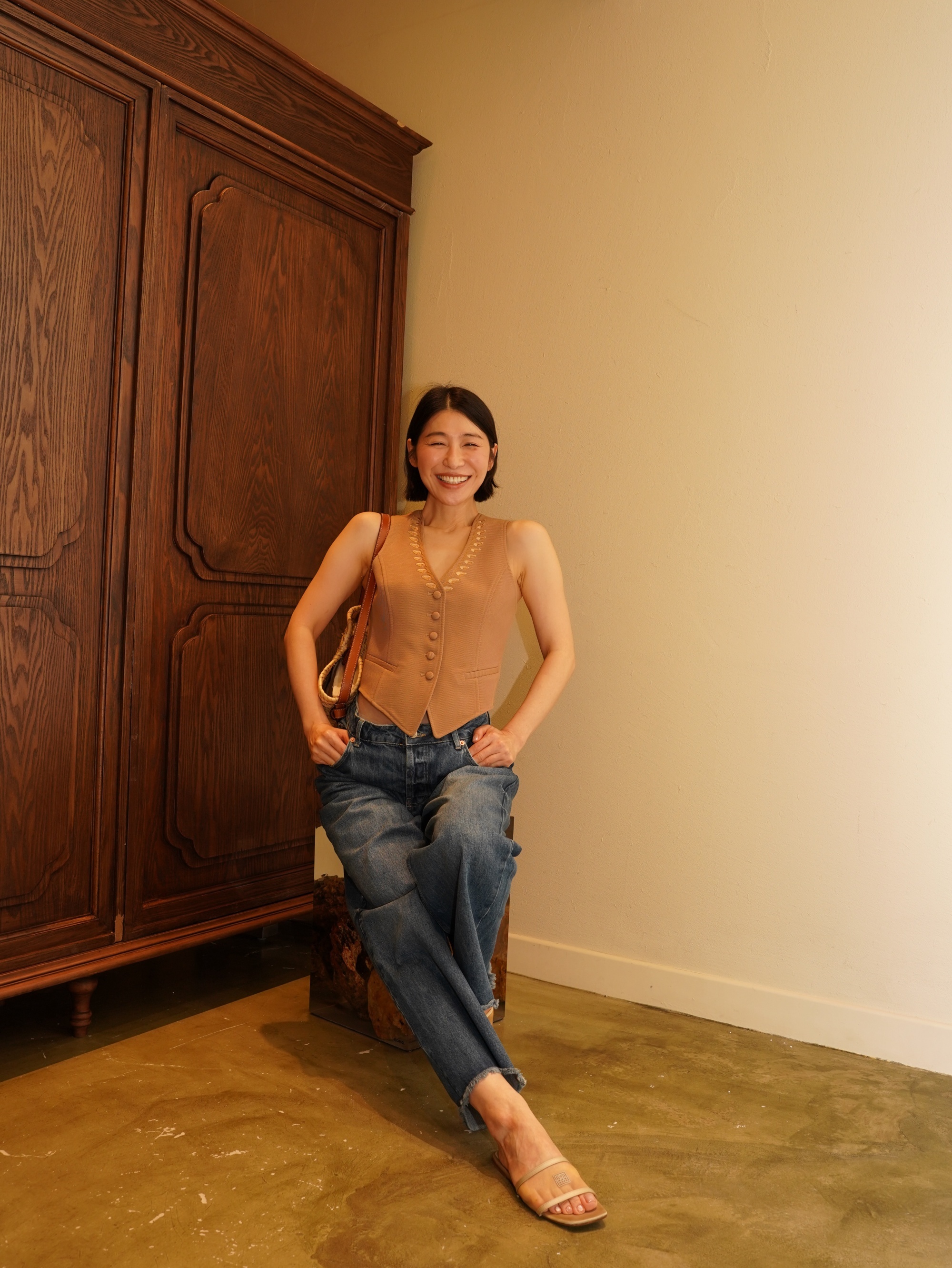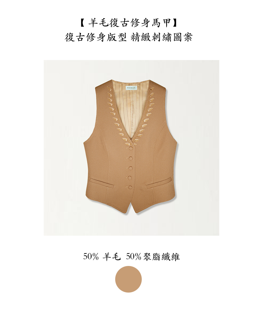 HANAA新款復古修身無袖卡其色馬甲疊穿內搭馬夾百搭背心上衣