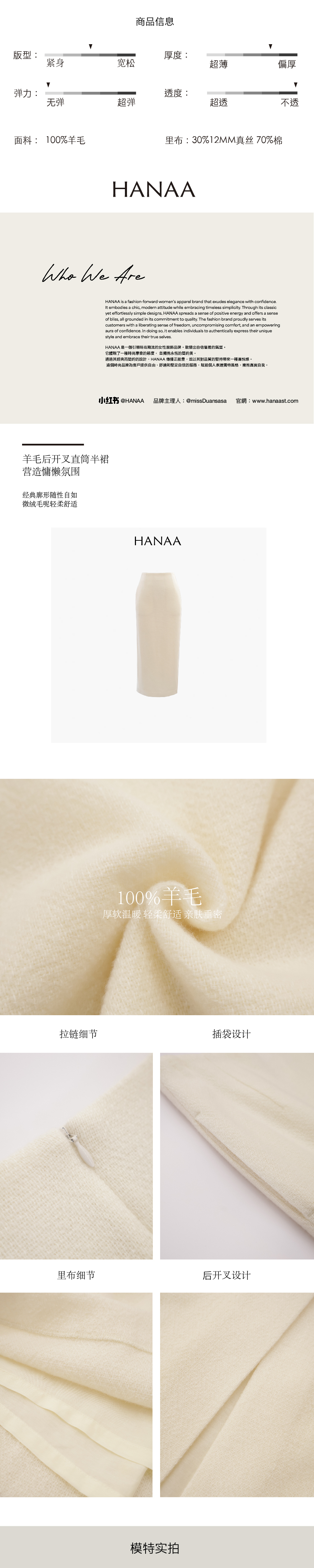 HANAA Wool Back Slit Straight Skirt