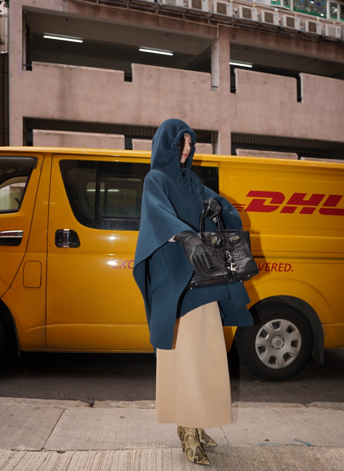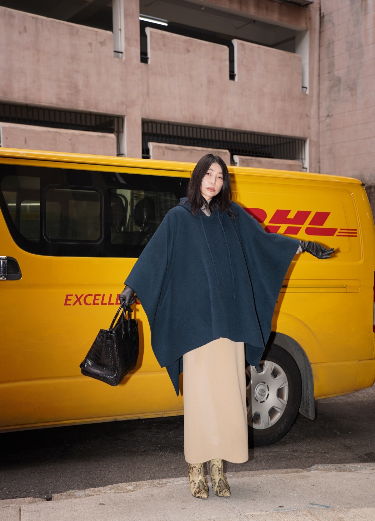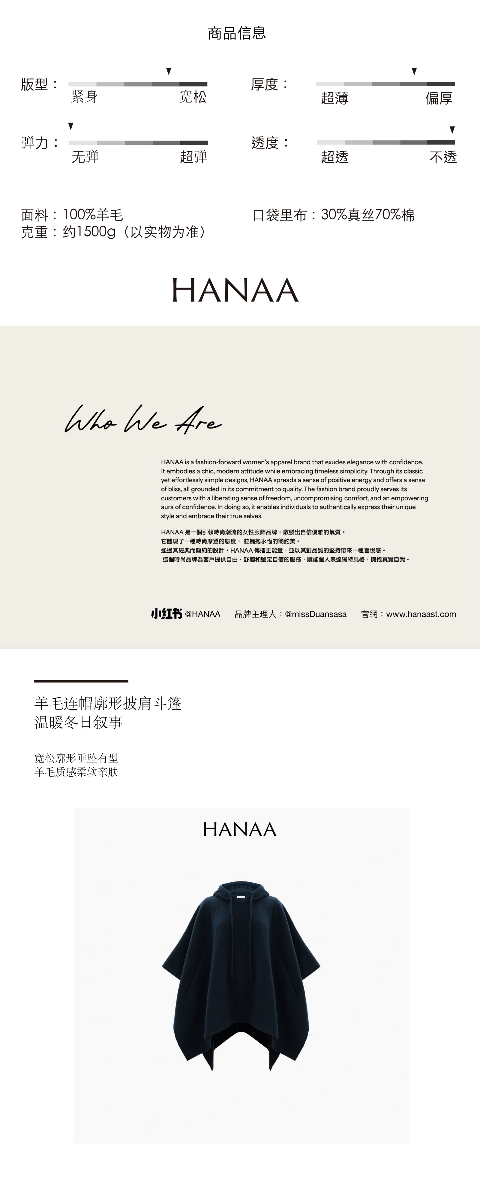HANAA Wool Hooded Oversized Cape