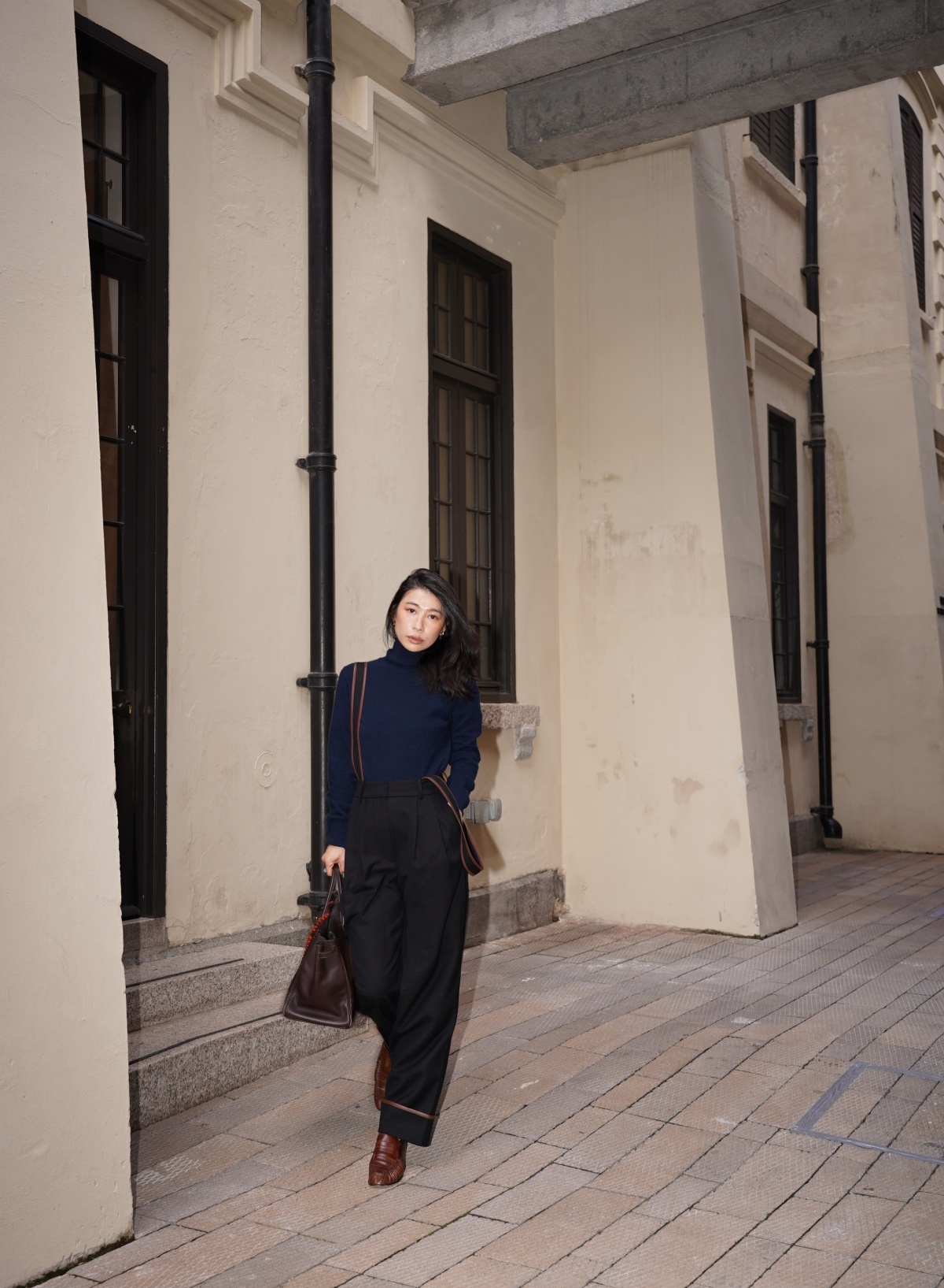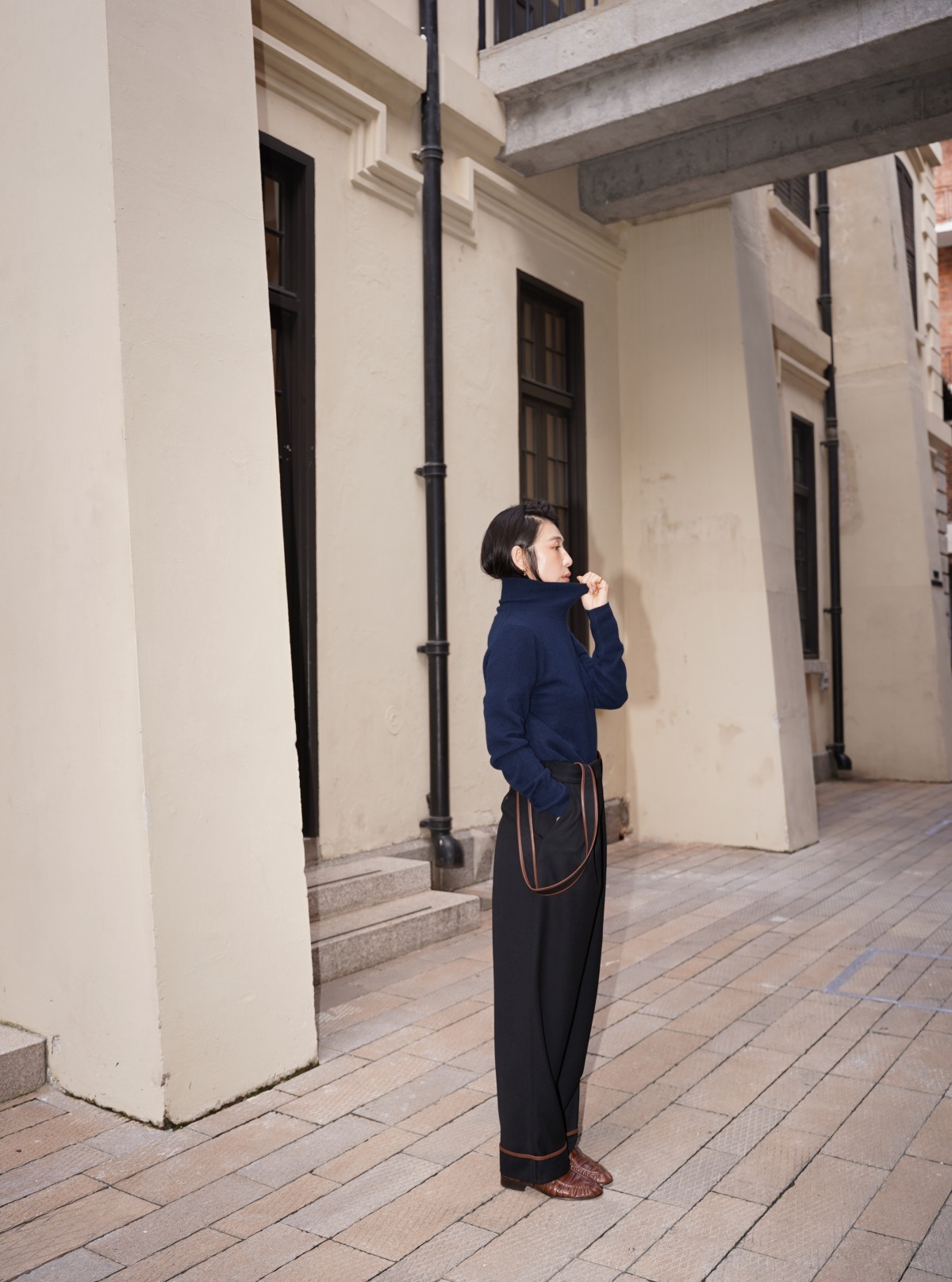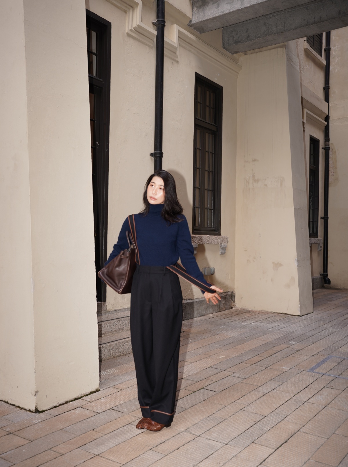 HANAA 新款羊毛翻折寬鬆直筒可調節休閒背帶褲