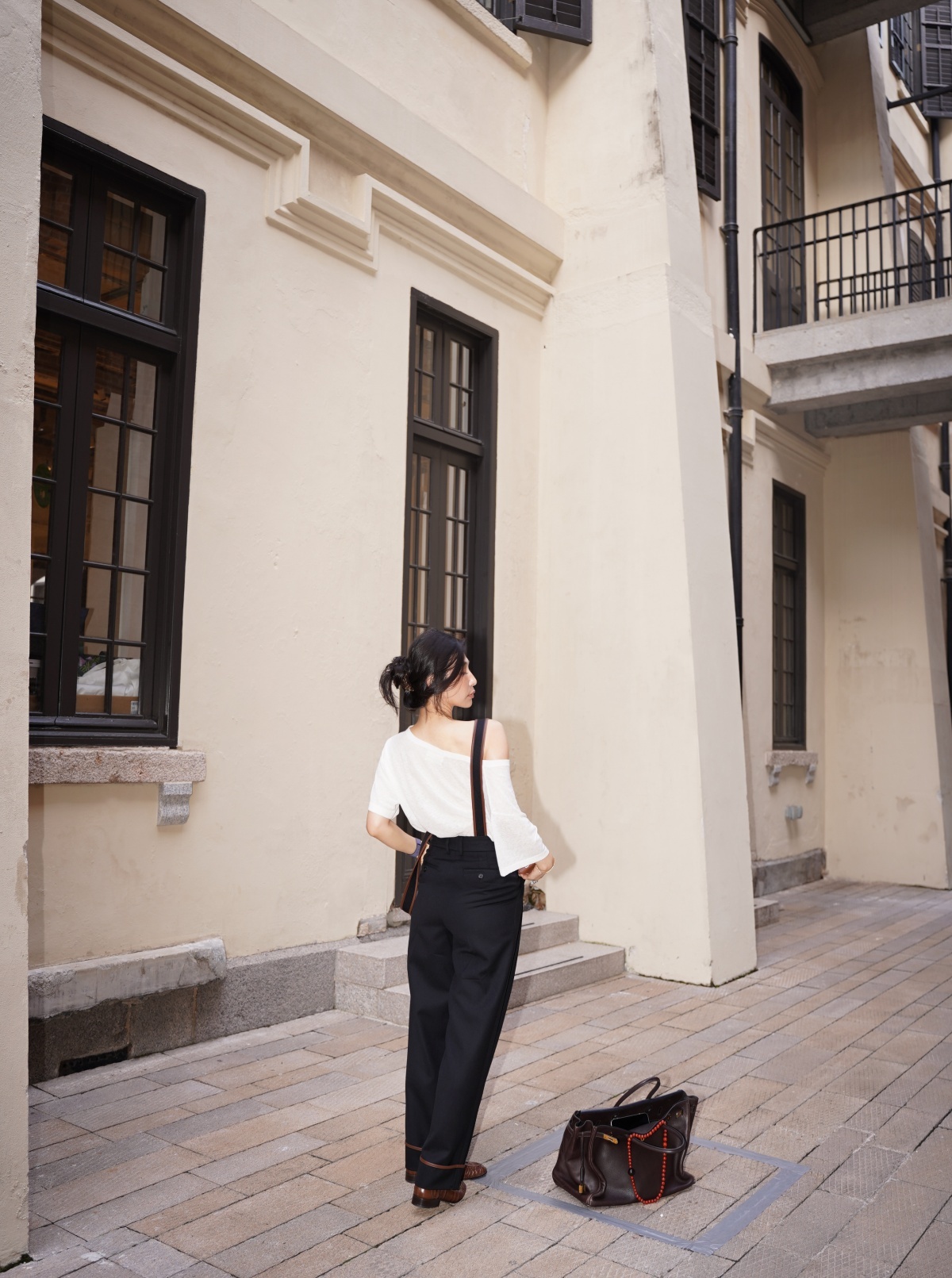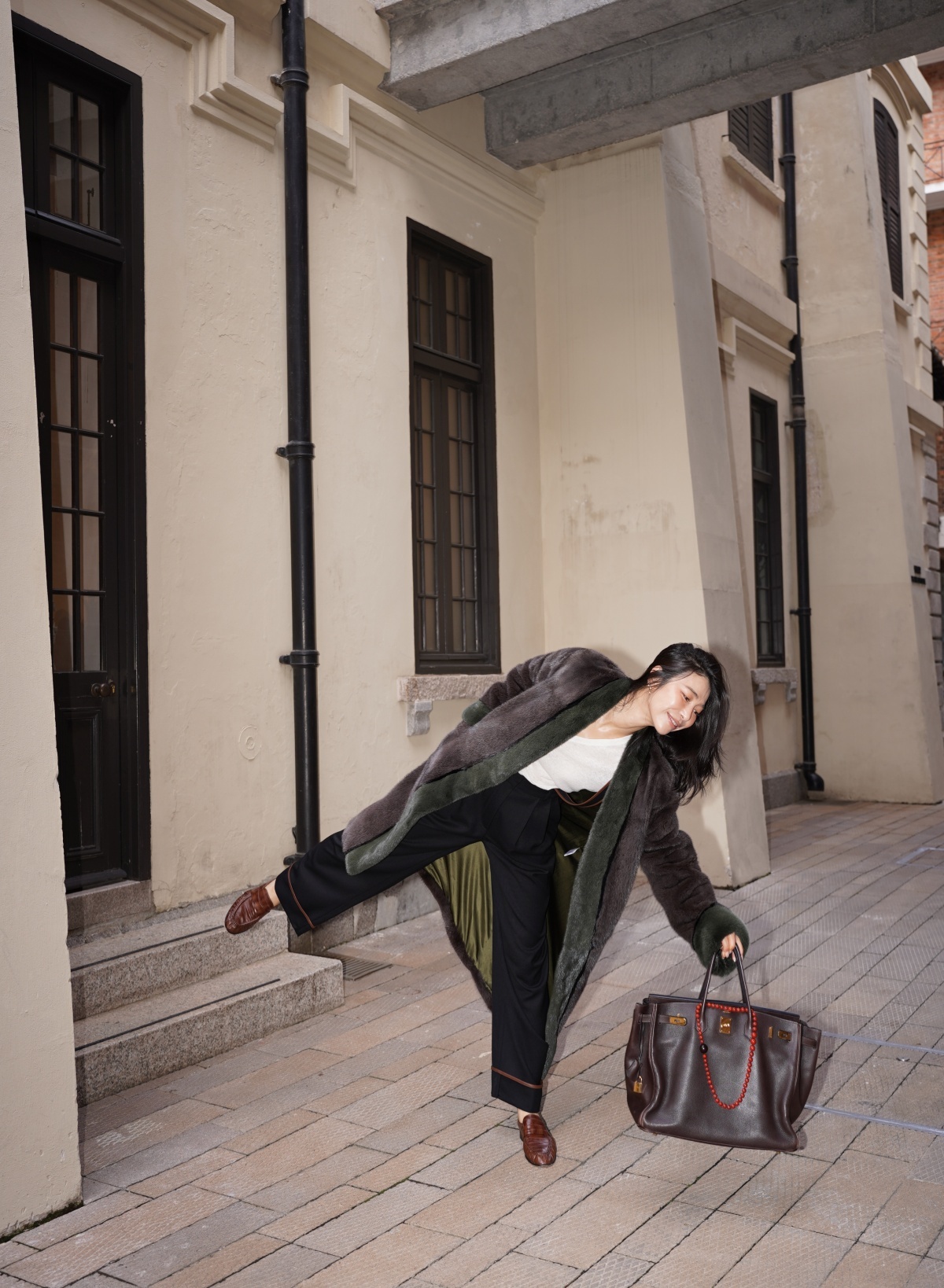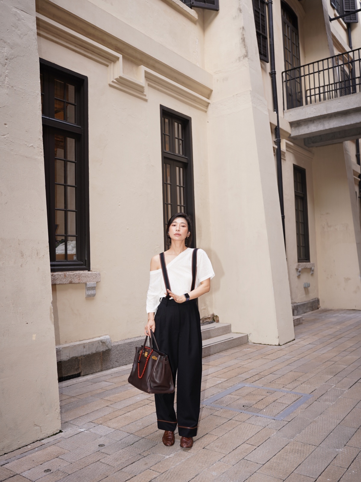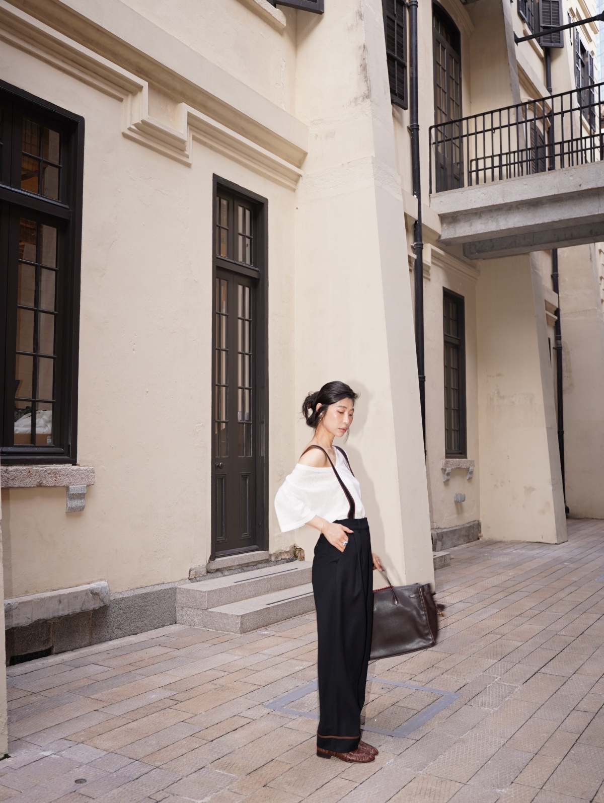 HANAA 新款羊毛翻折寬鬆直筒可調節休閒背帶褲